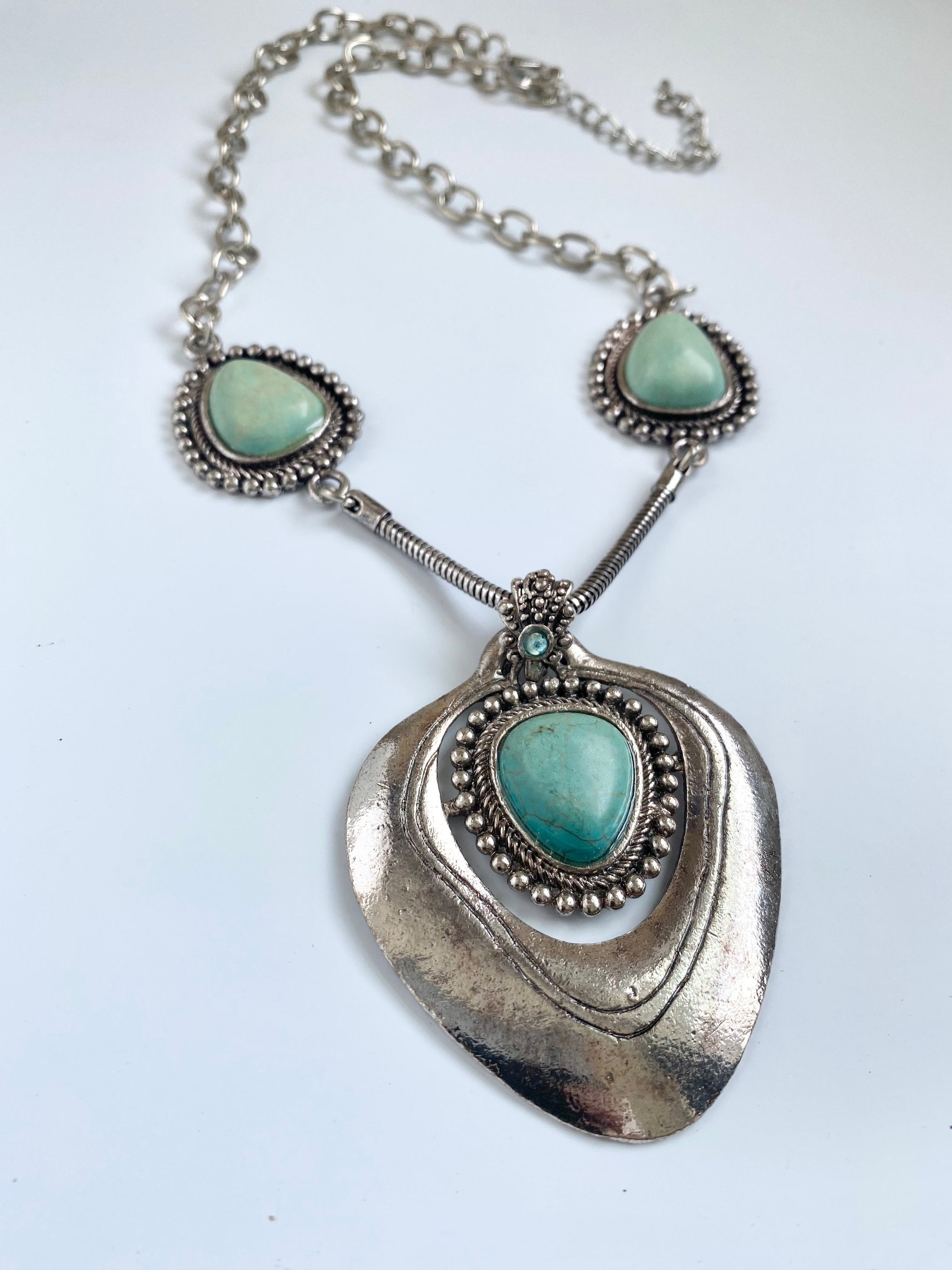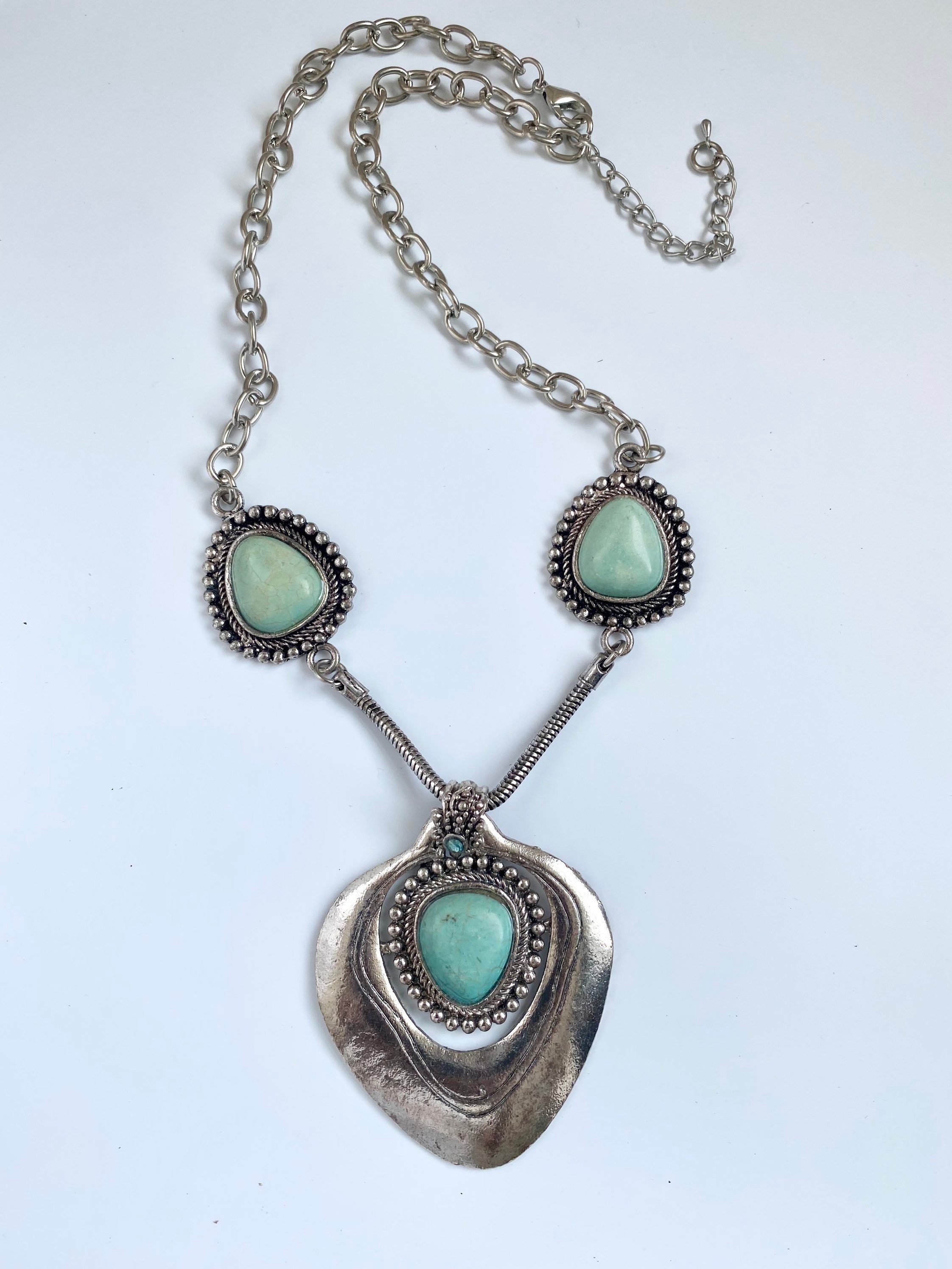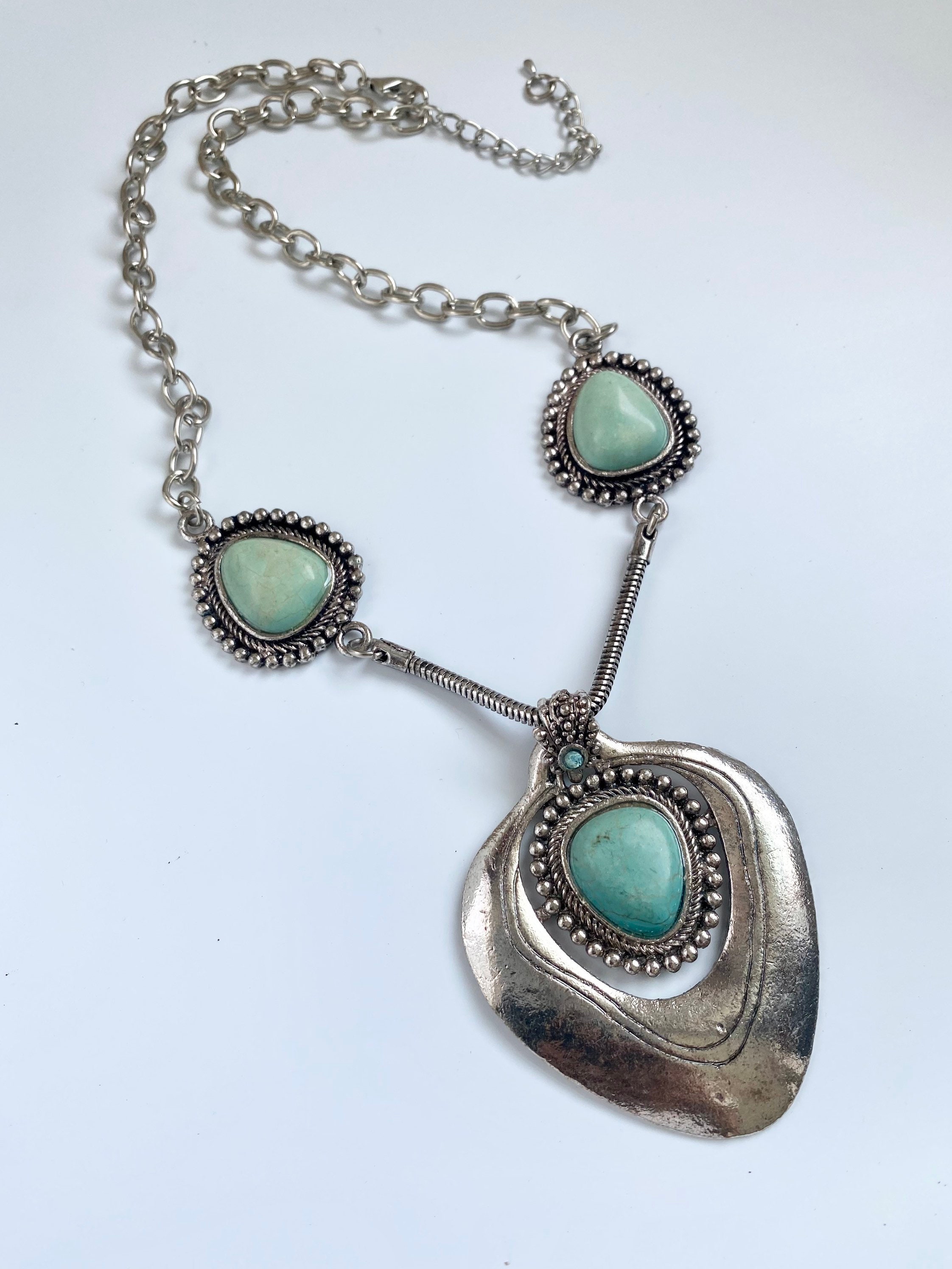 Turquoise Dyed Magnesite Pendant Necklace, southwestern jewelry, Long Stone Necklace