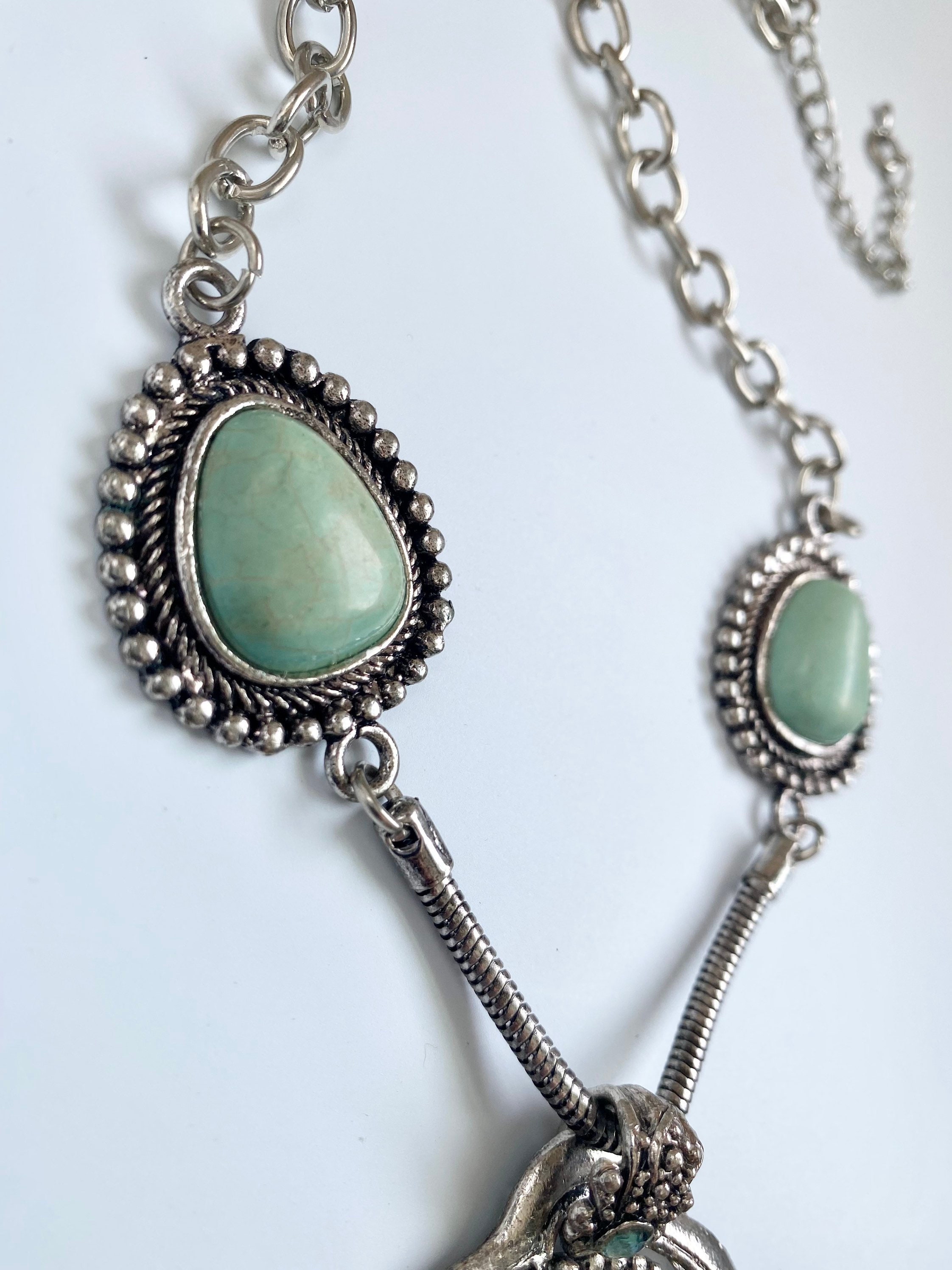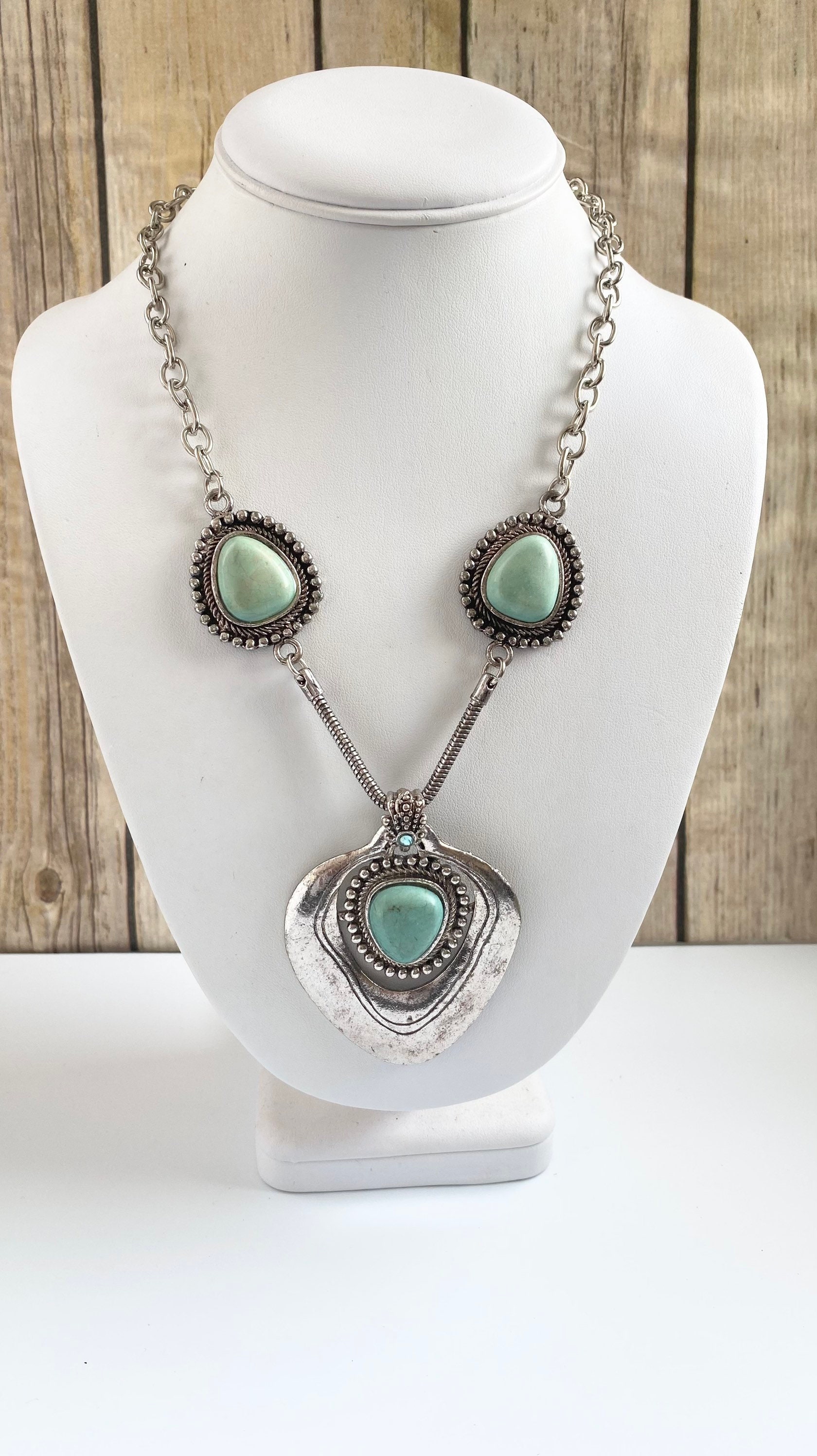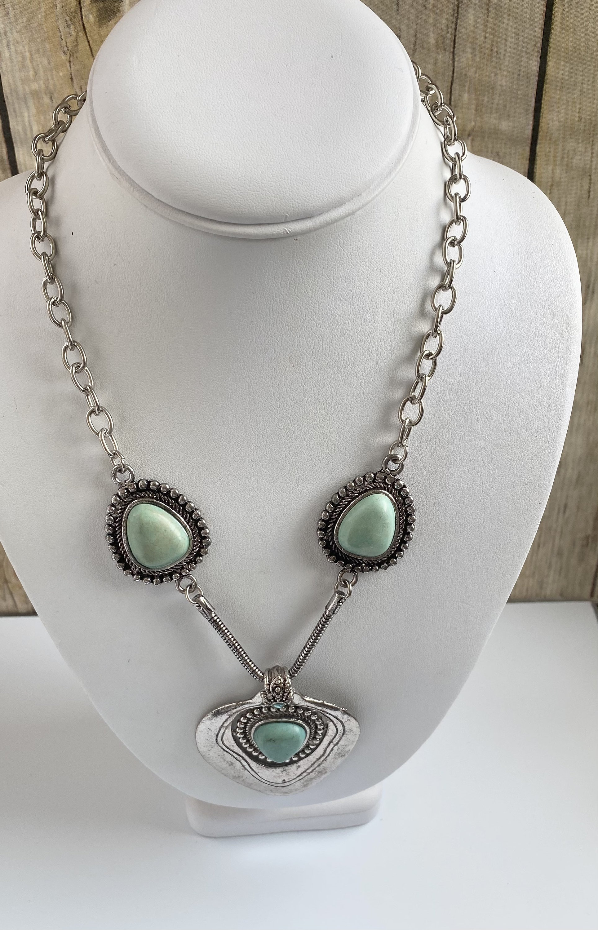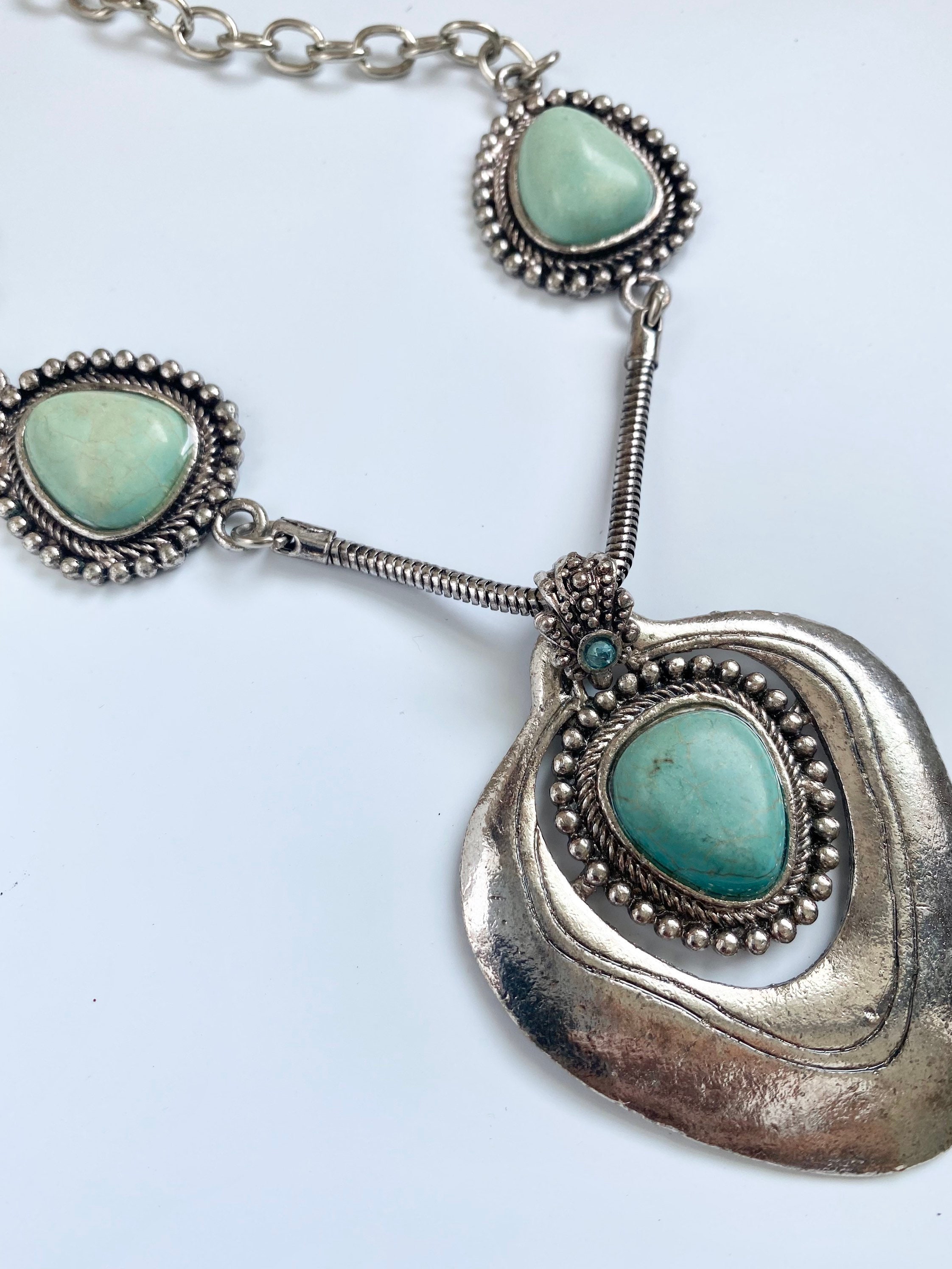 Turquoise Dyed Magnesite Pendant Necklace, southwestern jewelry, Long Stone Necklace