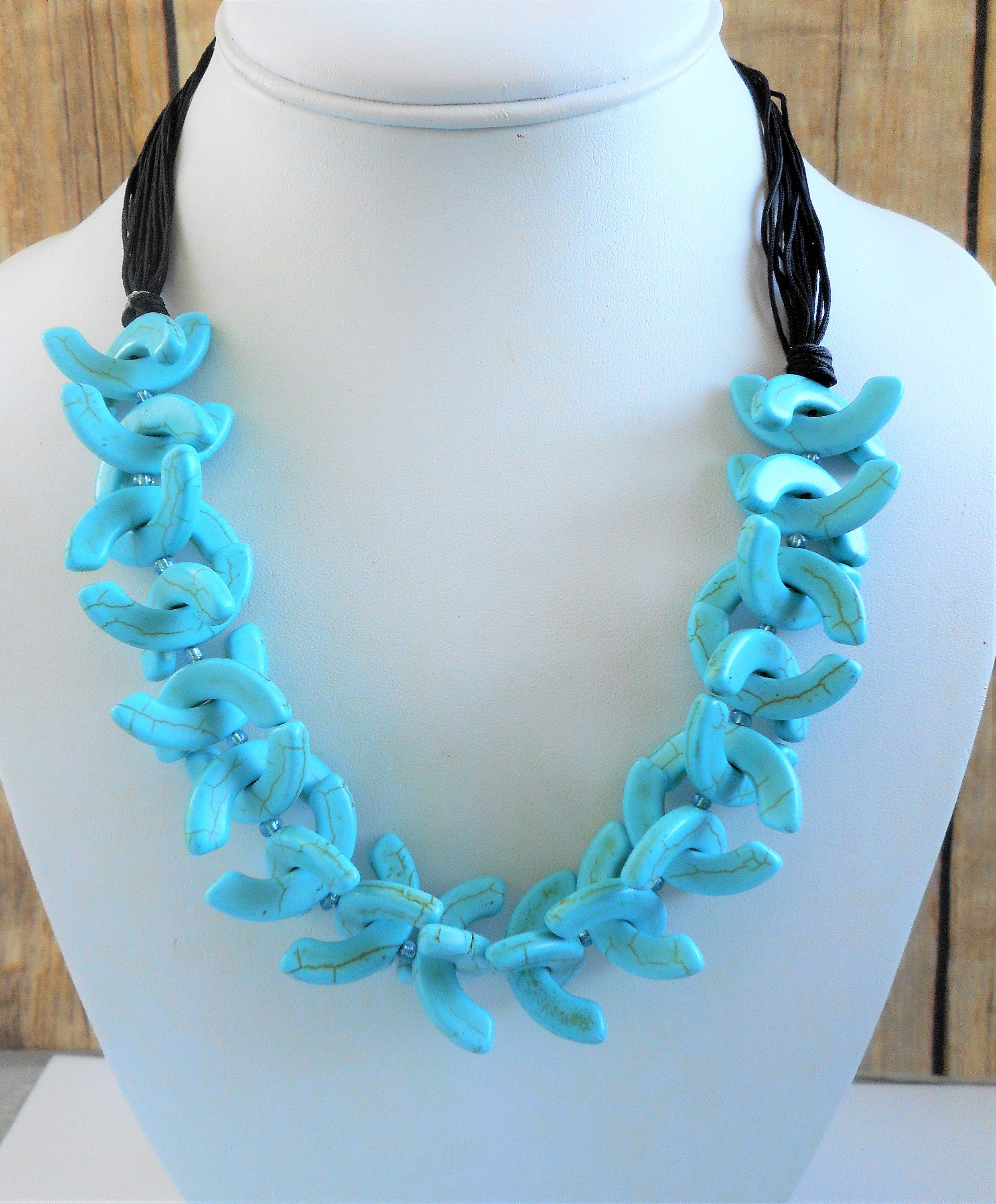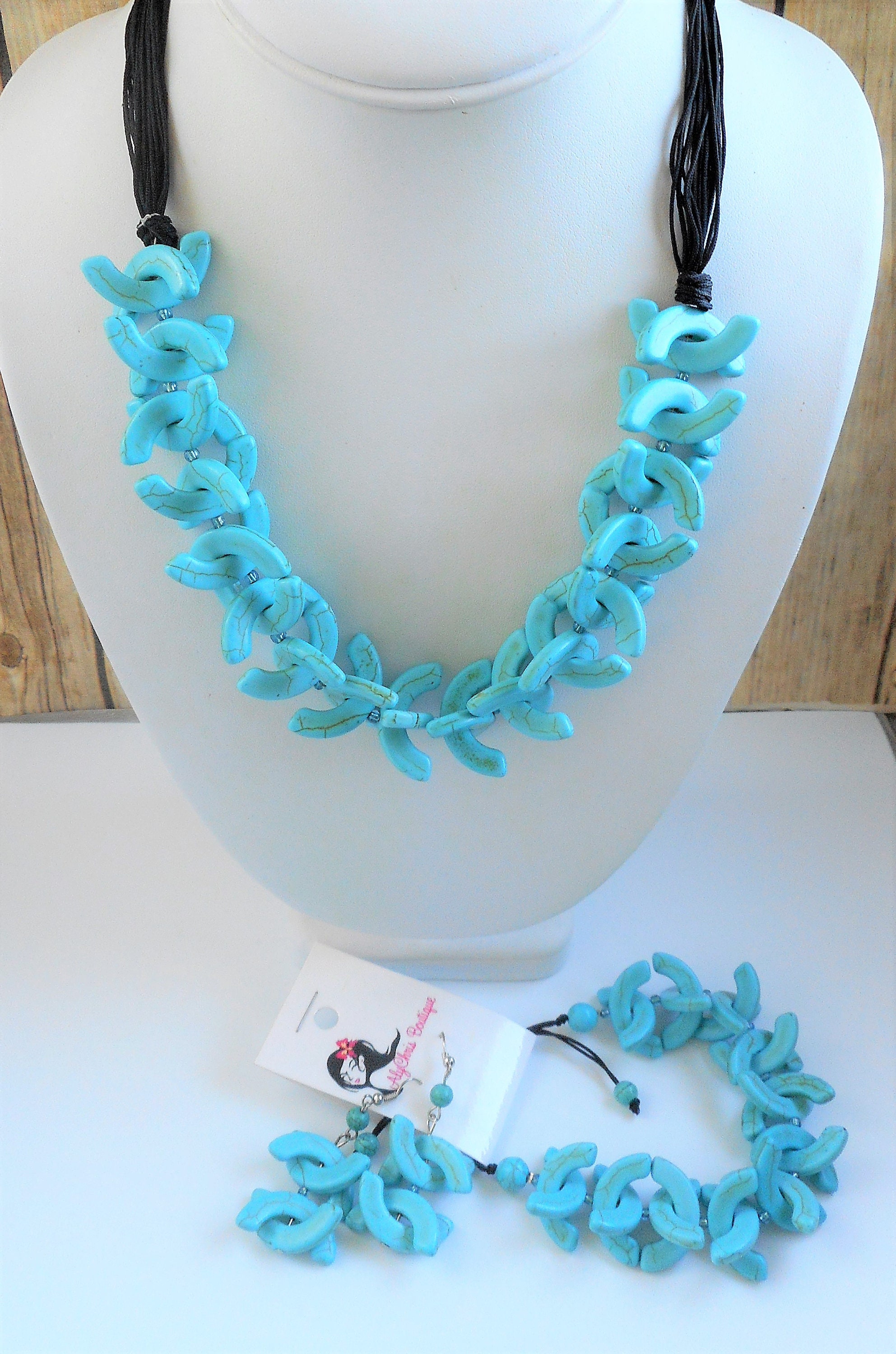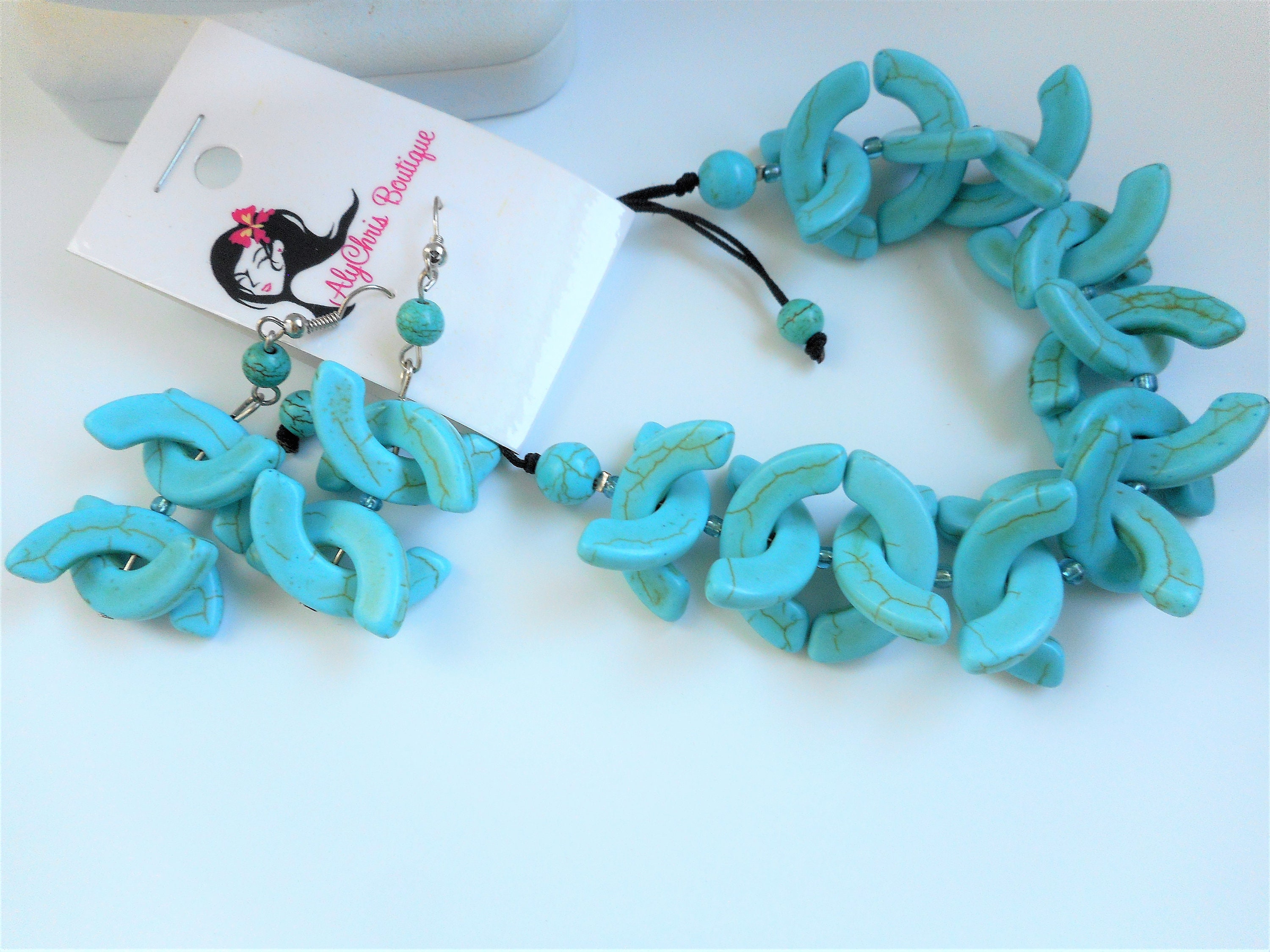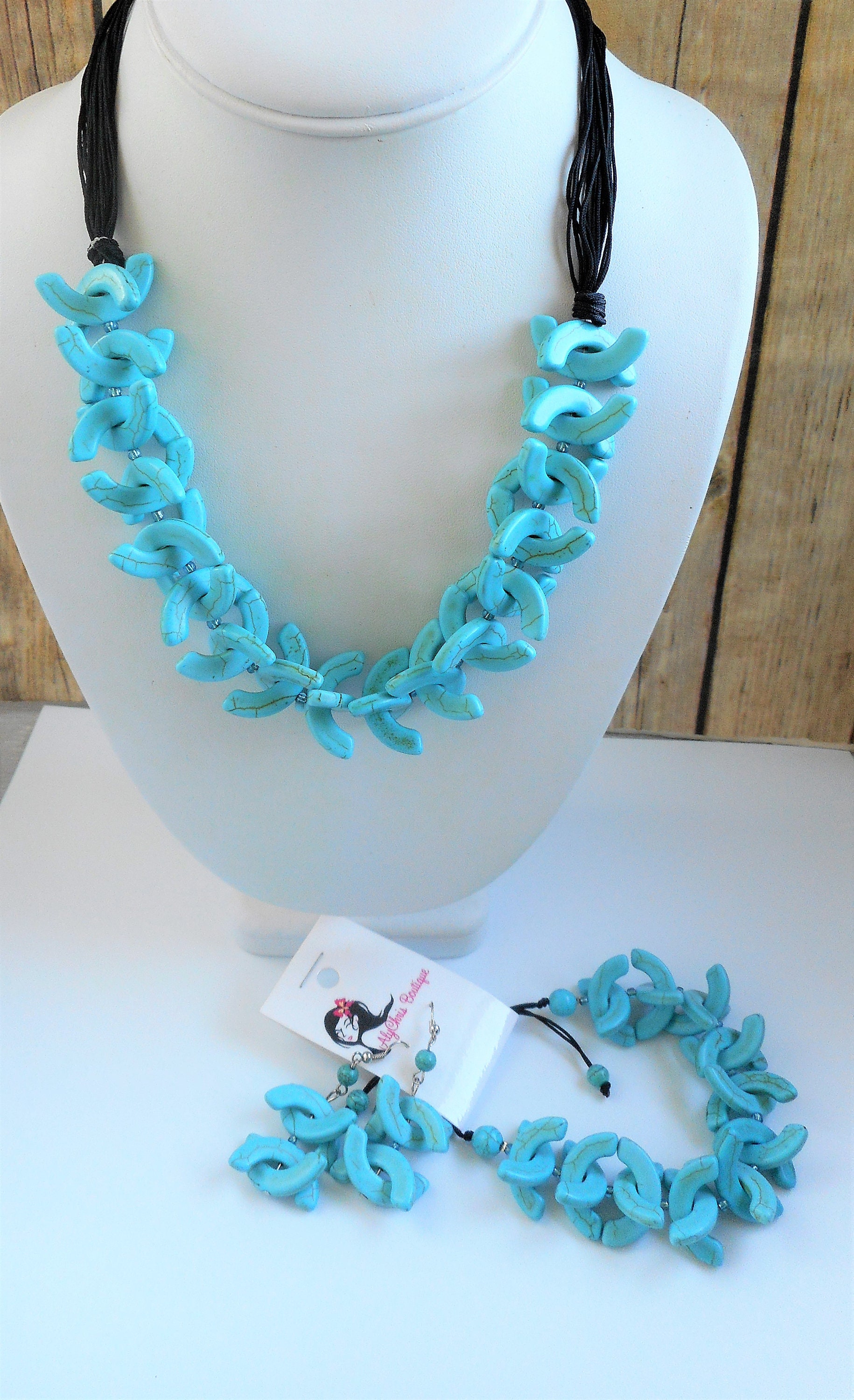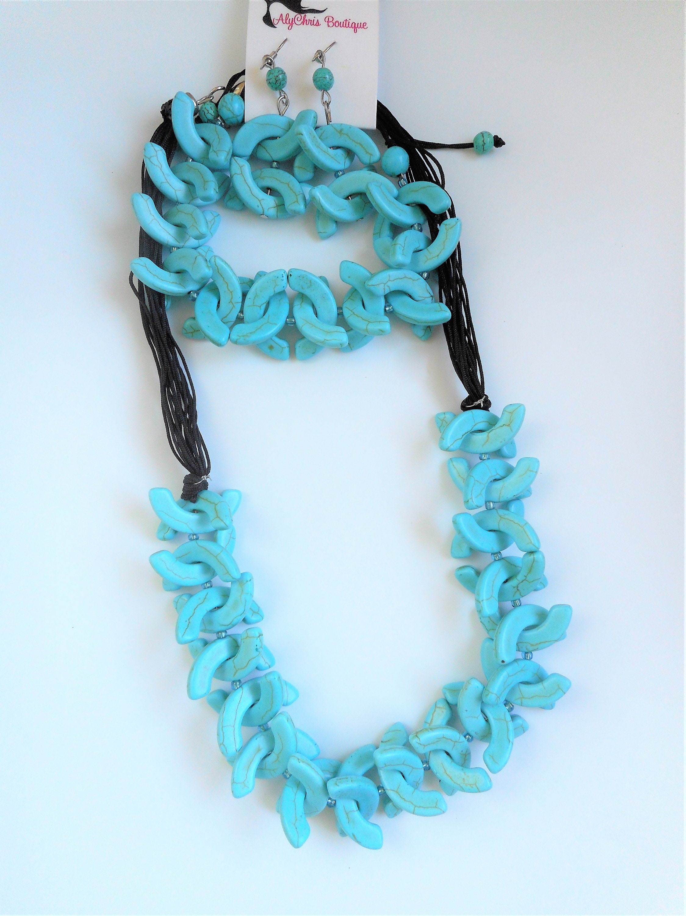 Chunky Turquenite Beaded Necklace, Bracelet and Earring Set, Southwest Jewelry, Blue Stone Necklace, Boho Jewelry
