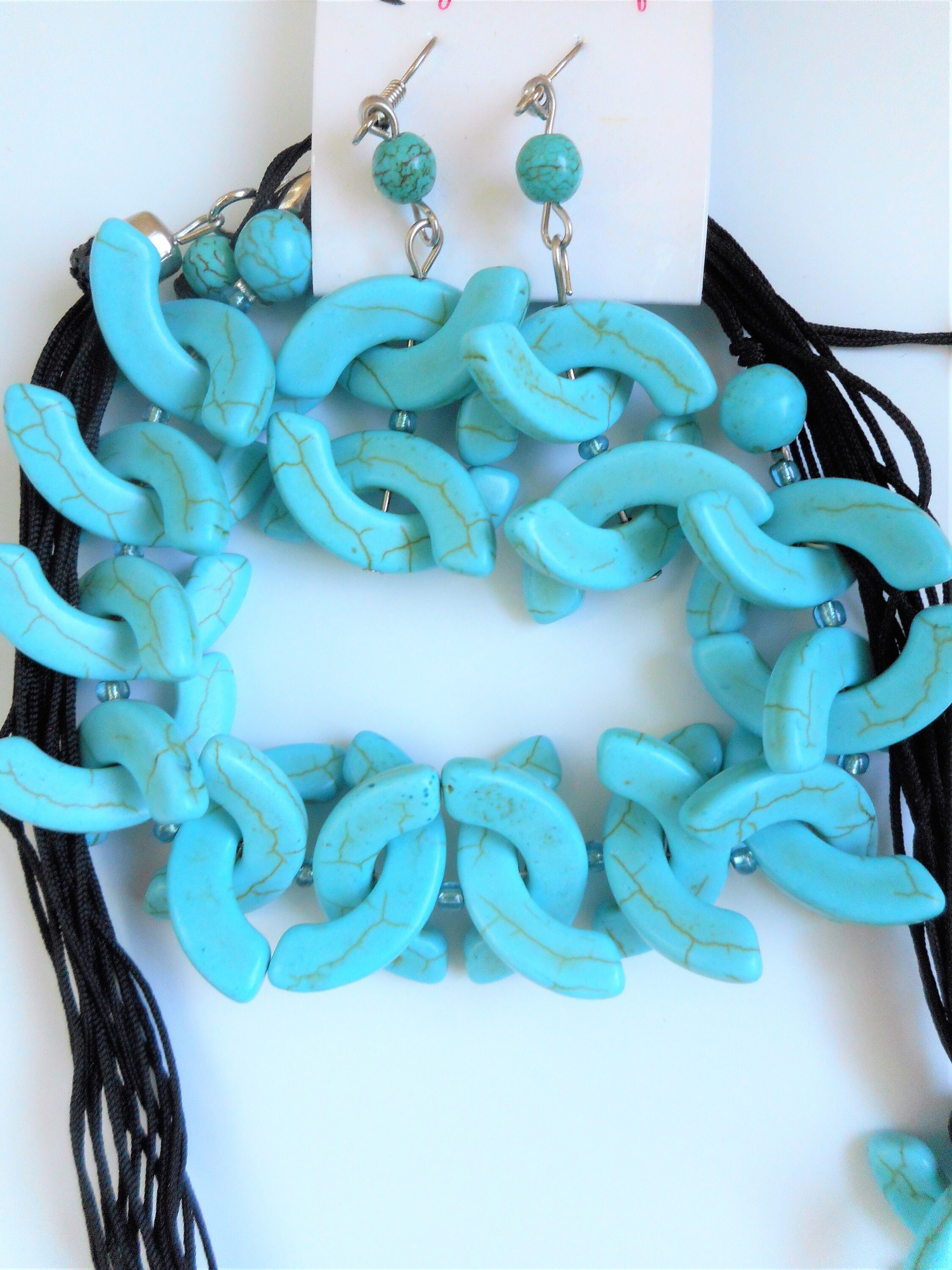 3piece Chunky Turquenite Beaded Necklace, Bracelet and Earring Set