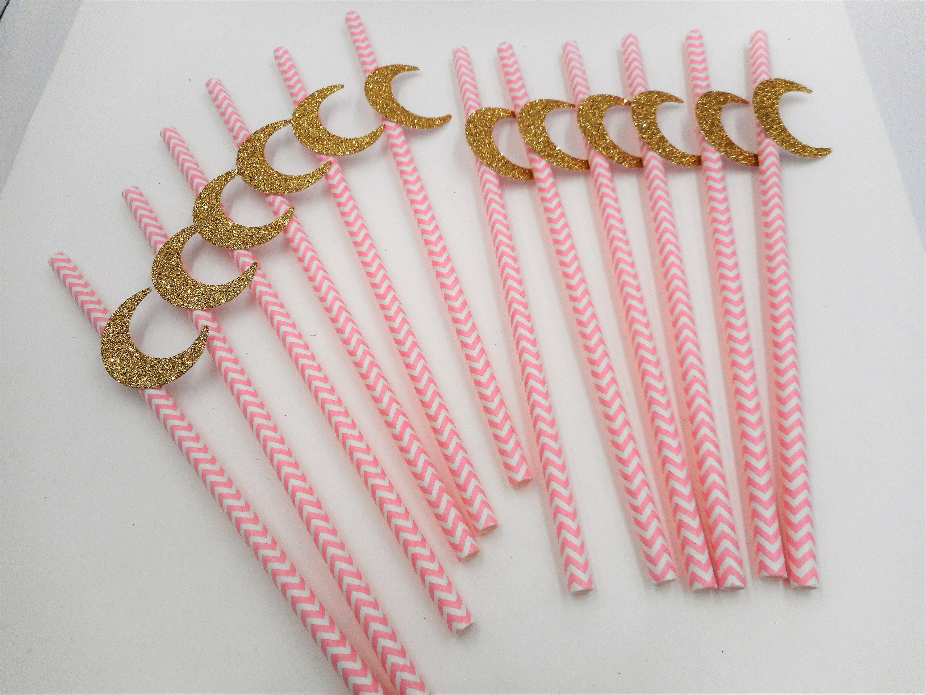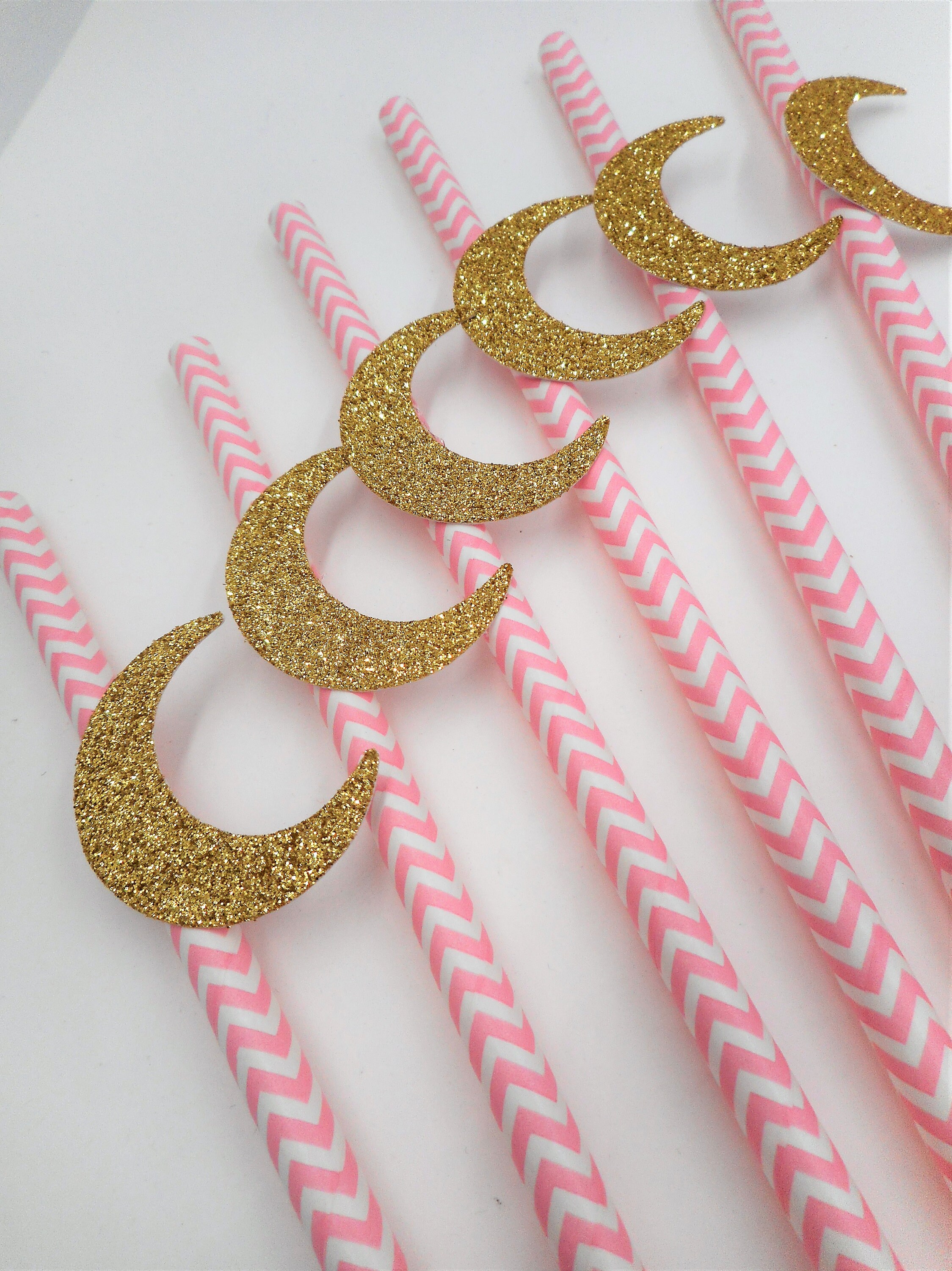 Moon Party Decor, Gold Glitter Moon Party Straw, Moon Straws, Bridal Shower, Baby Shower, Cake Pop Sticks, Twinkle Little Star