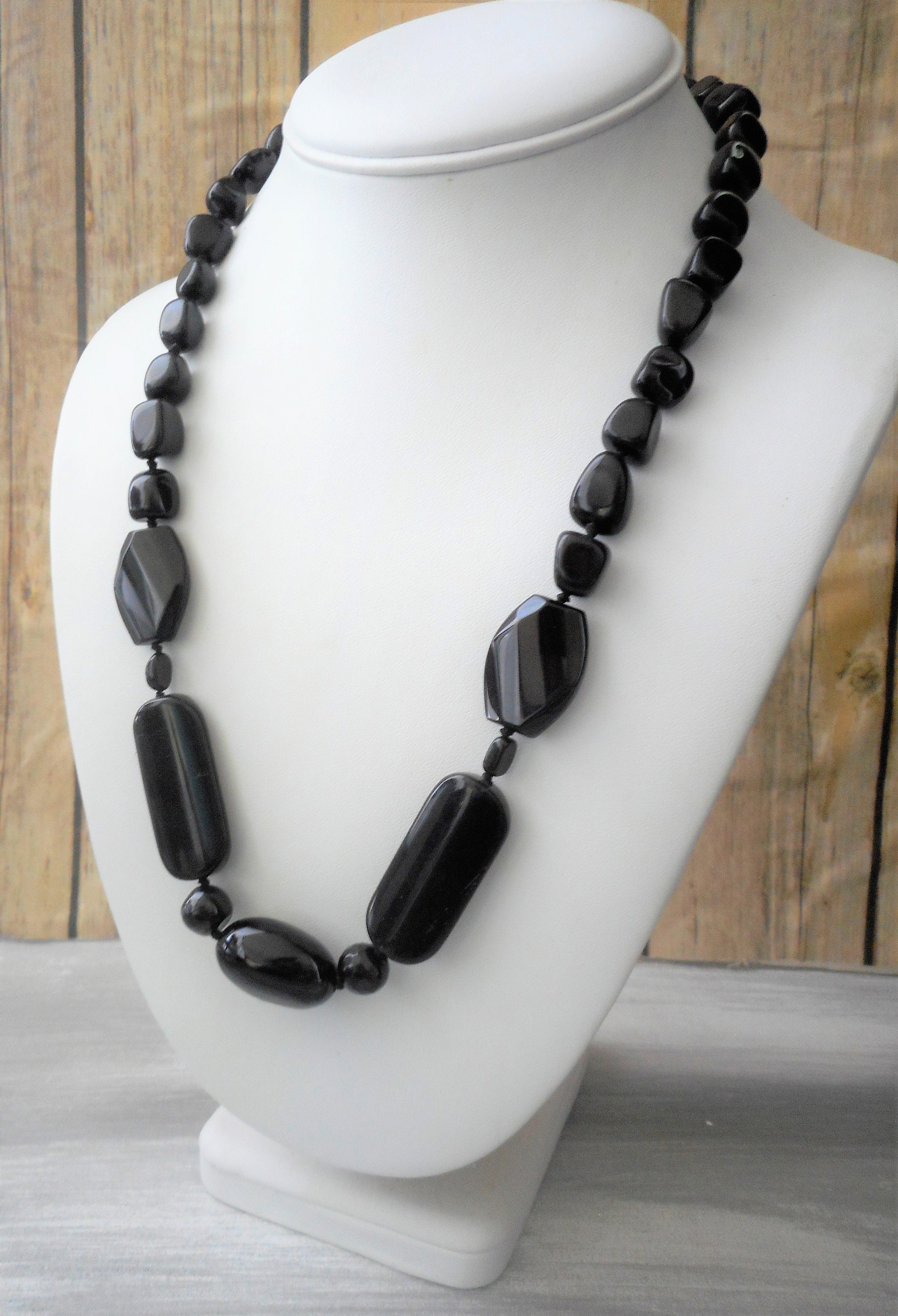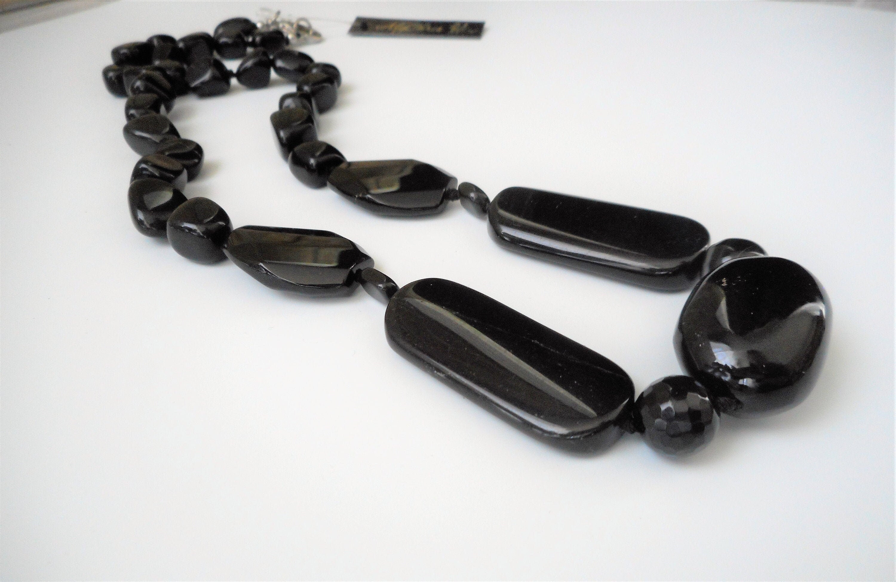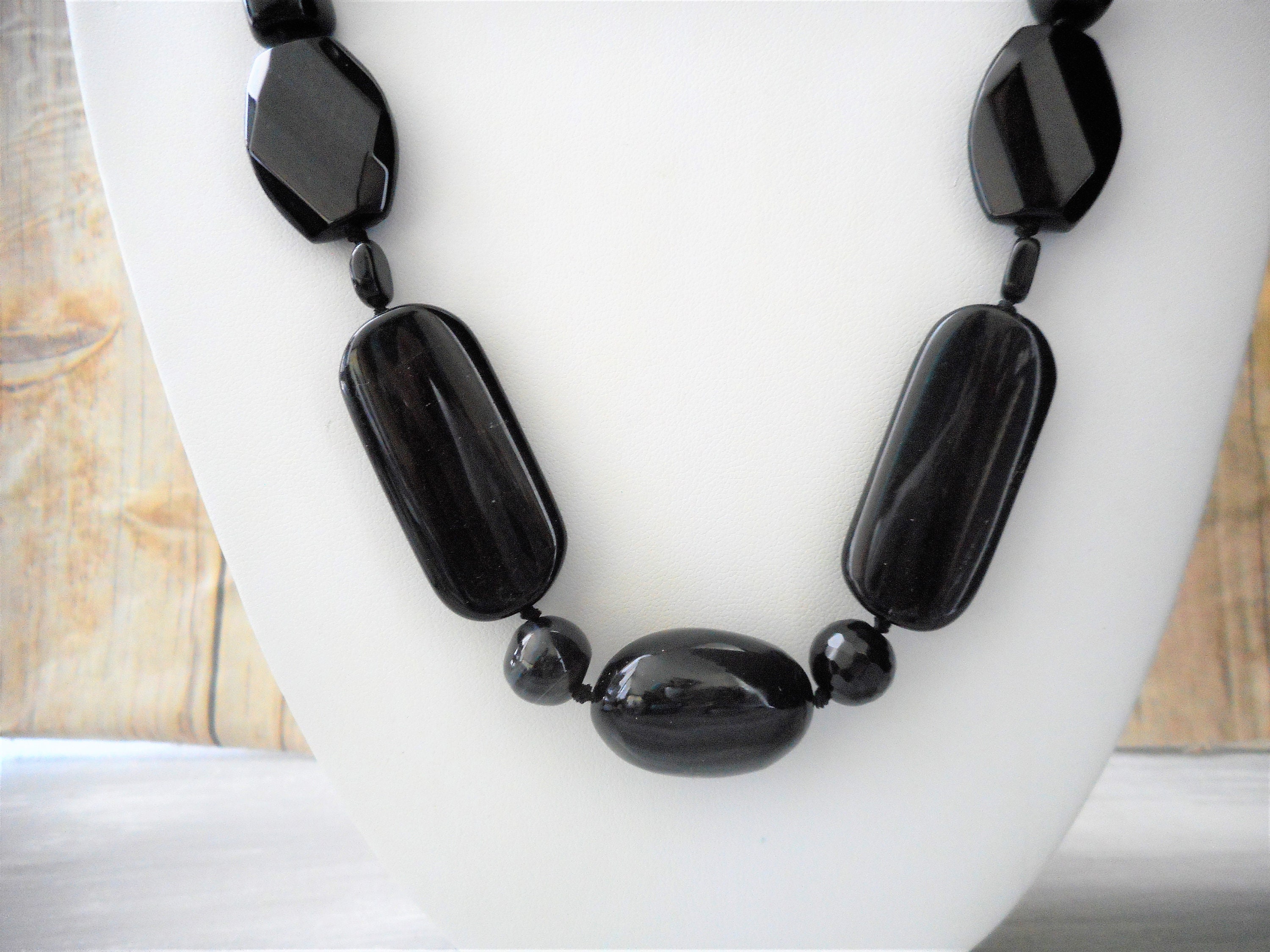 Black Onyx Gemstone Necklace, Black Stone Beaded Necklace, Big Bold Necklace, Big Bead Necklace, Onyx stone Necklace, Black Stone Jewelry