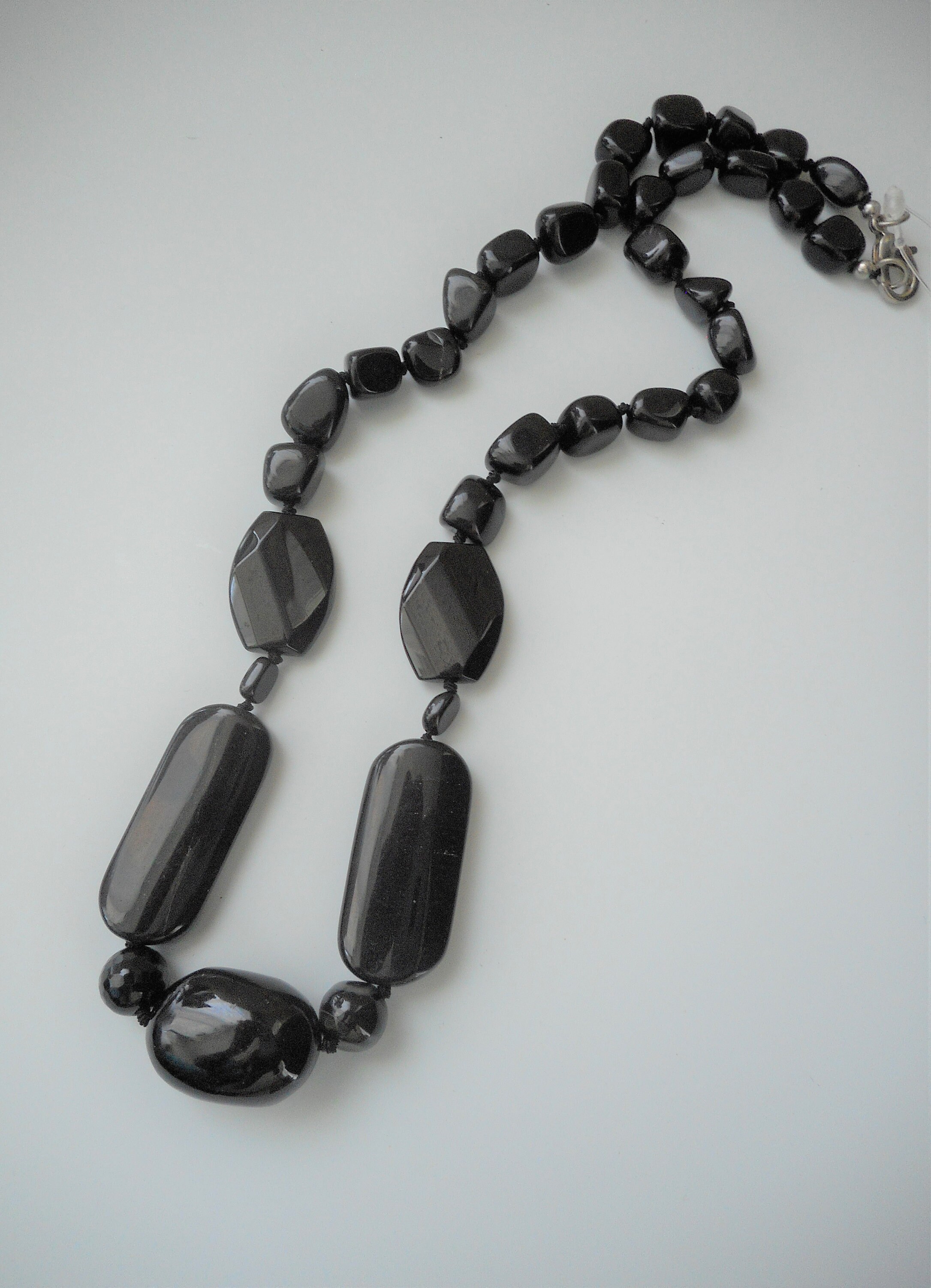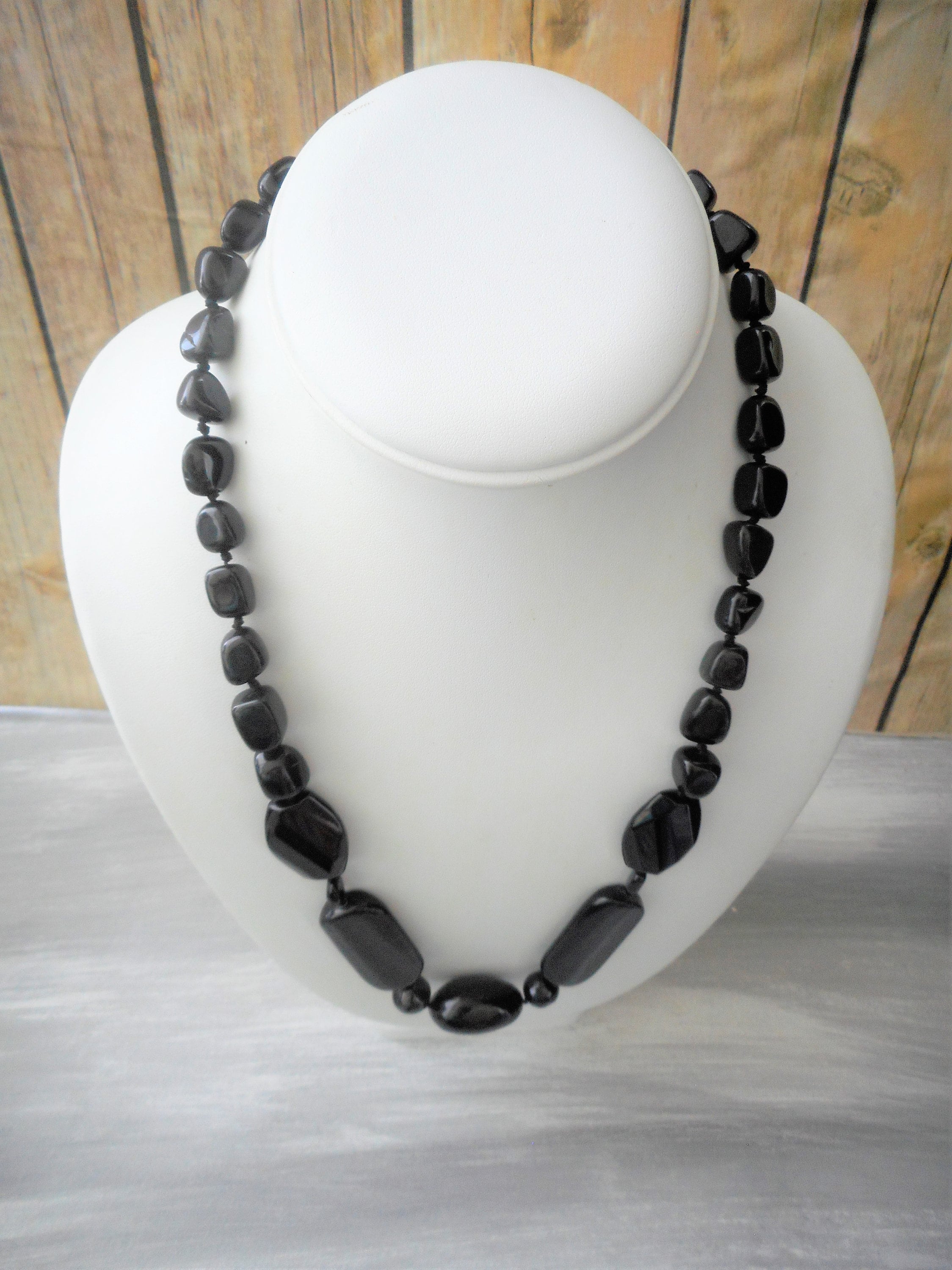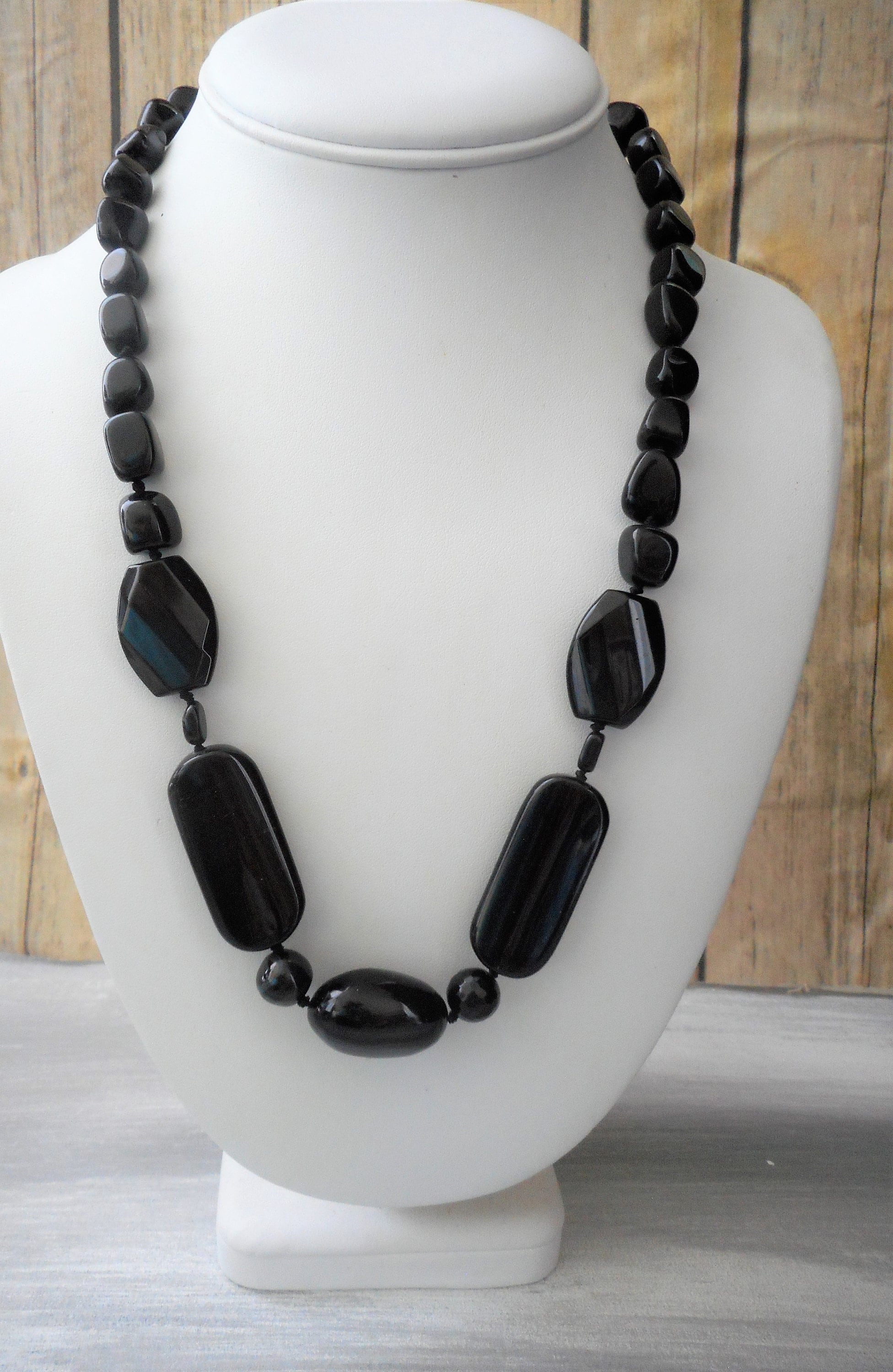 Black Onyx Gemstone Necklace, Black Stone Beaded Necklace, Big Bold Necklace, Big Bead Necklace, Onyx stone Necklace, Black Stone Jewelry