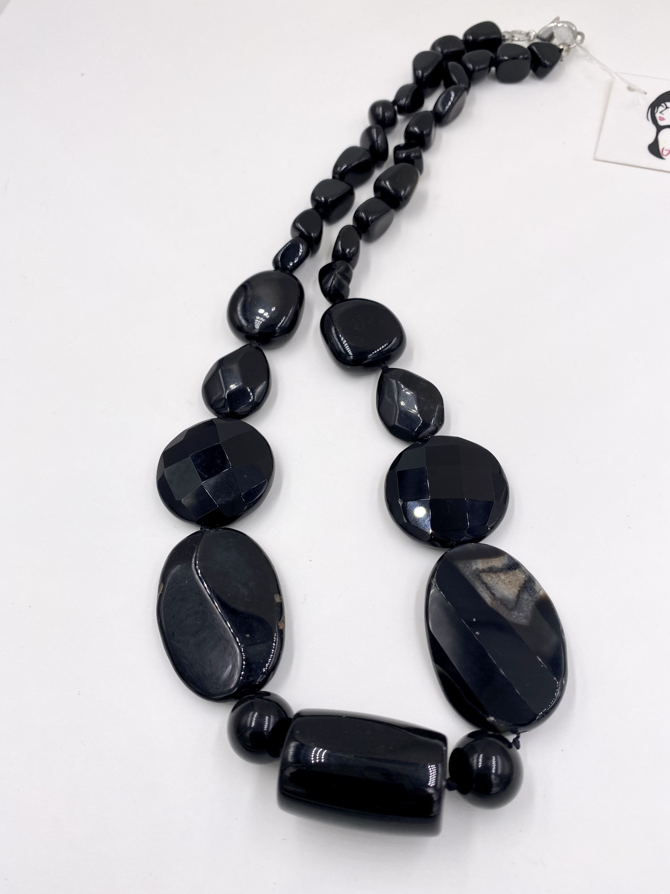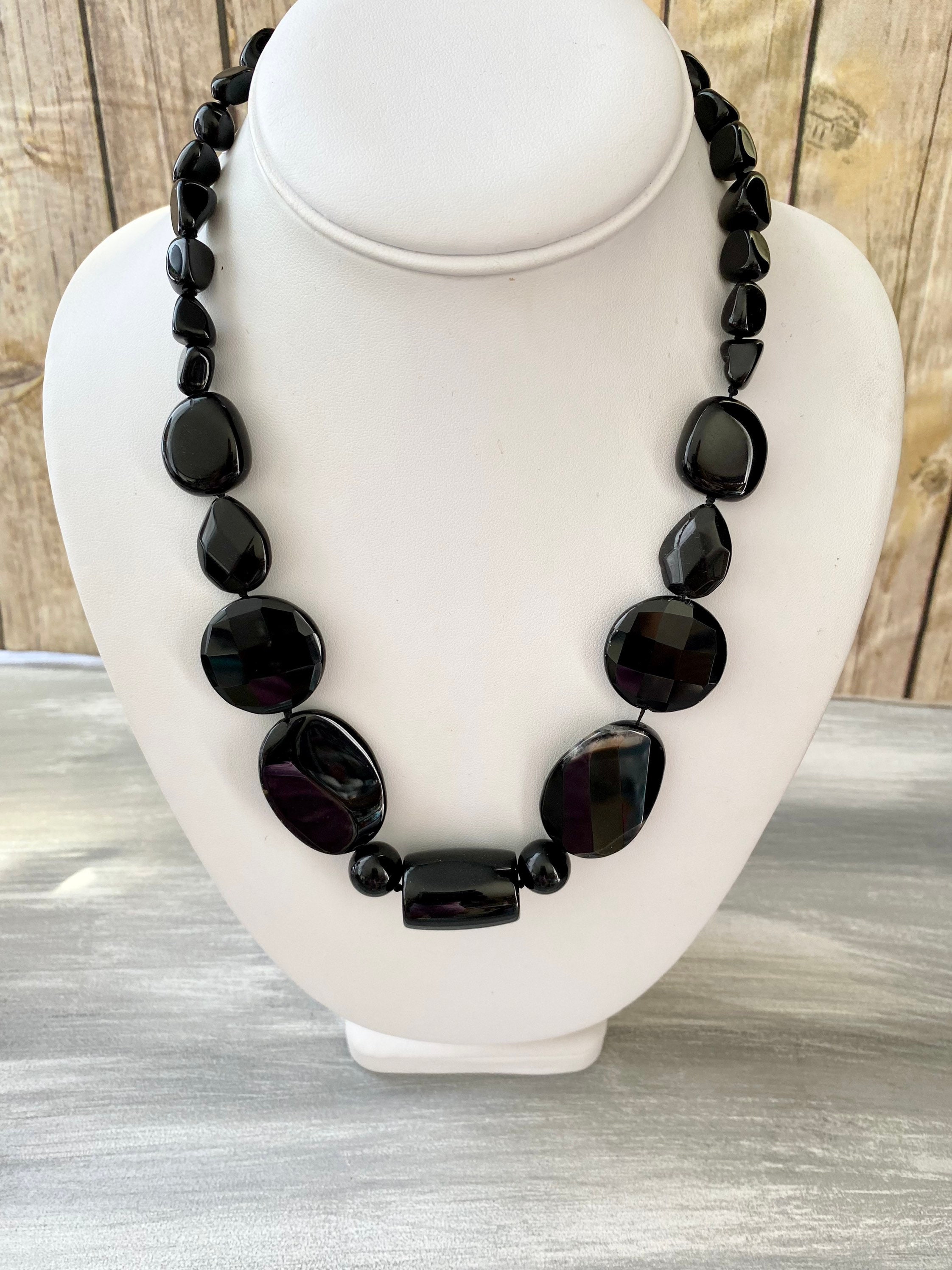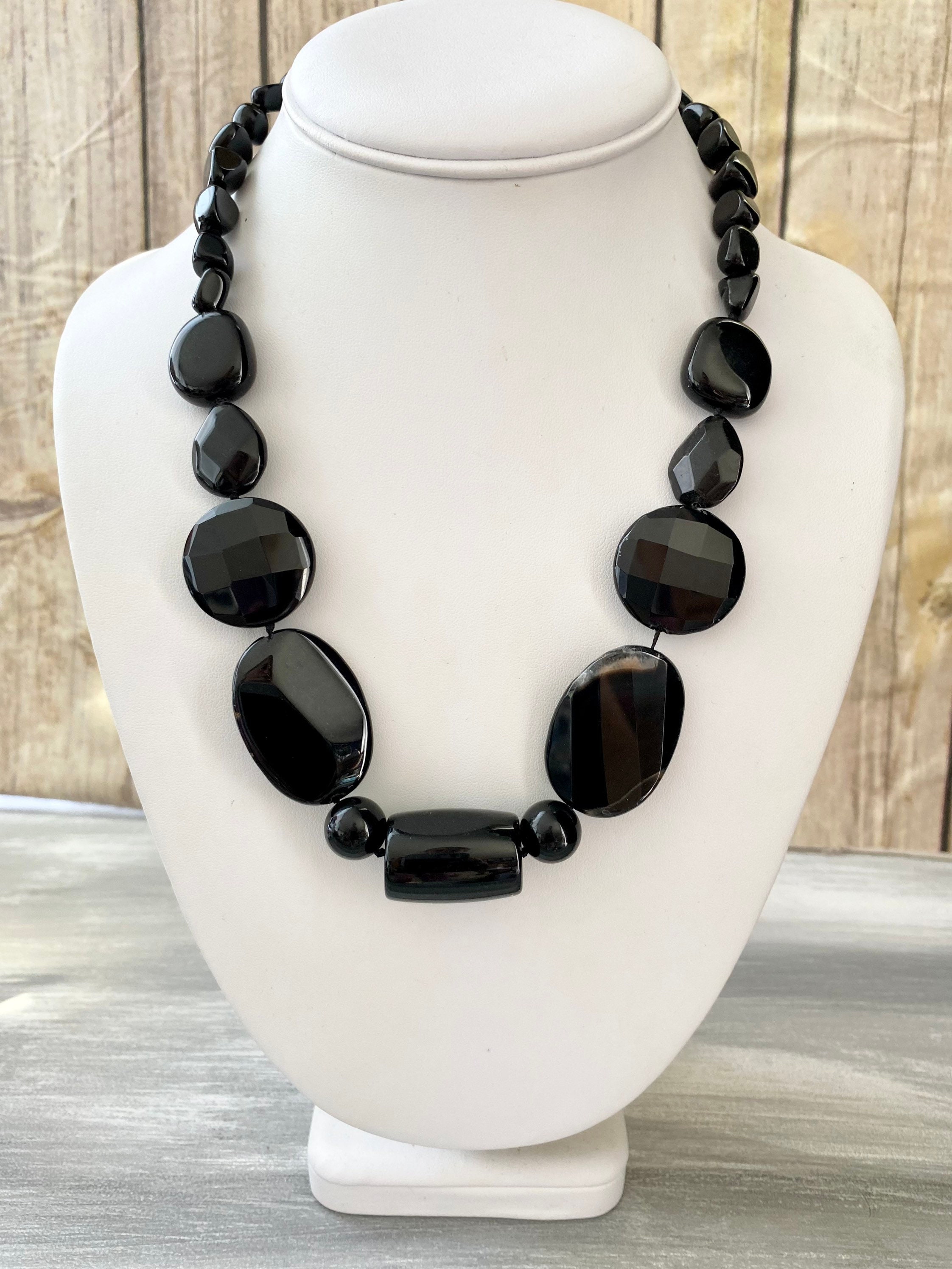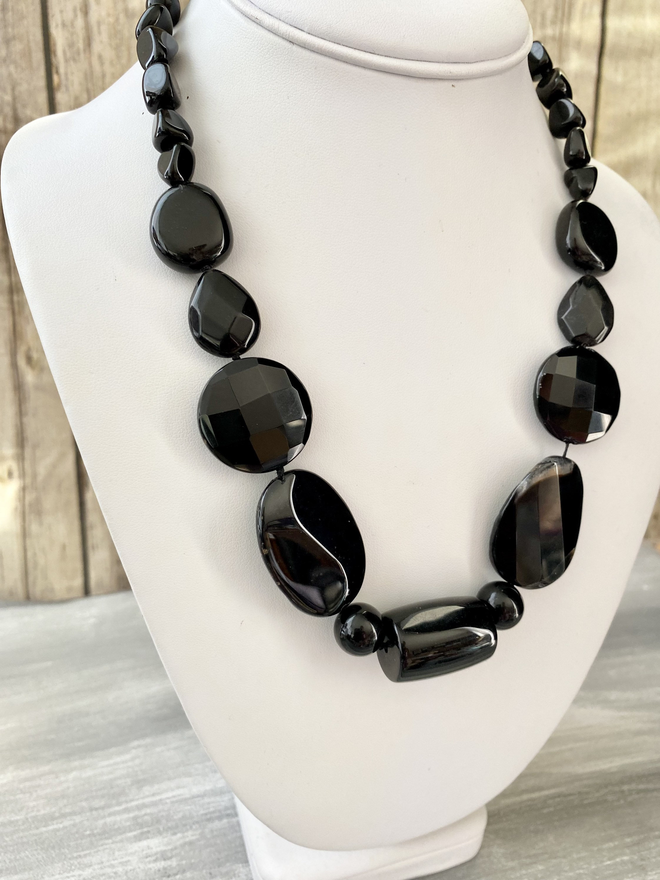 Black Onyx Gemstone Necklace, Black Stone Beaded Necklace, Big Bold Necklace, Big Bead Necklace, Onyx stone Necklace, Black Stone Jewelry