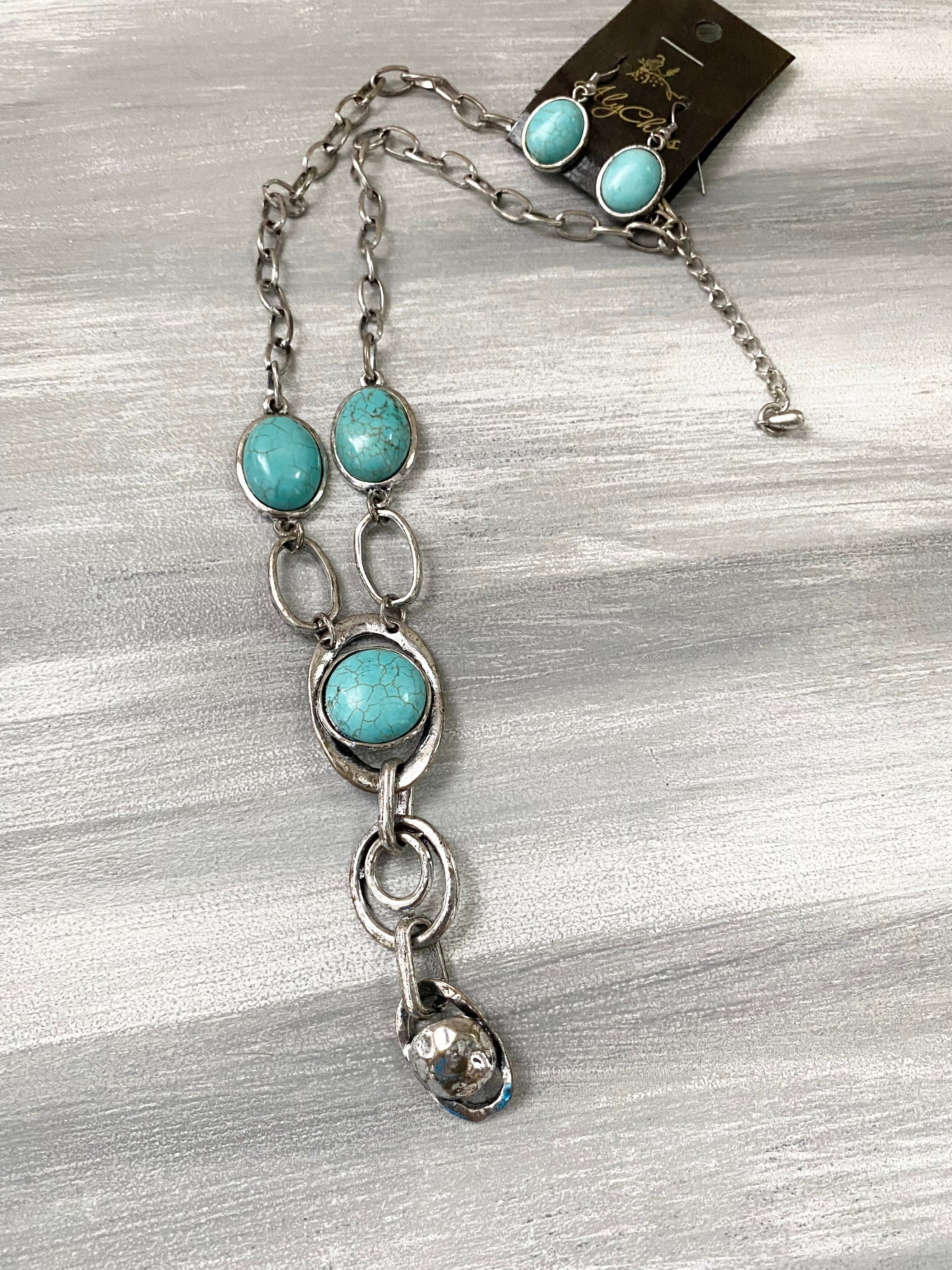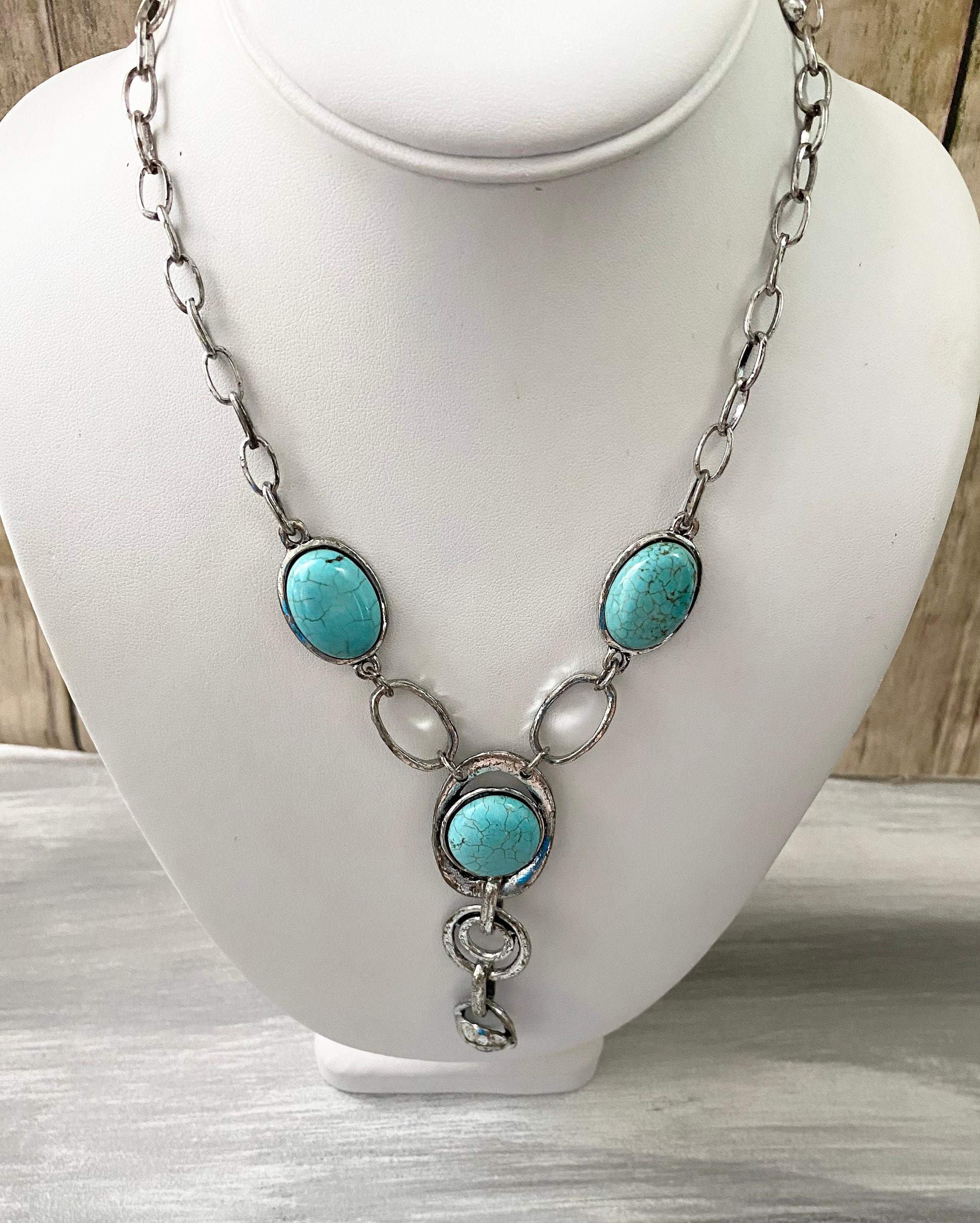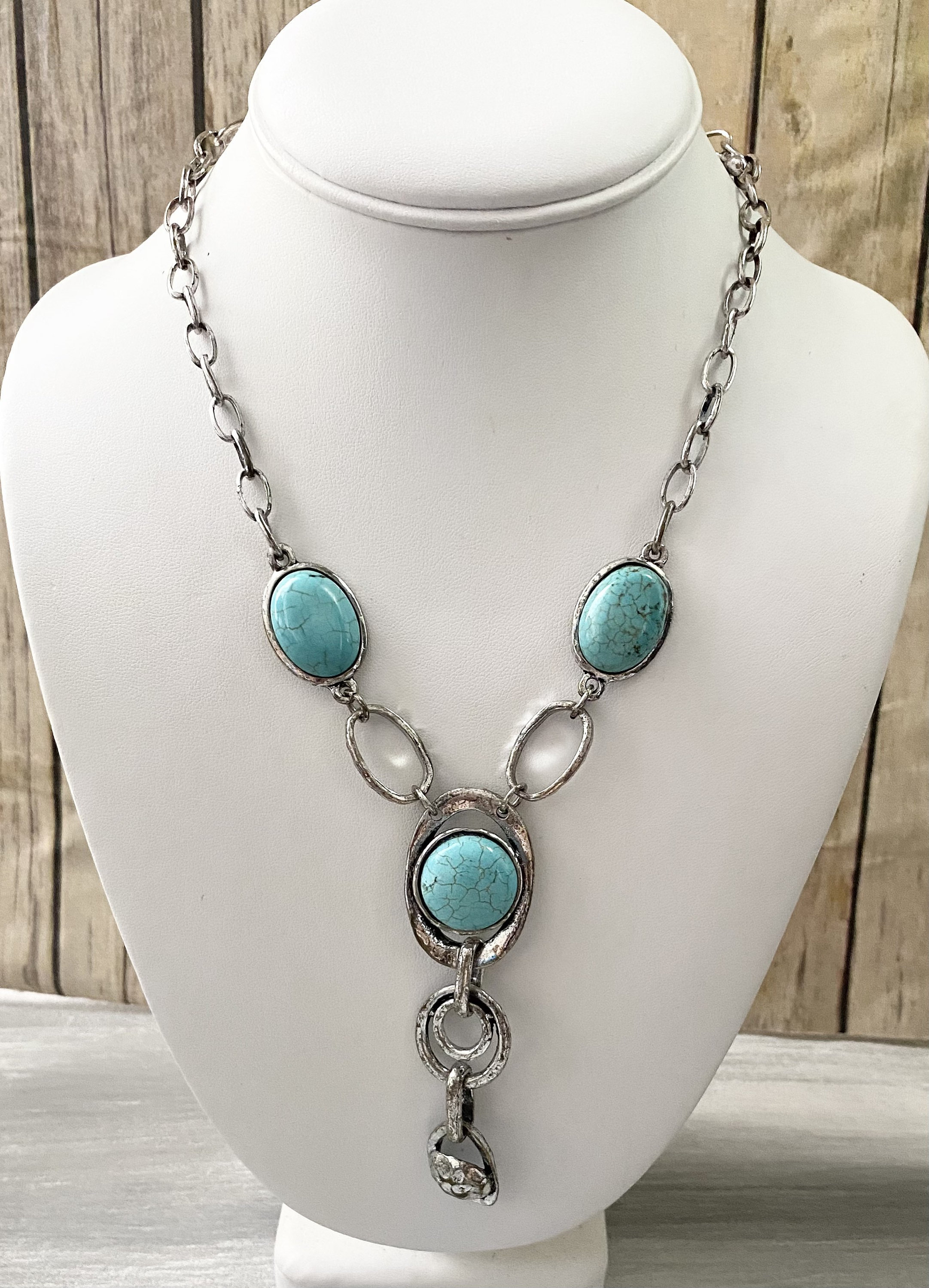 Gemstone Pendant Y Chain Necklace, Turquenite Necklace, Stone Necklace, Southwestern Style Jewelry, Blue Stone Pendant