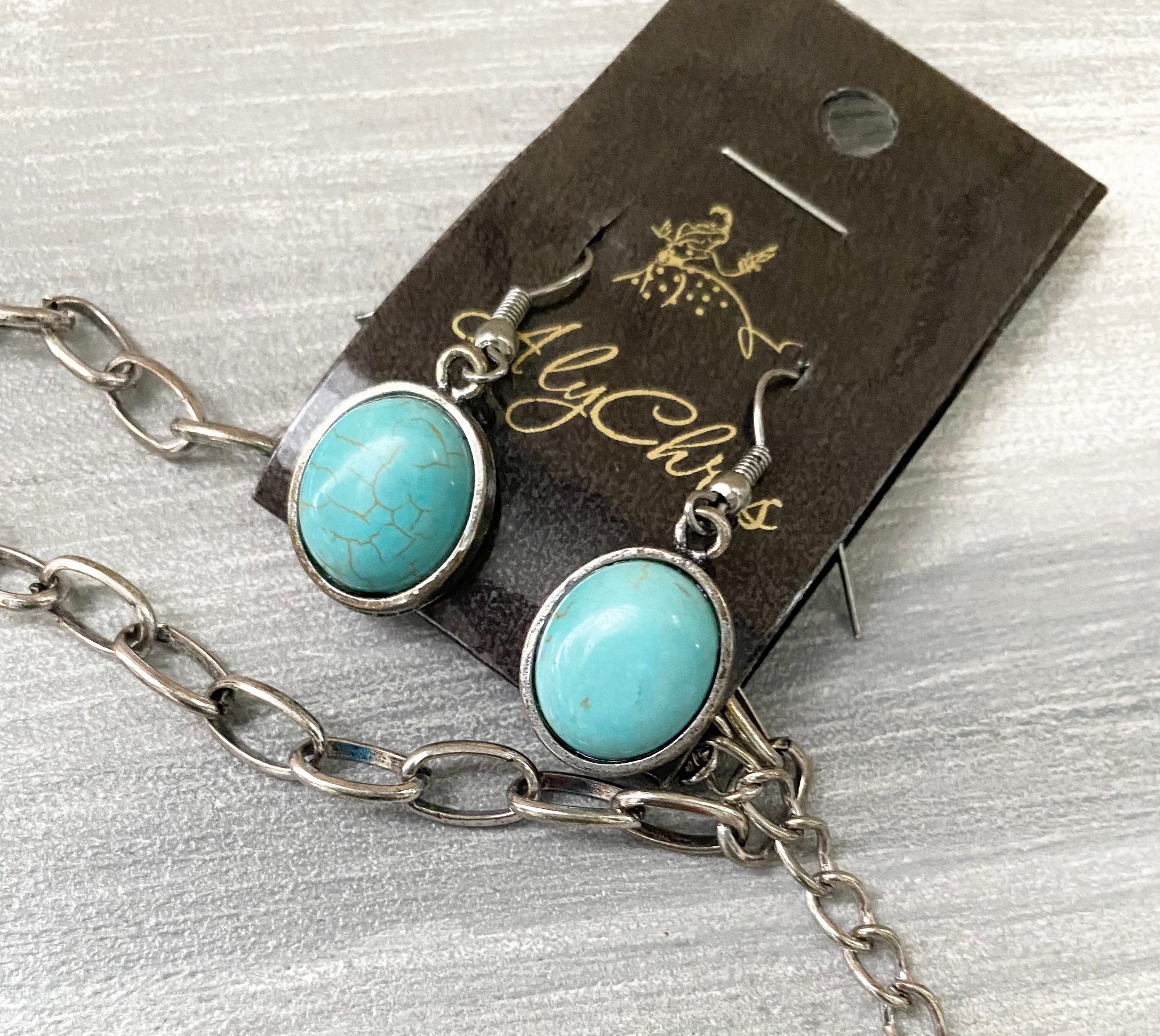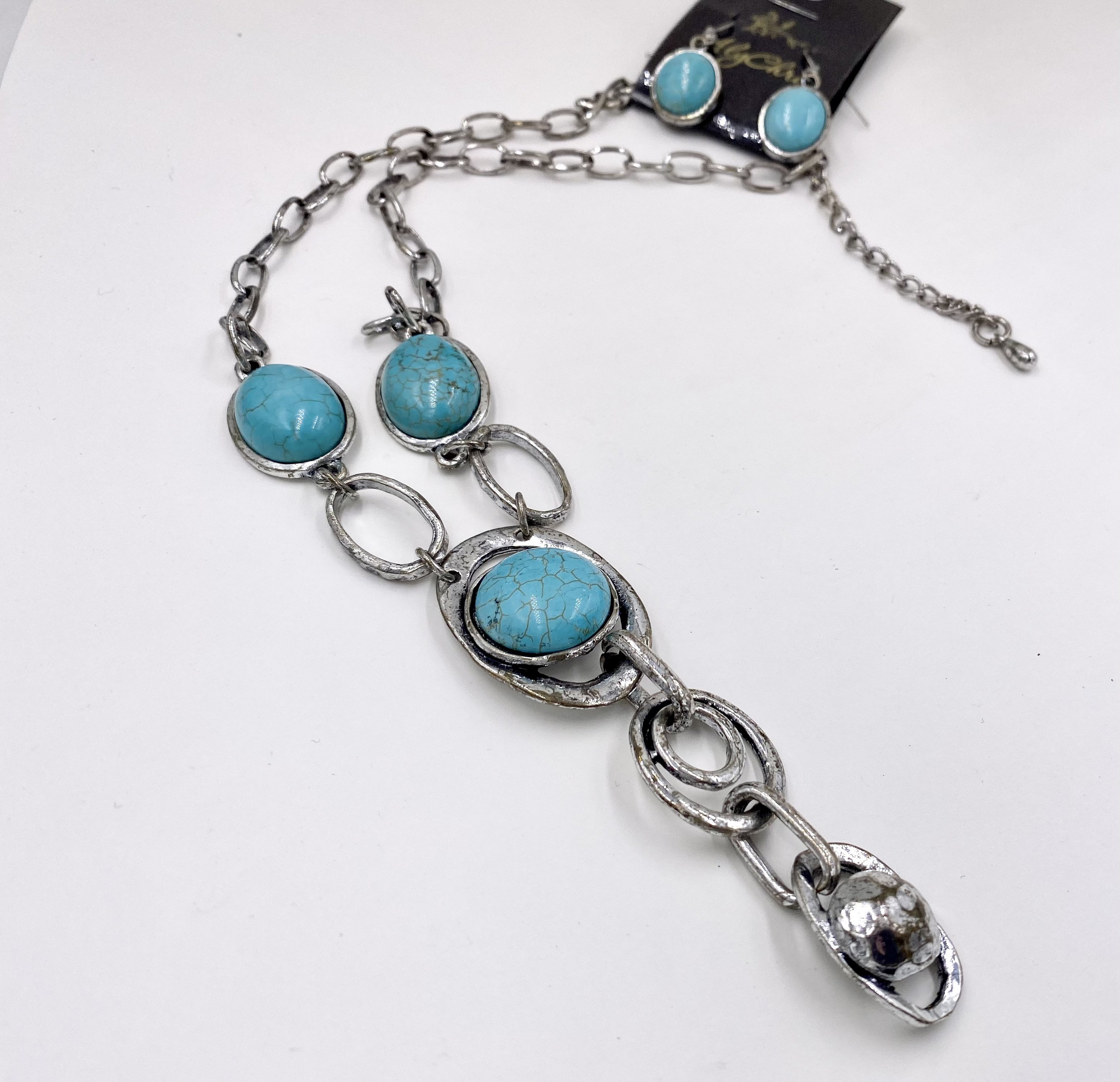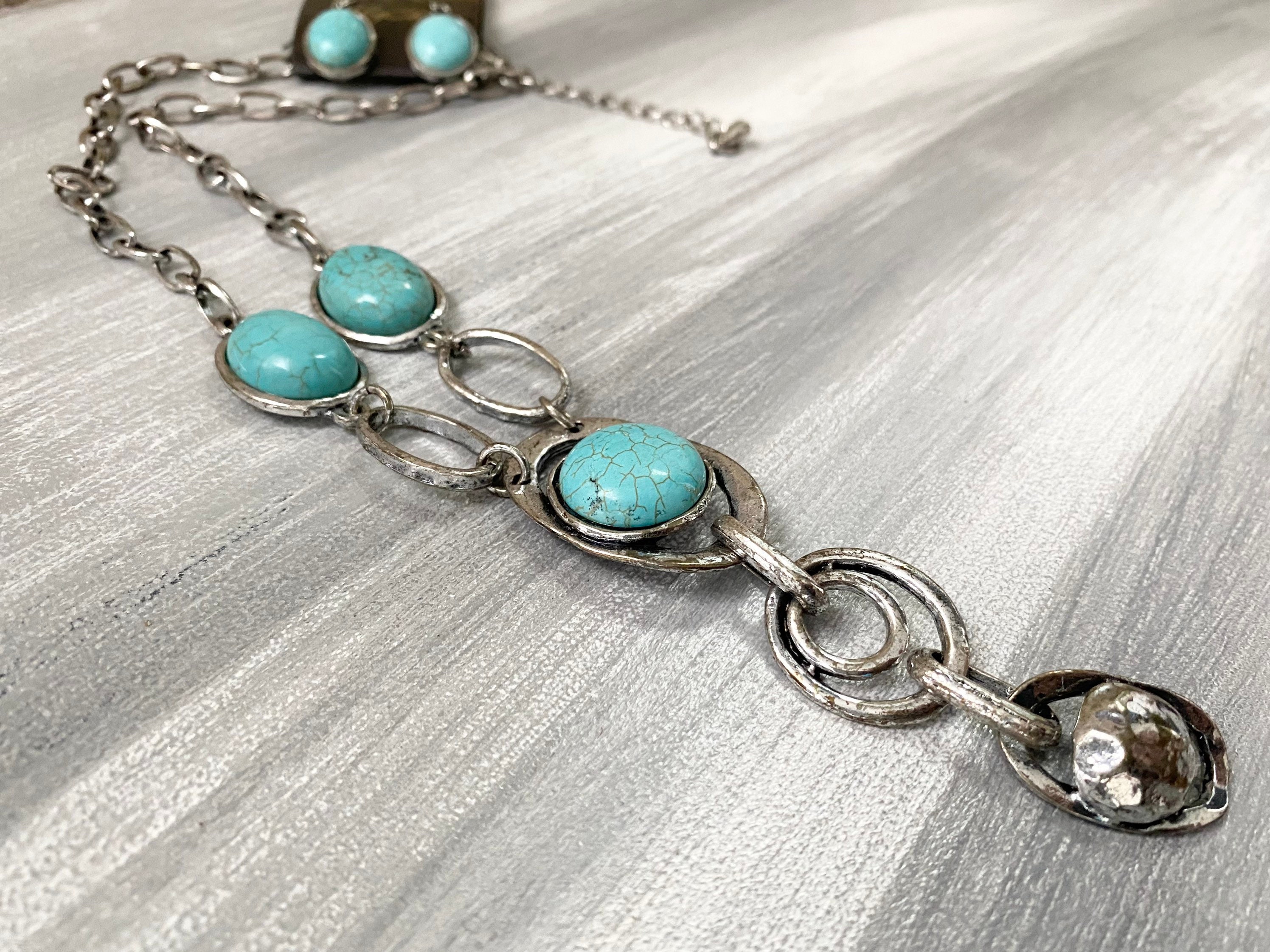 Gemstone Pendant Y Chain Necklace, Turquenite Necklace, Stone Necklace, Southwestern Style Jewelry, Blue Stone Pendant