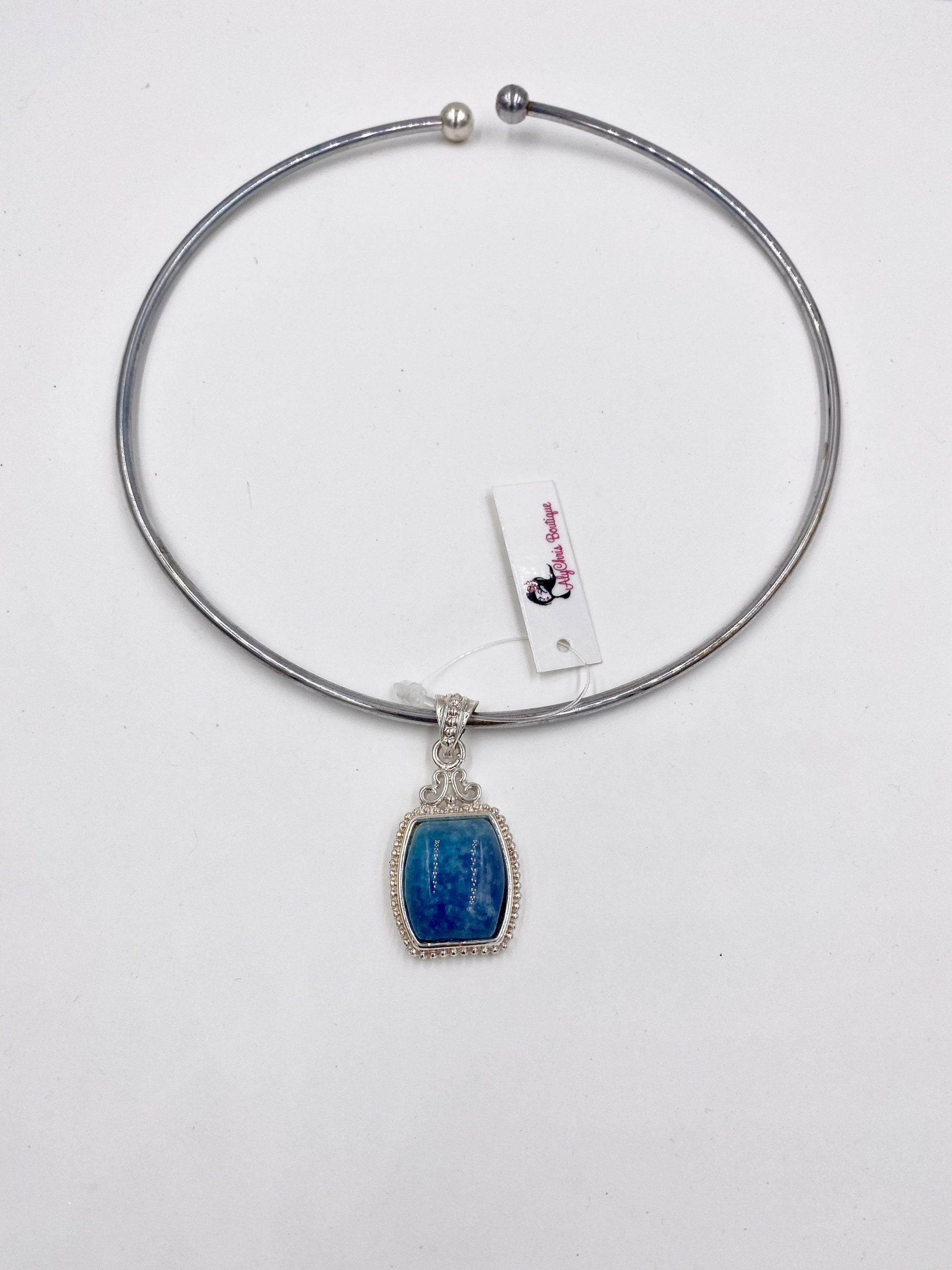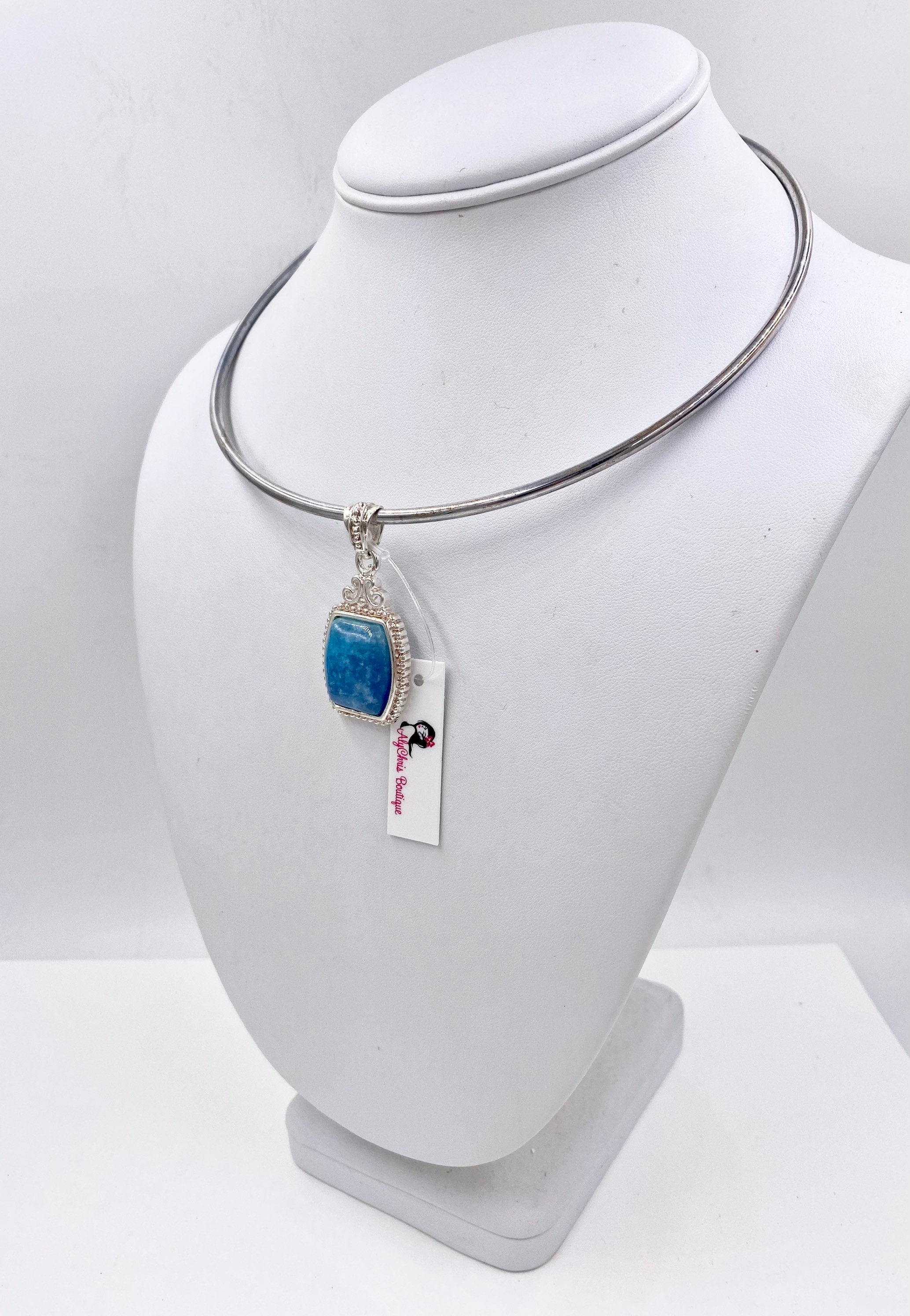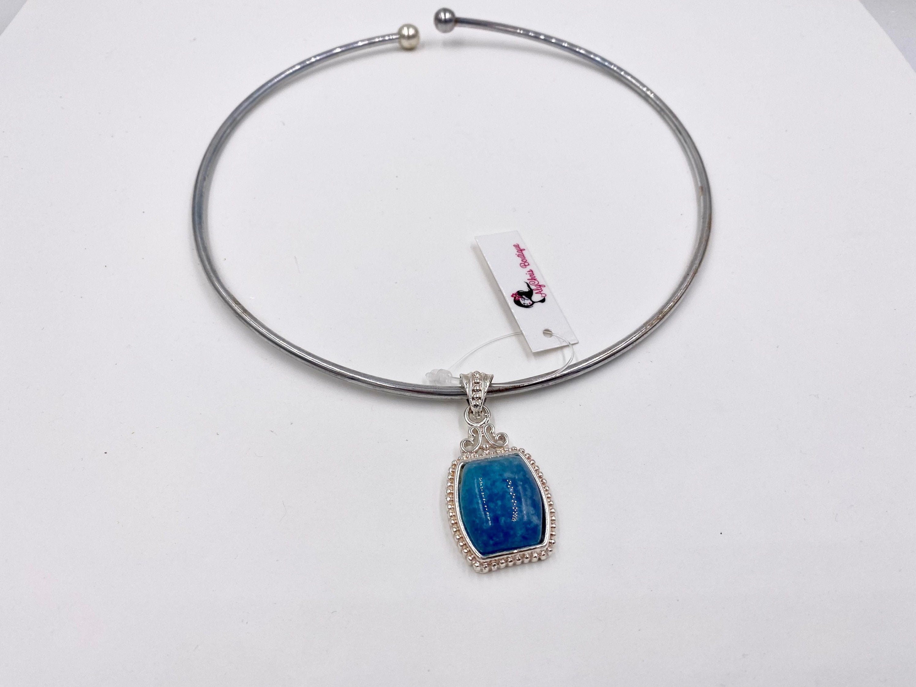 Blue Hemimorphite Pendant Choker necklace, Gemstone Choker Necklace, Blue Stone Necklace, Zodiac Libra Birthstone, Blue Stone Jewelry
