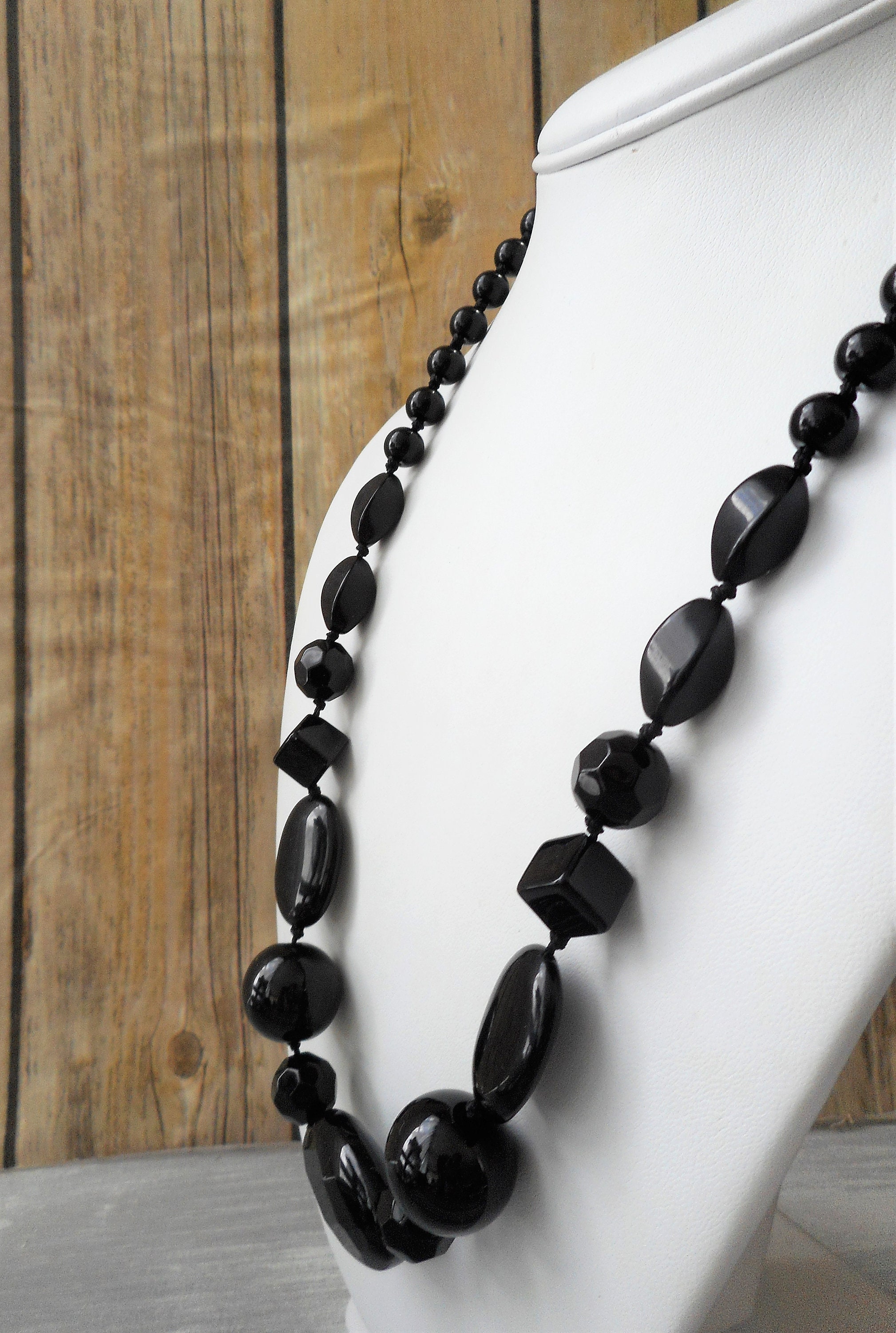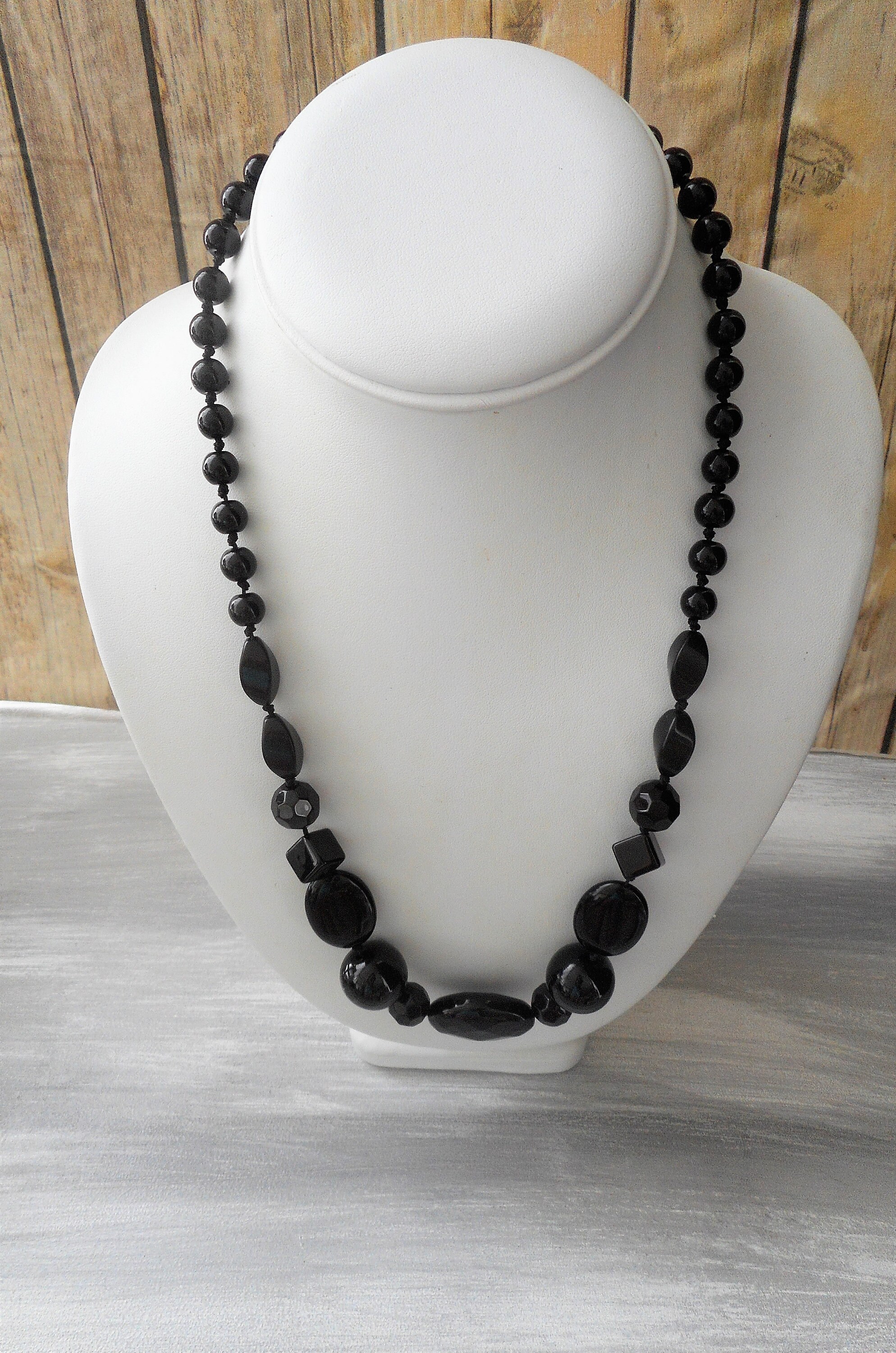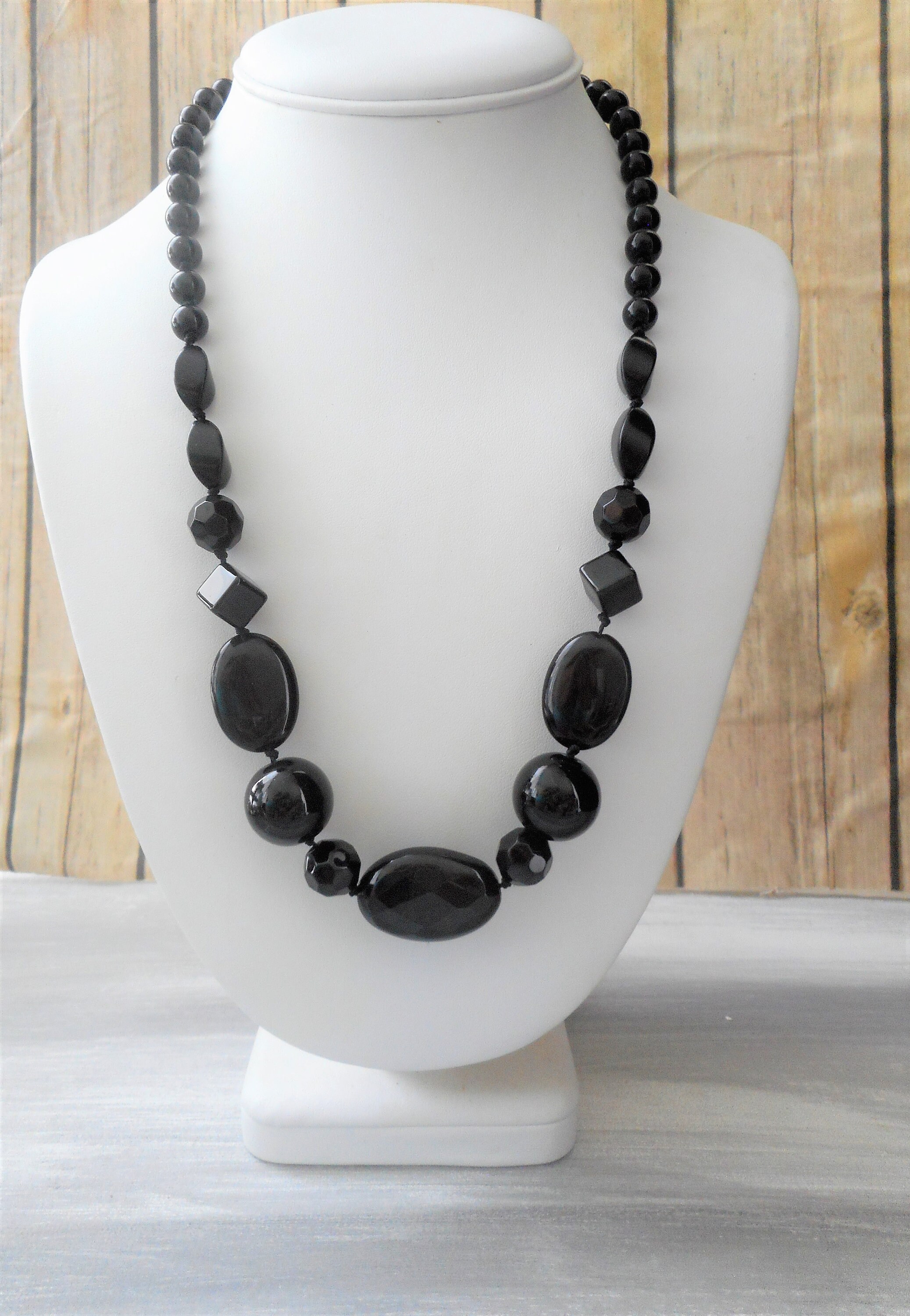 Black Onyx Gemstone Necklace, Black Stone Beaded Necklace, Bold Necklace, Big Bead Necklace, Onyx stone Necklace, Black Stone Jewelry, 20"L