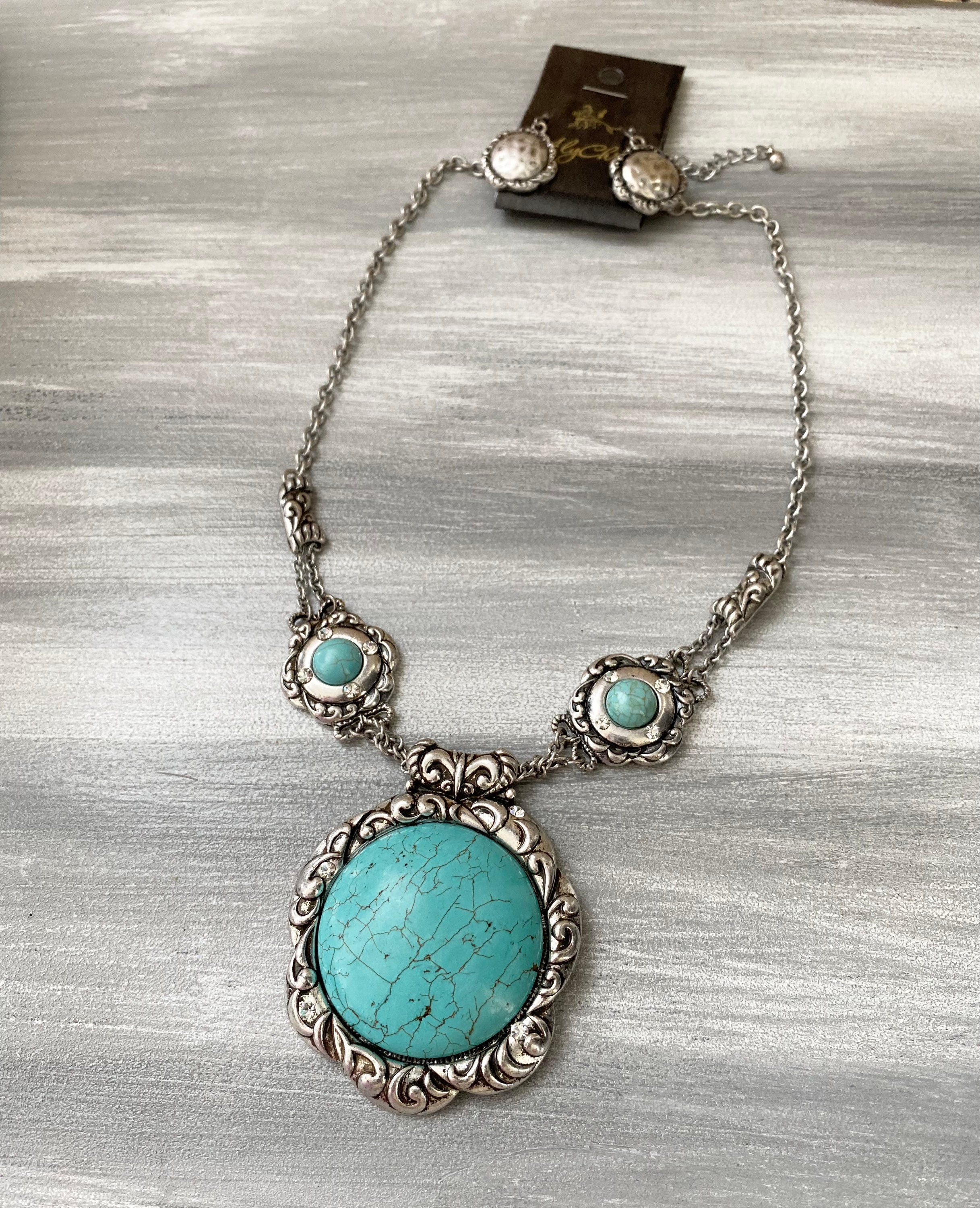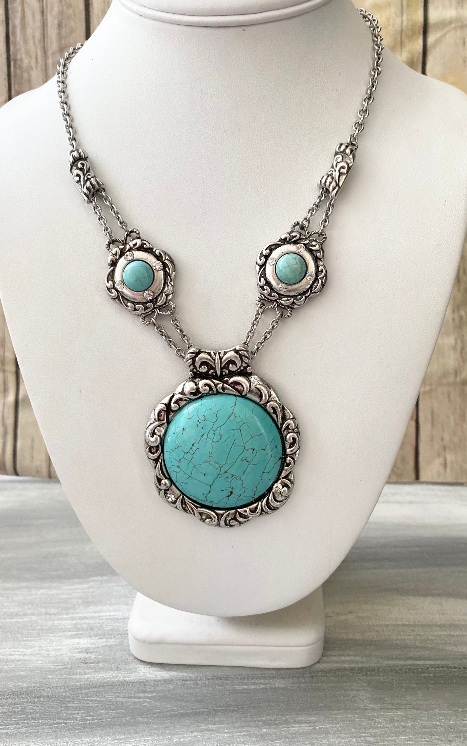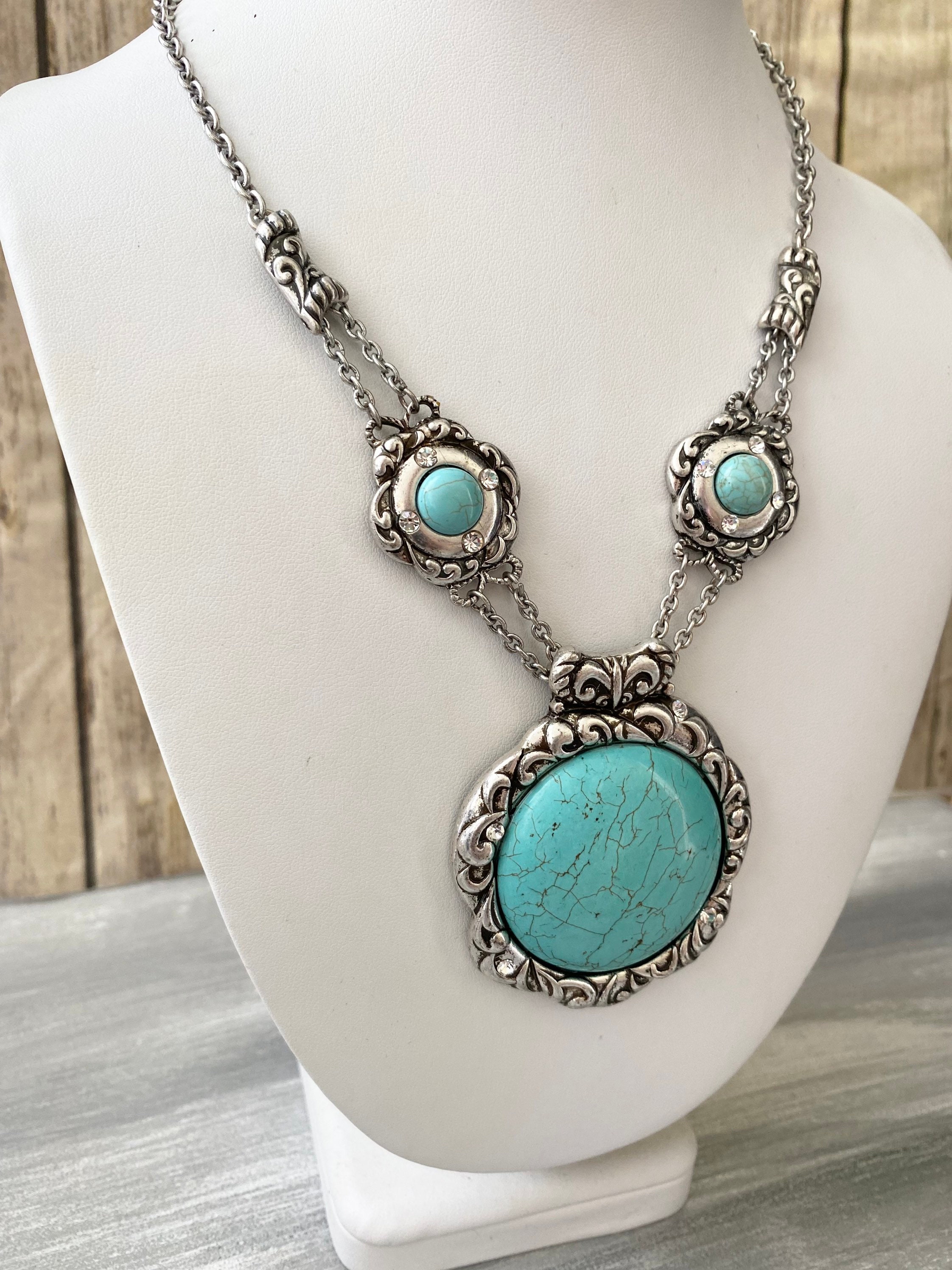 Big Bold Gemstone Pendant Chain Necklace, Turquenite Necklace, Stone Necklace, Southwestern Style Jewelry, Blue Stone Pendant