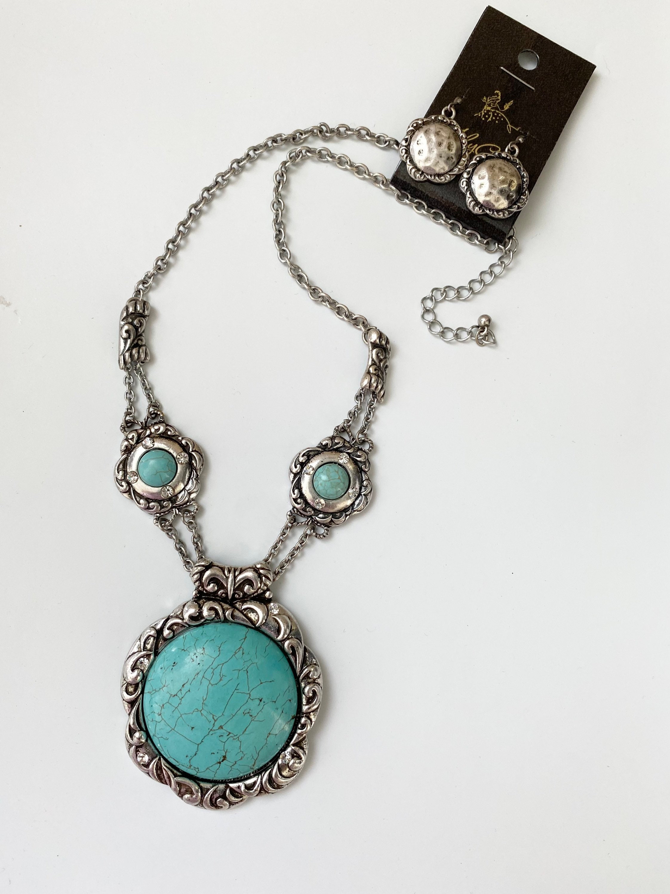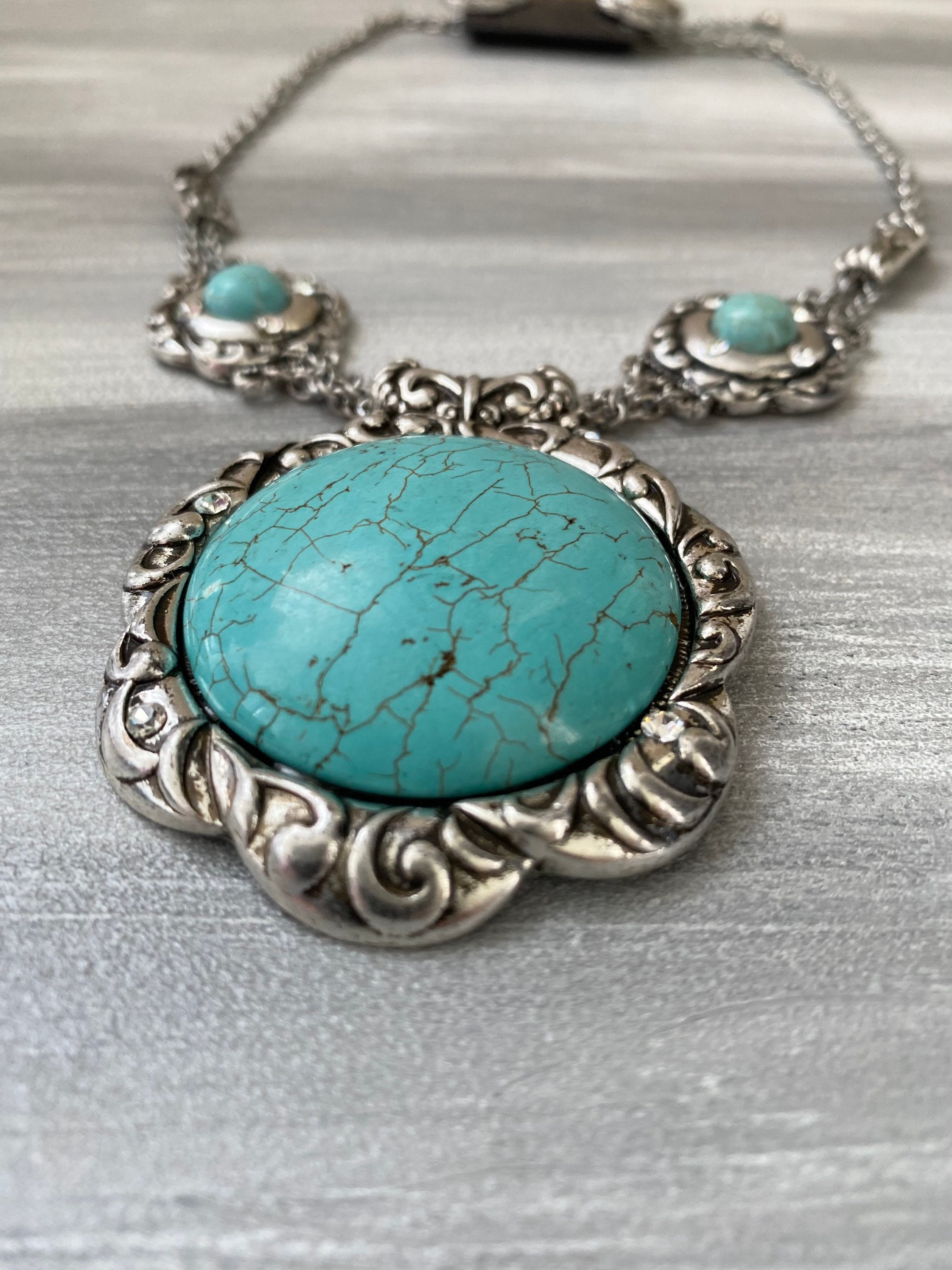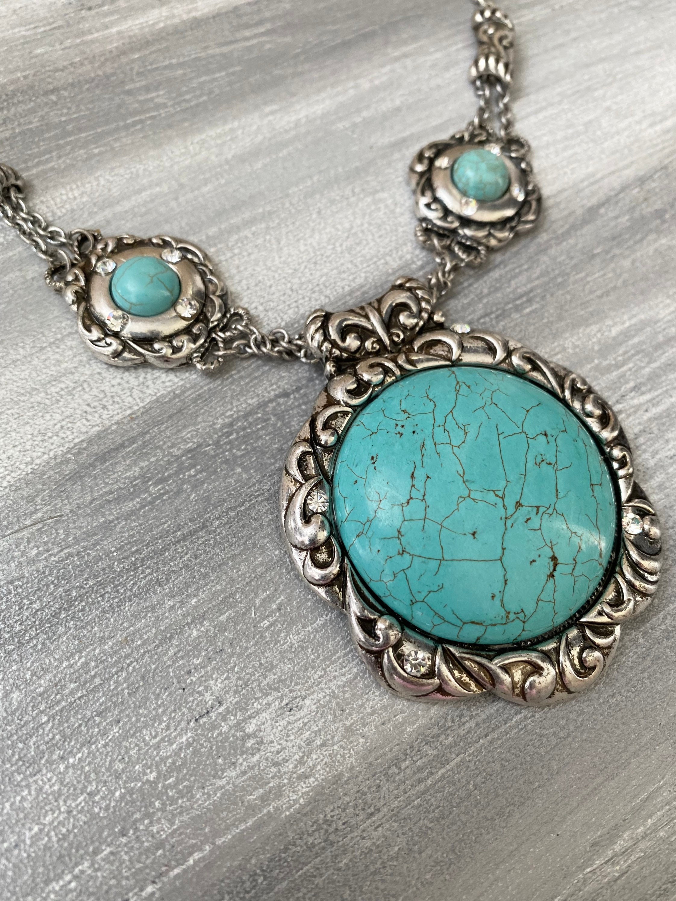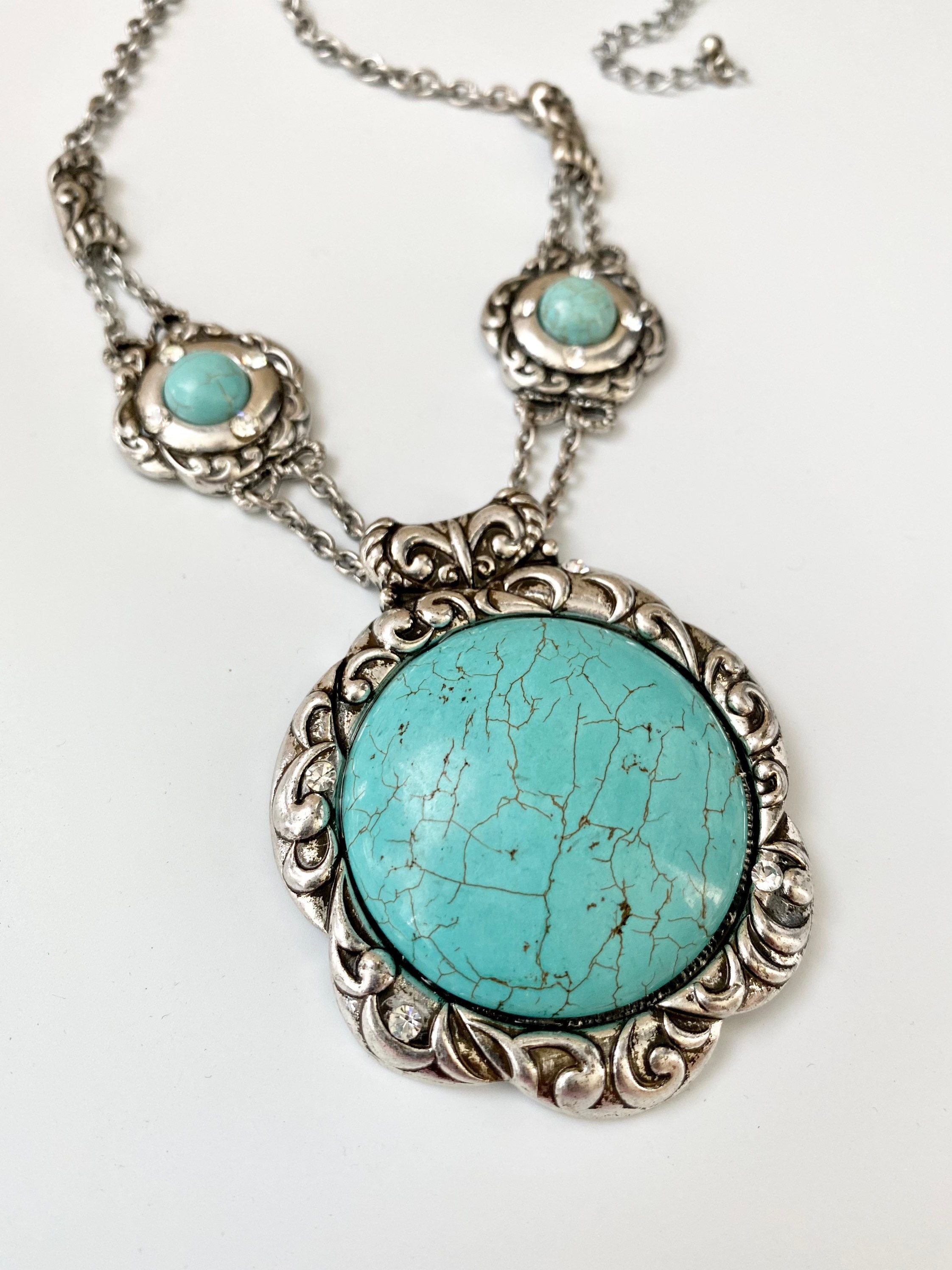Big Bold Gemstone Pendant Chain Necklace, Turquenite Necklace, Stone Necklace, Southwestern Style Jewelry, Blue Stone Pendant