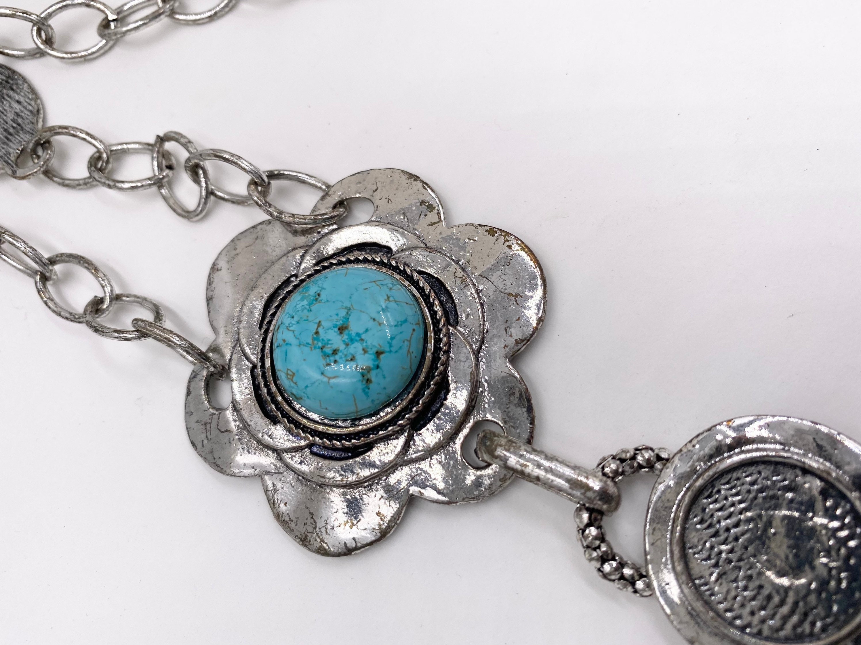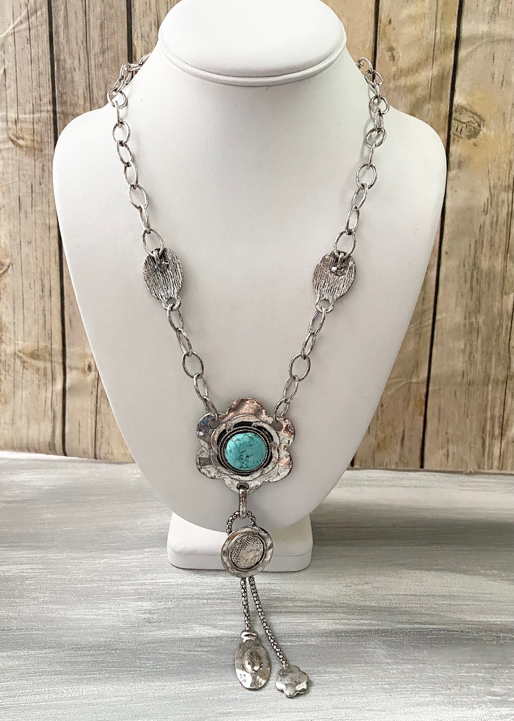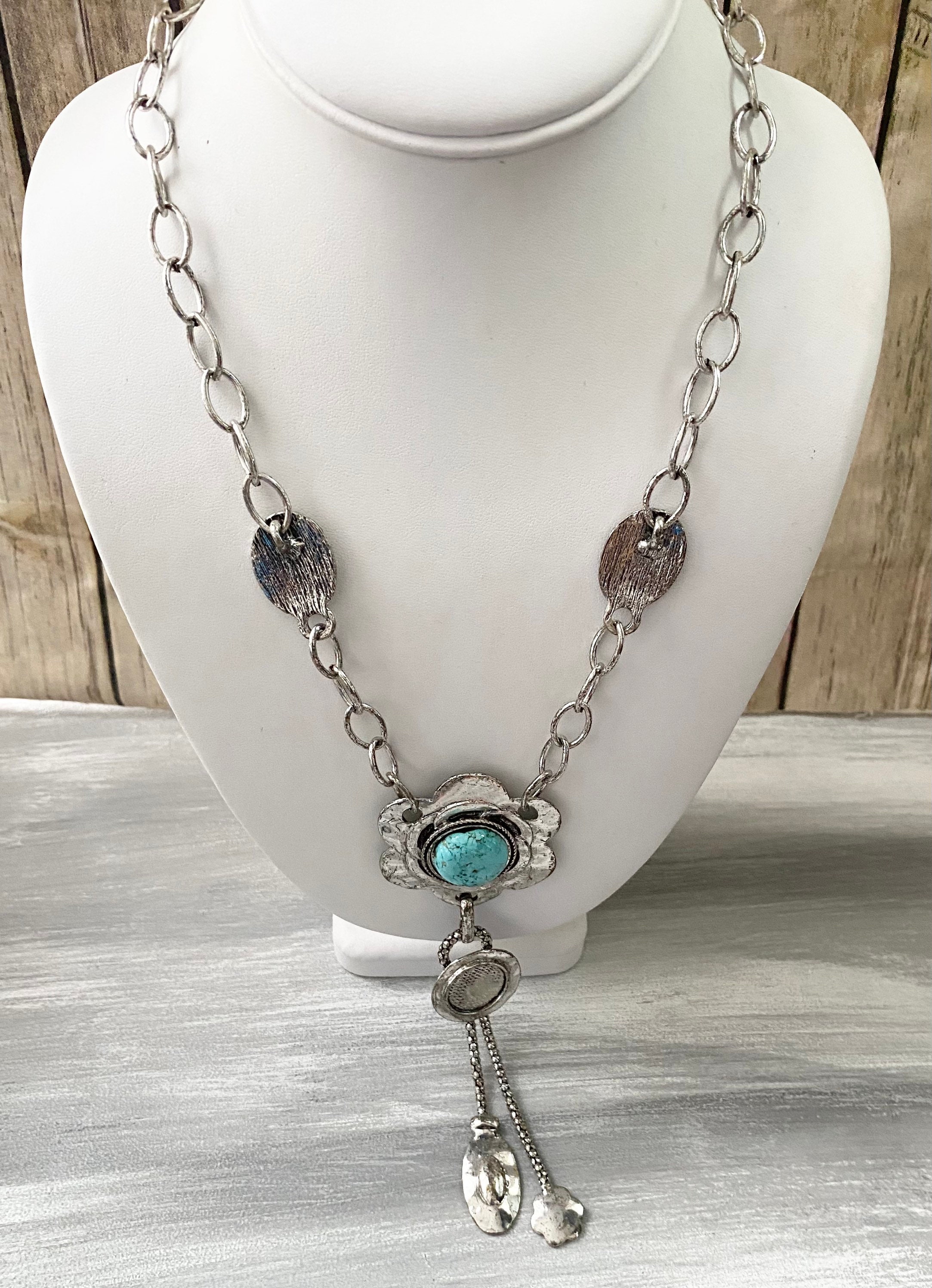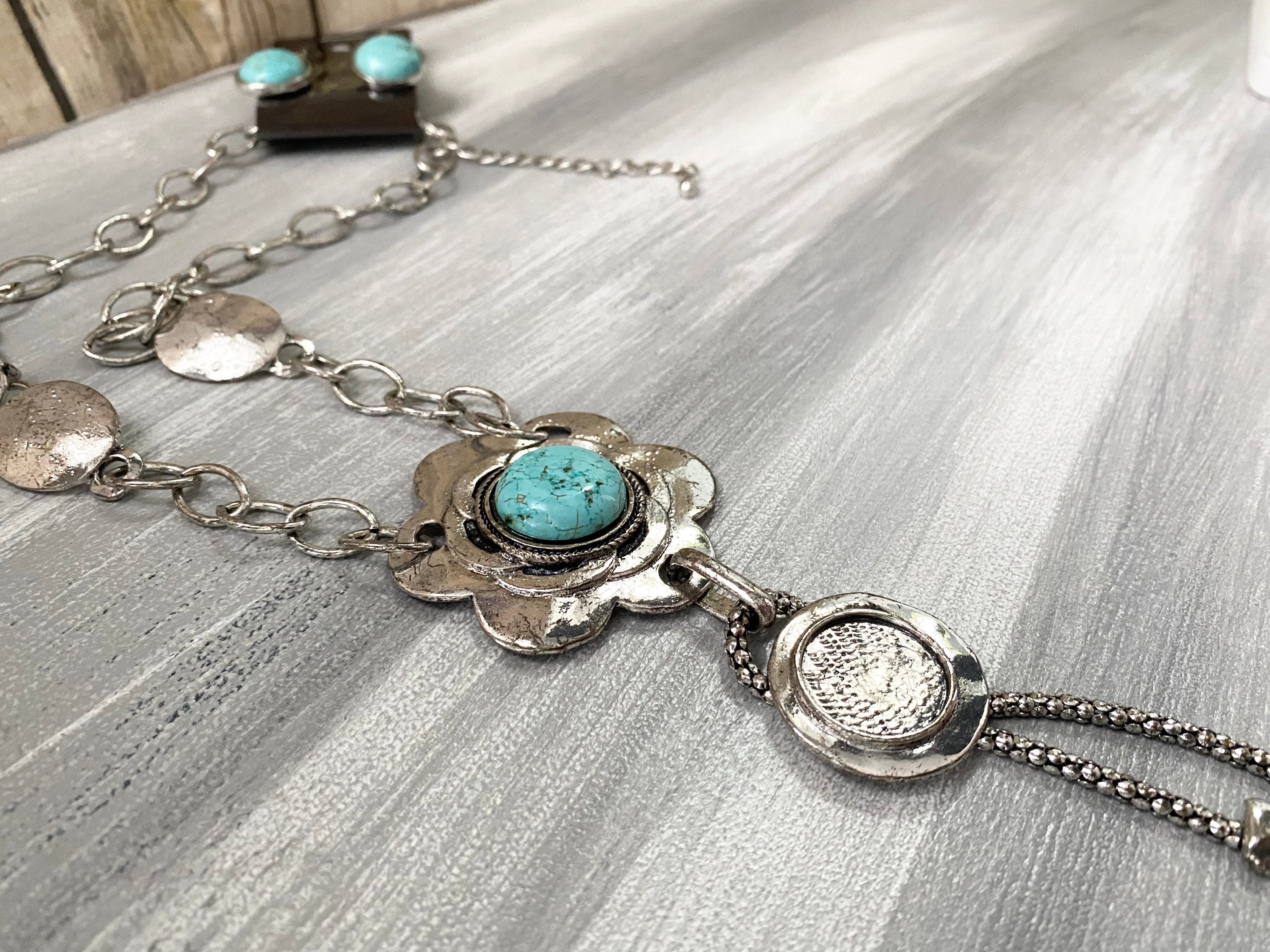 Turquenite Gemstone Pendant Chain Necklace, Turquenite Necklace, Stone Necklace, Southwestern Style Jewelry, Blue Stone Pendant