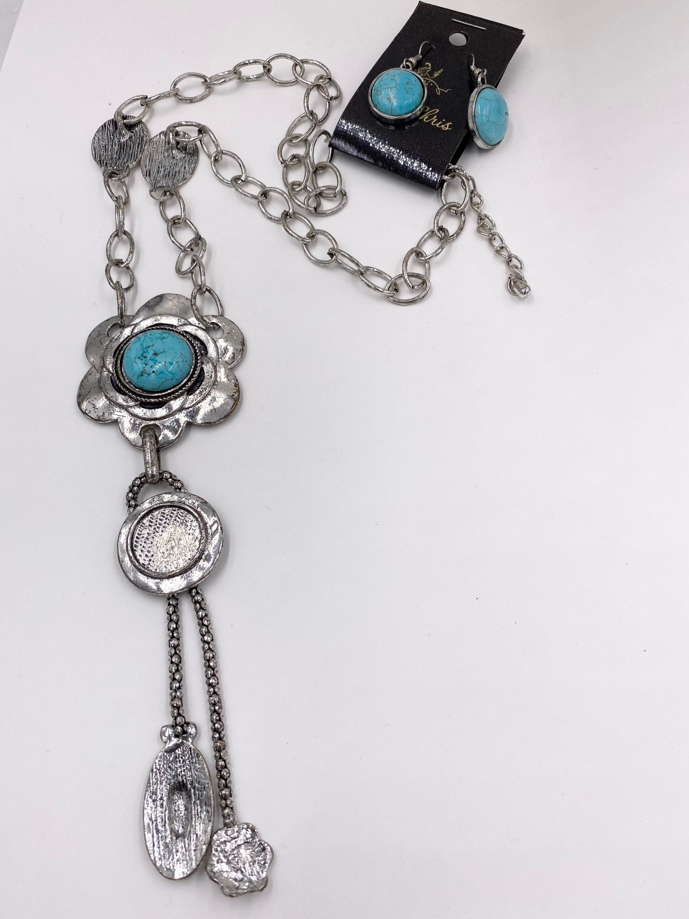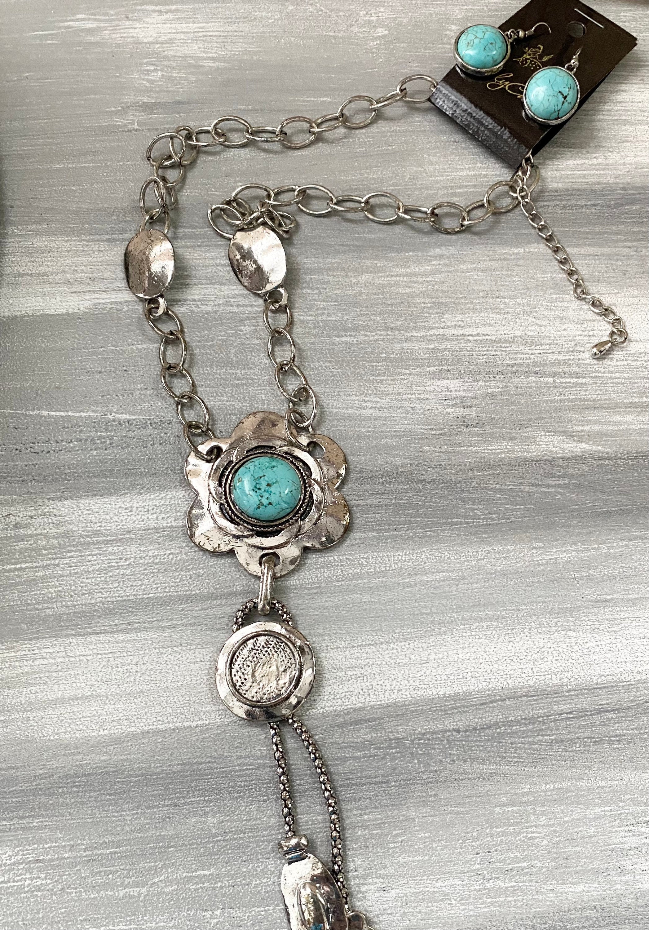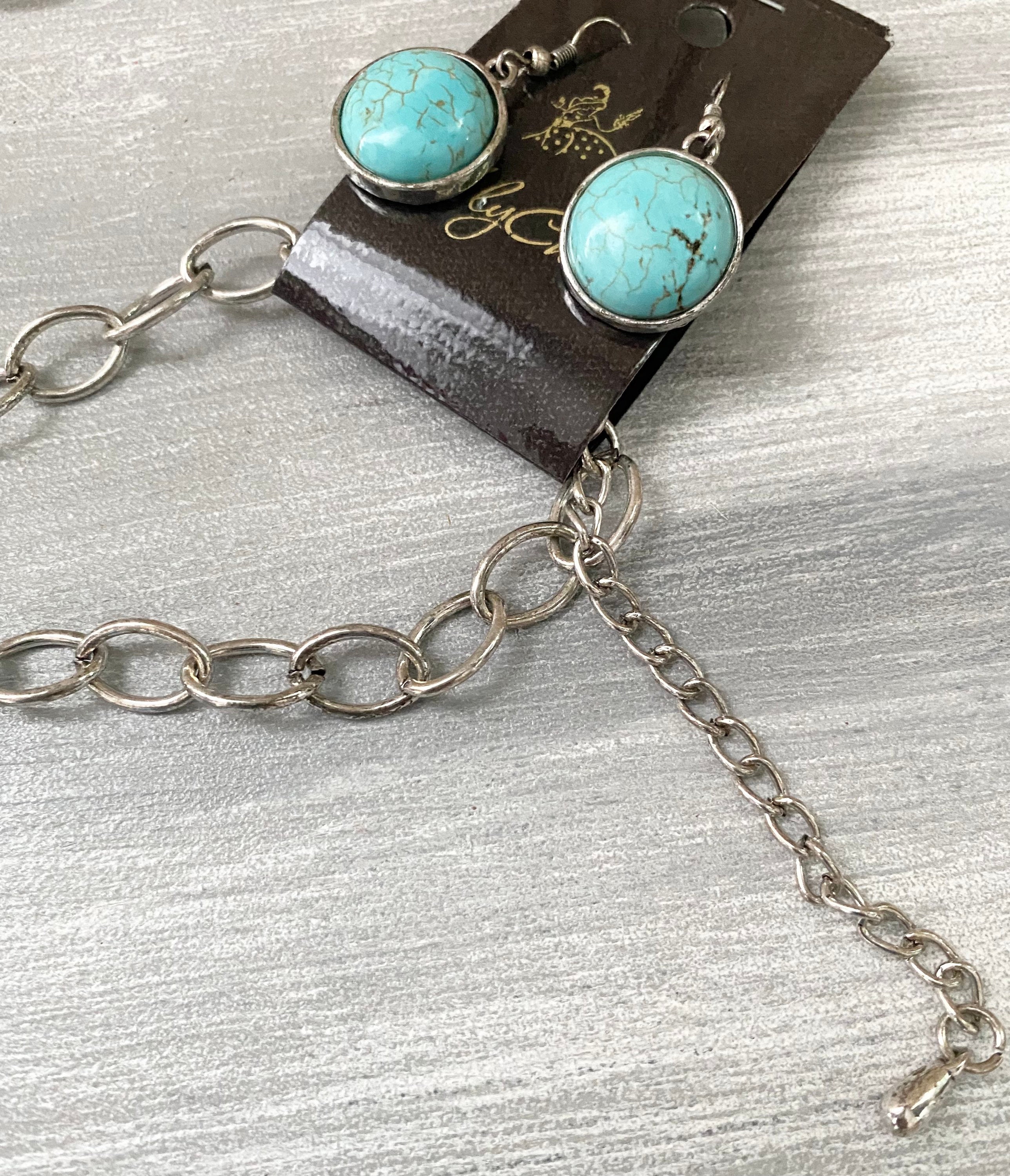 Turquenite Stone Pendant Necklace with matching earrings