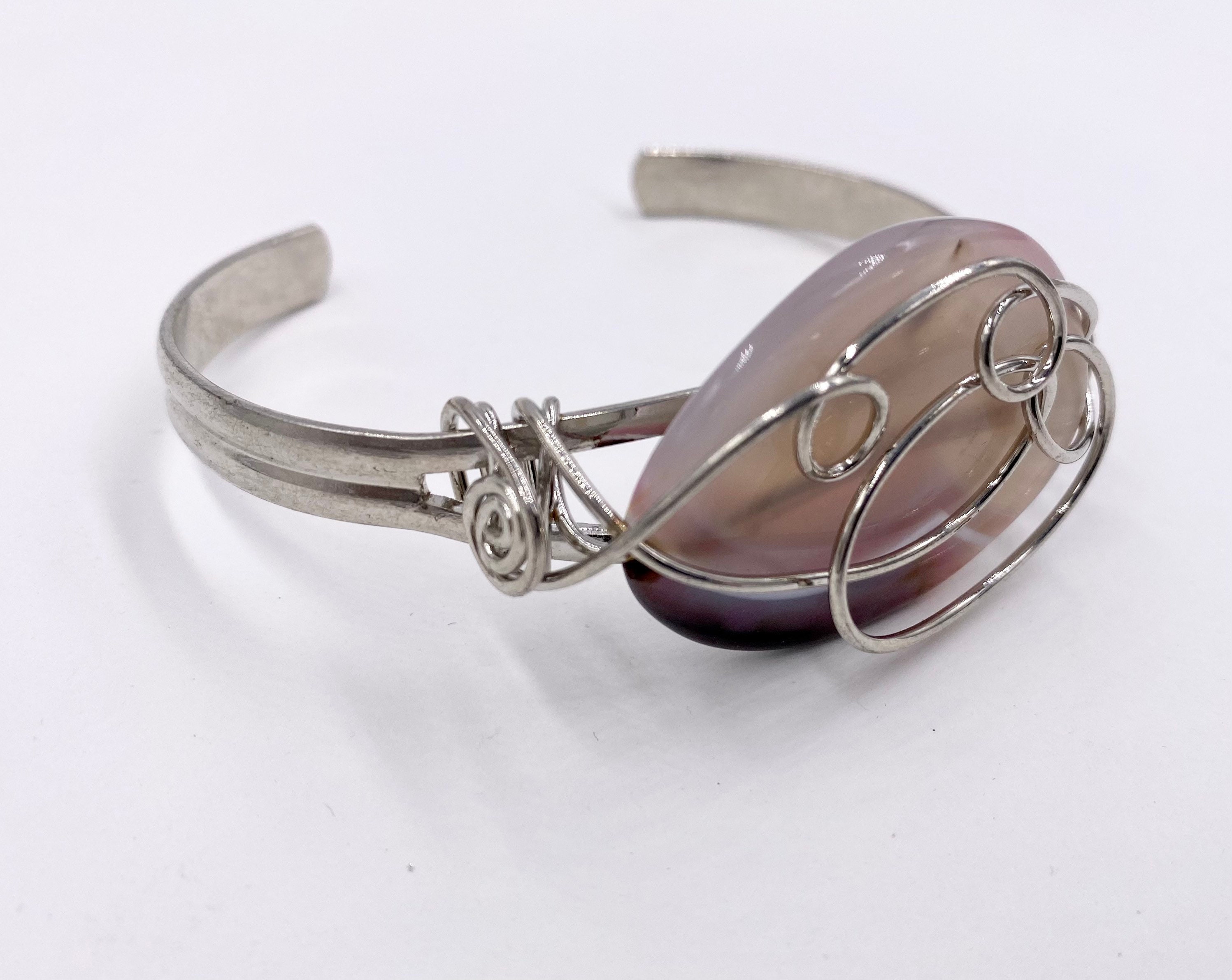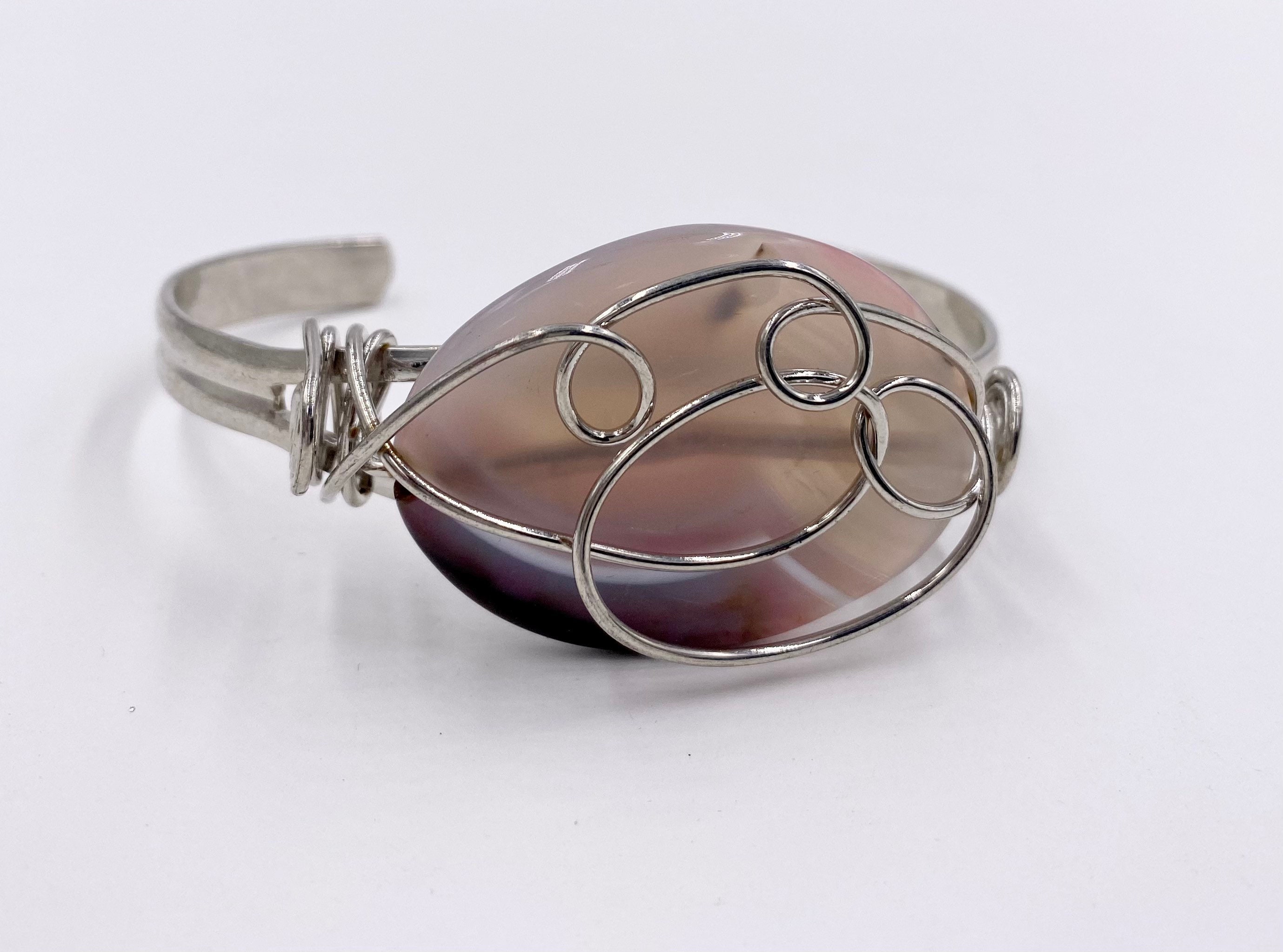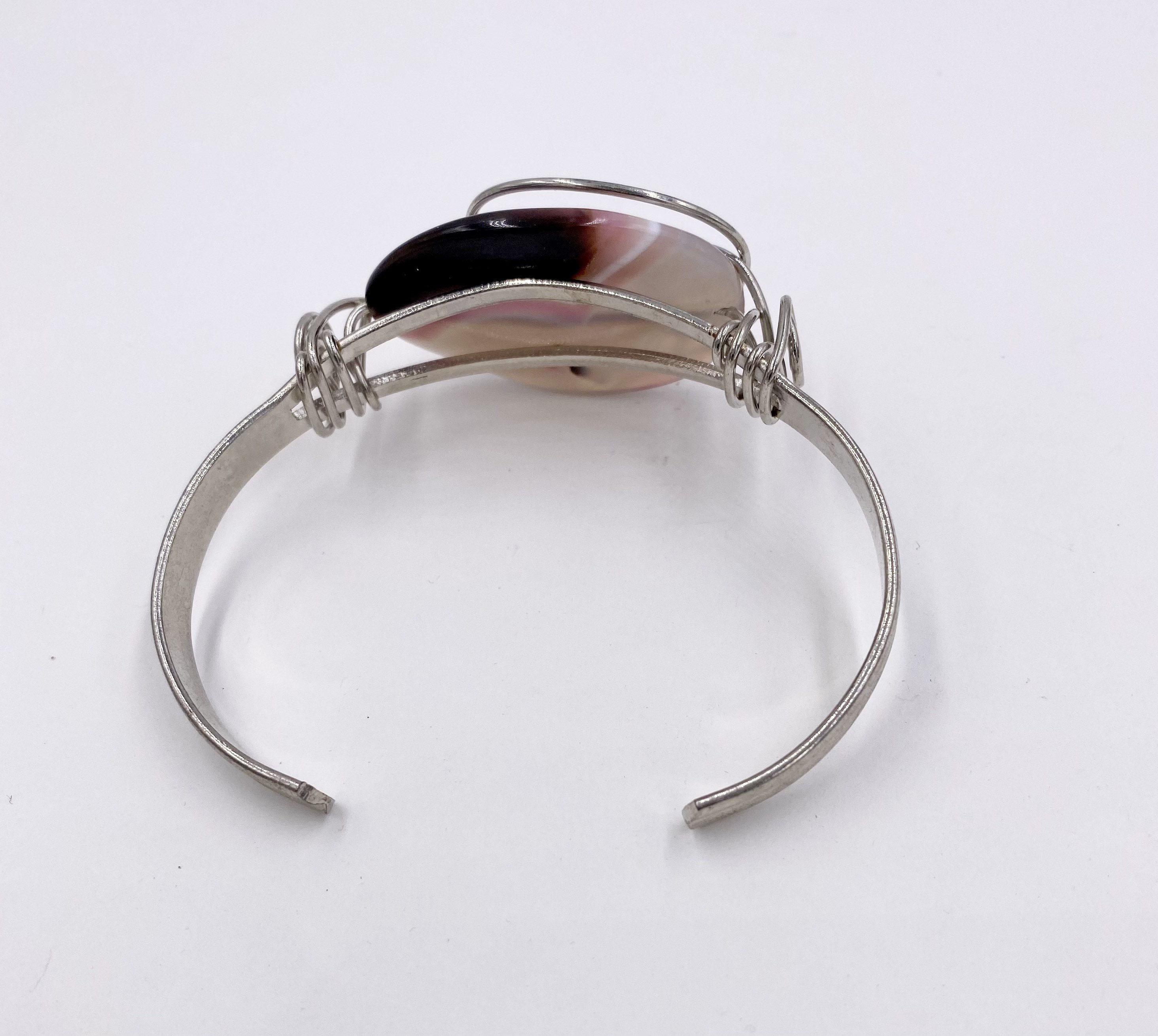 Wire Wrapped Agate Cabochon Cuff Bracelet