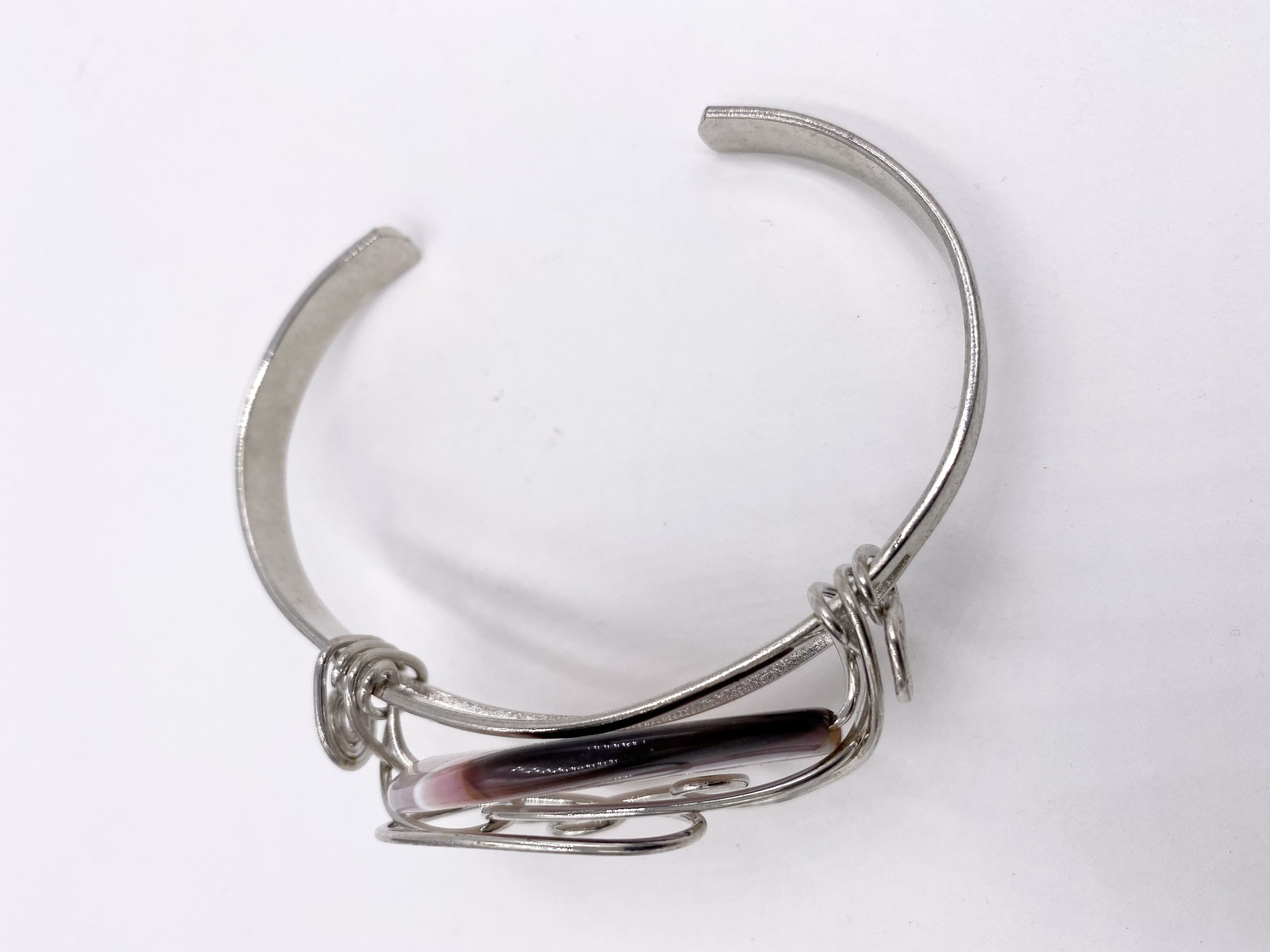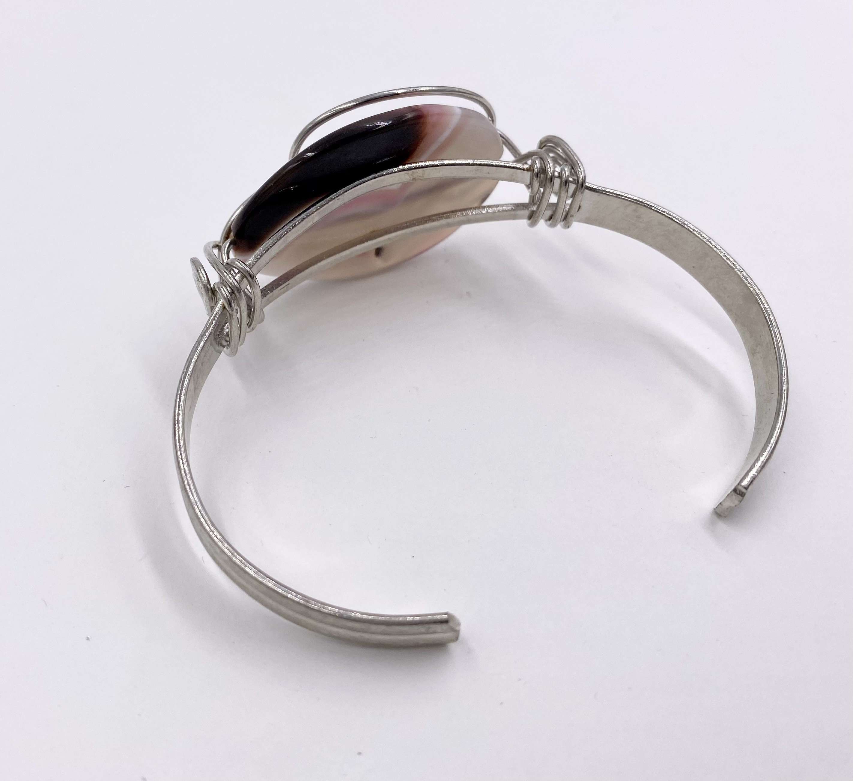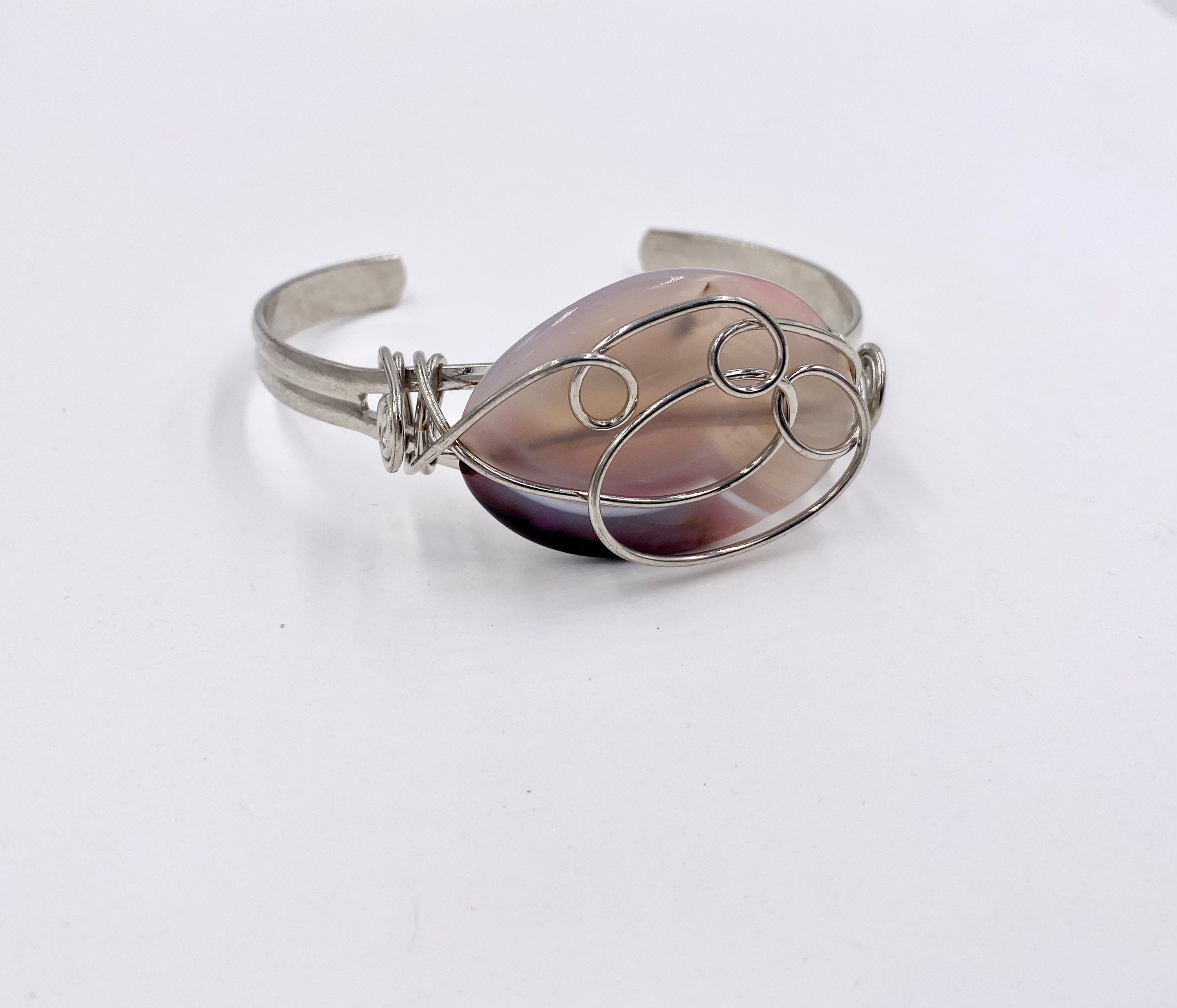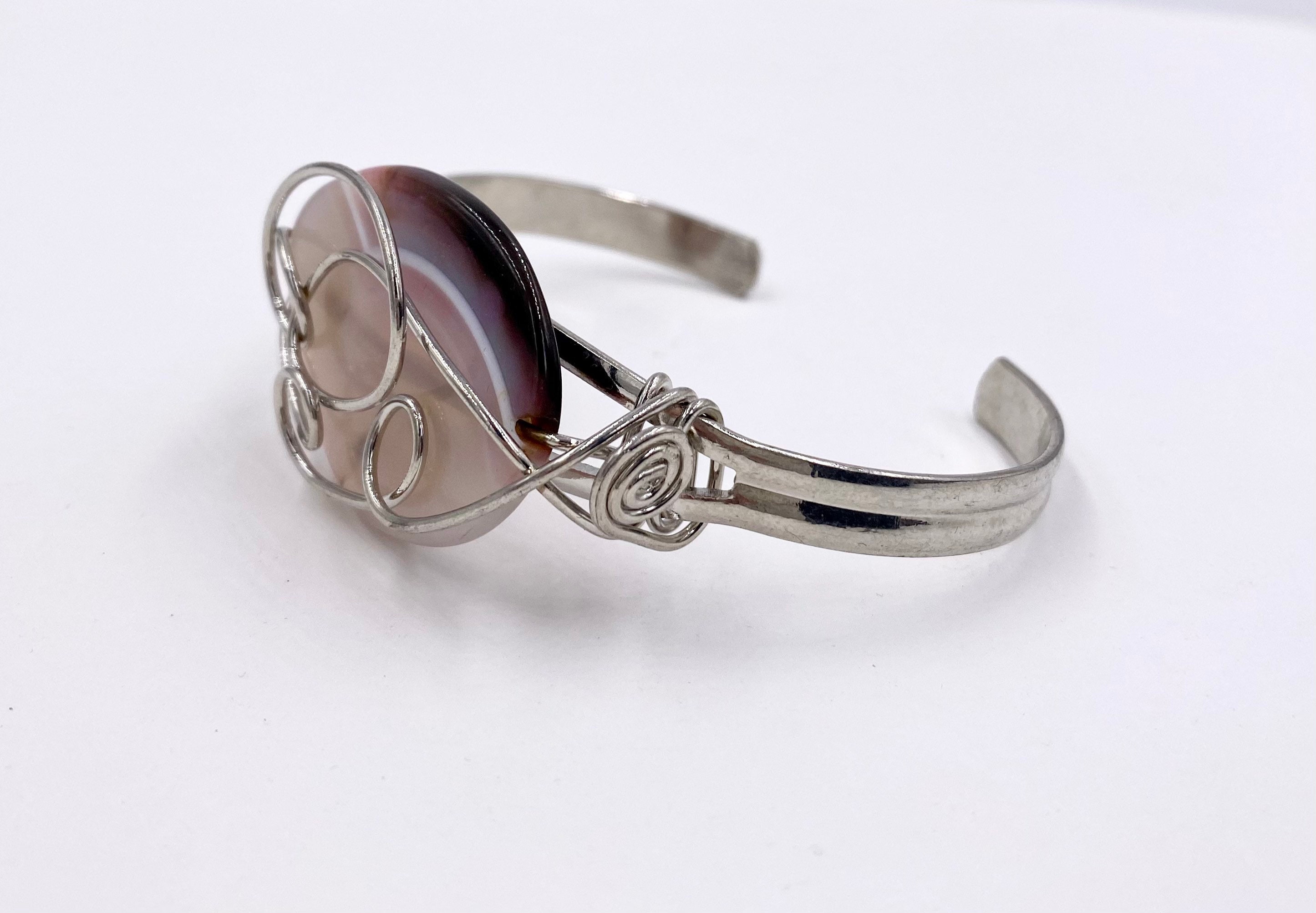 Wire Wrapped Agate Cabochon Cuff Bracelet