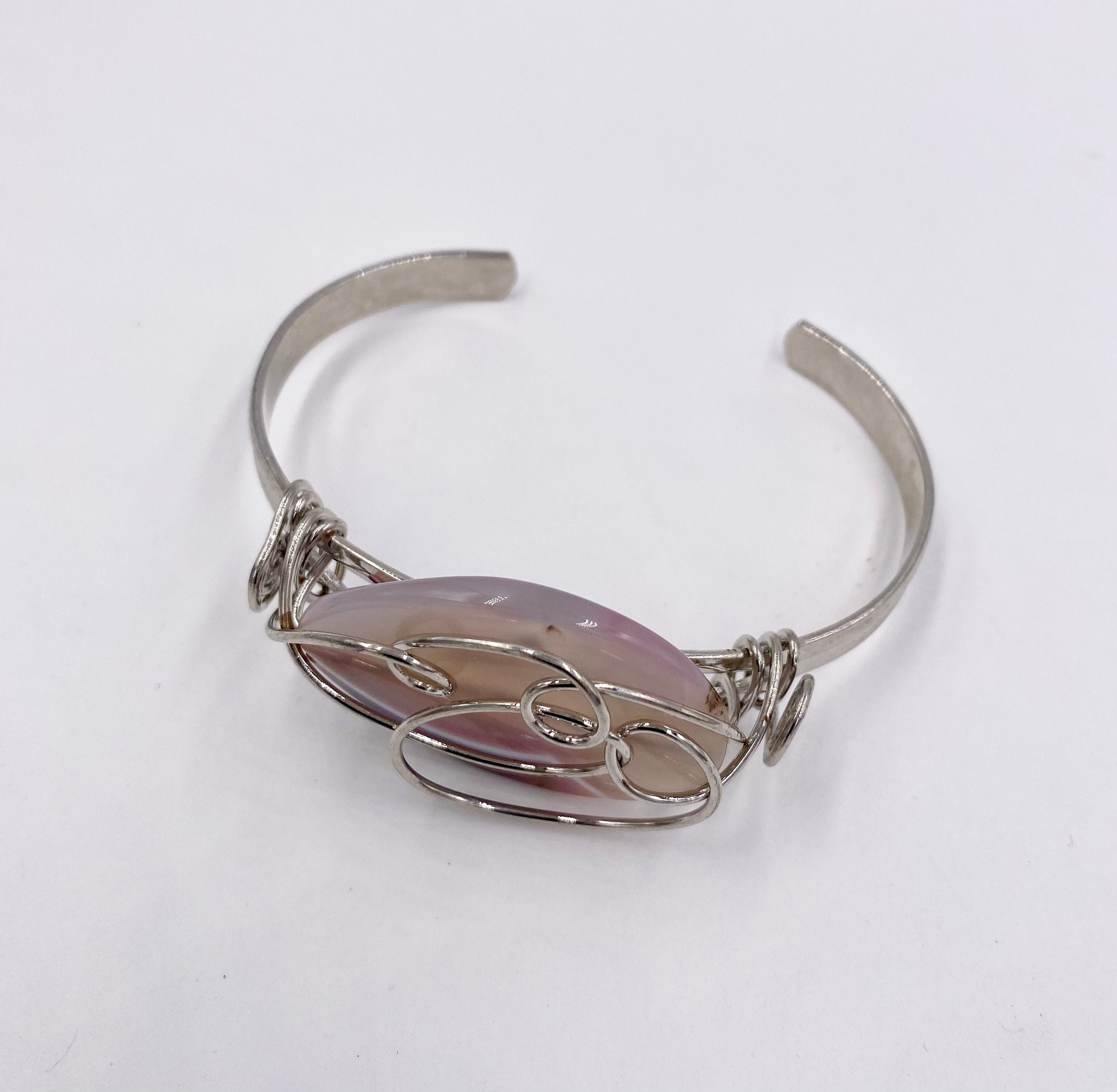 Agate Wire Wrapped Cuff Bracelet, Gemstone Wire Wrapped Jewelry, Pink Agate Bracelet, Statement Jewelry
