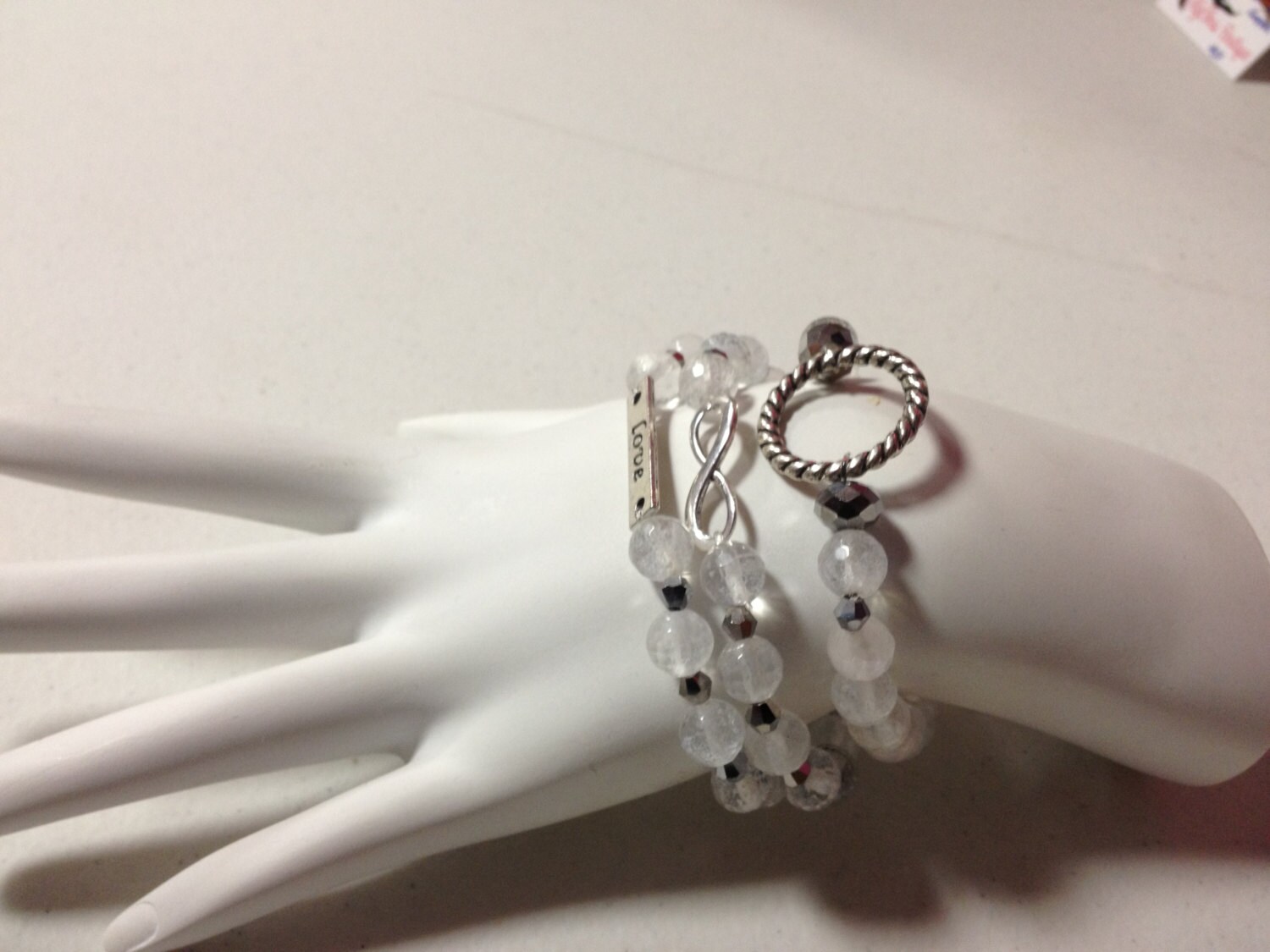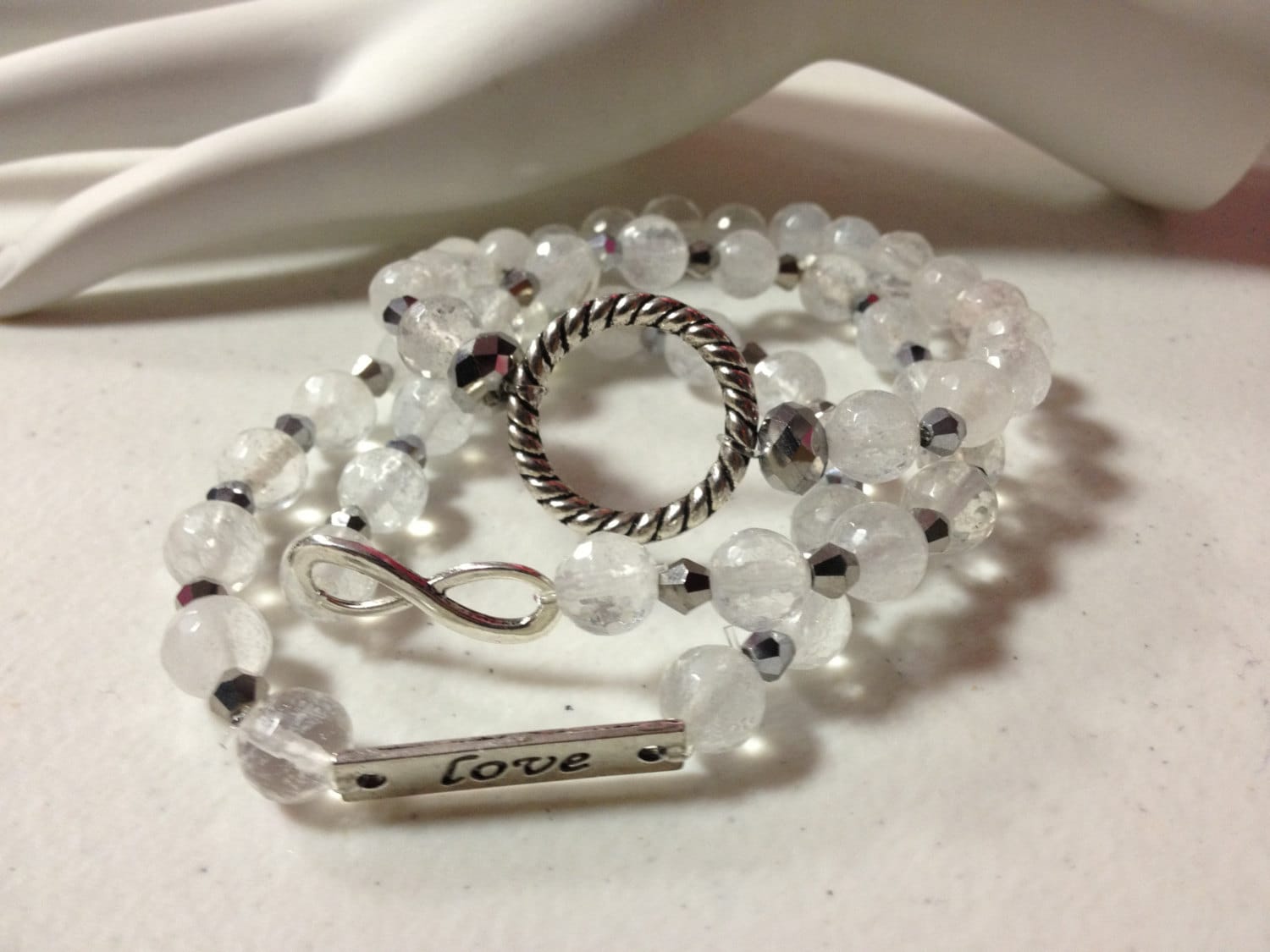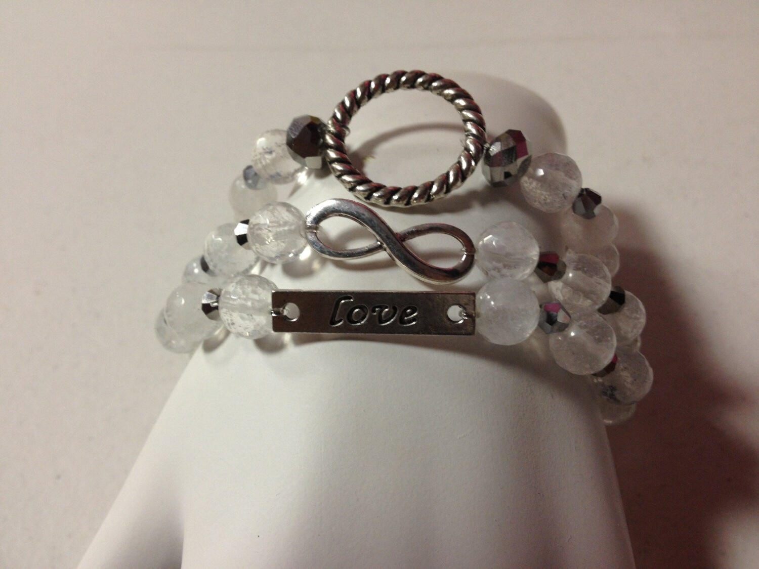 Love,Infinity, Karma Faceted Glass Bead Bracelet Set; karma bracelet. infinity charm, gifts for her, crystals, Stamped jewelry