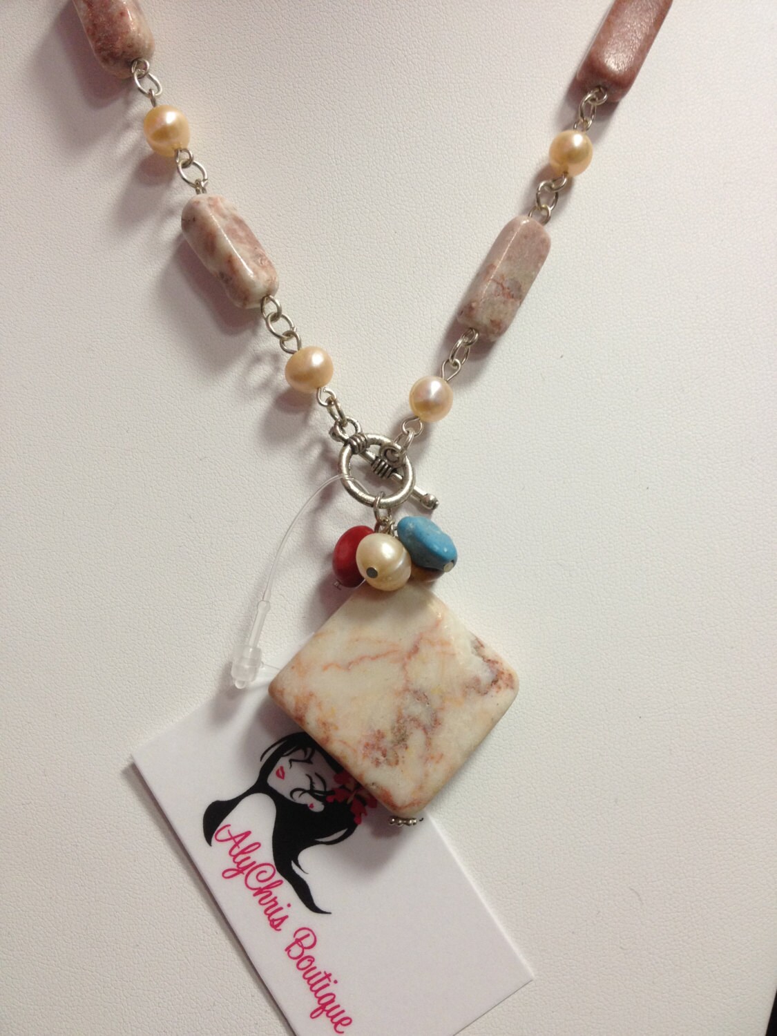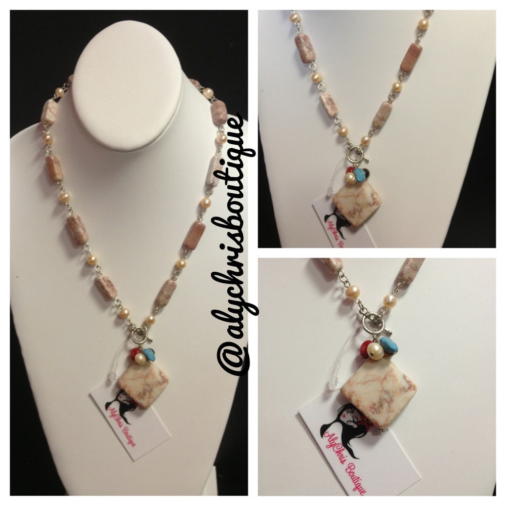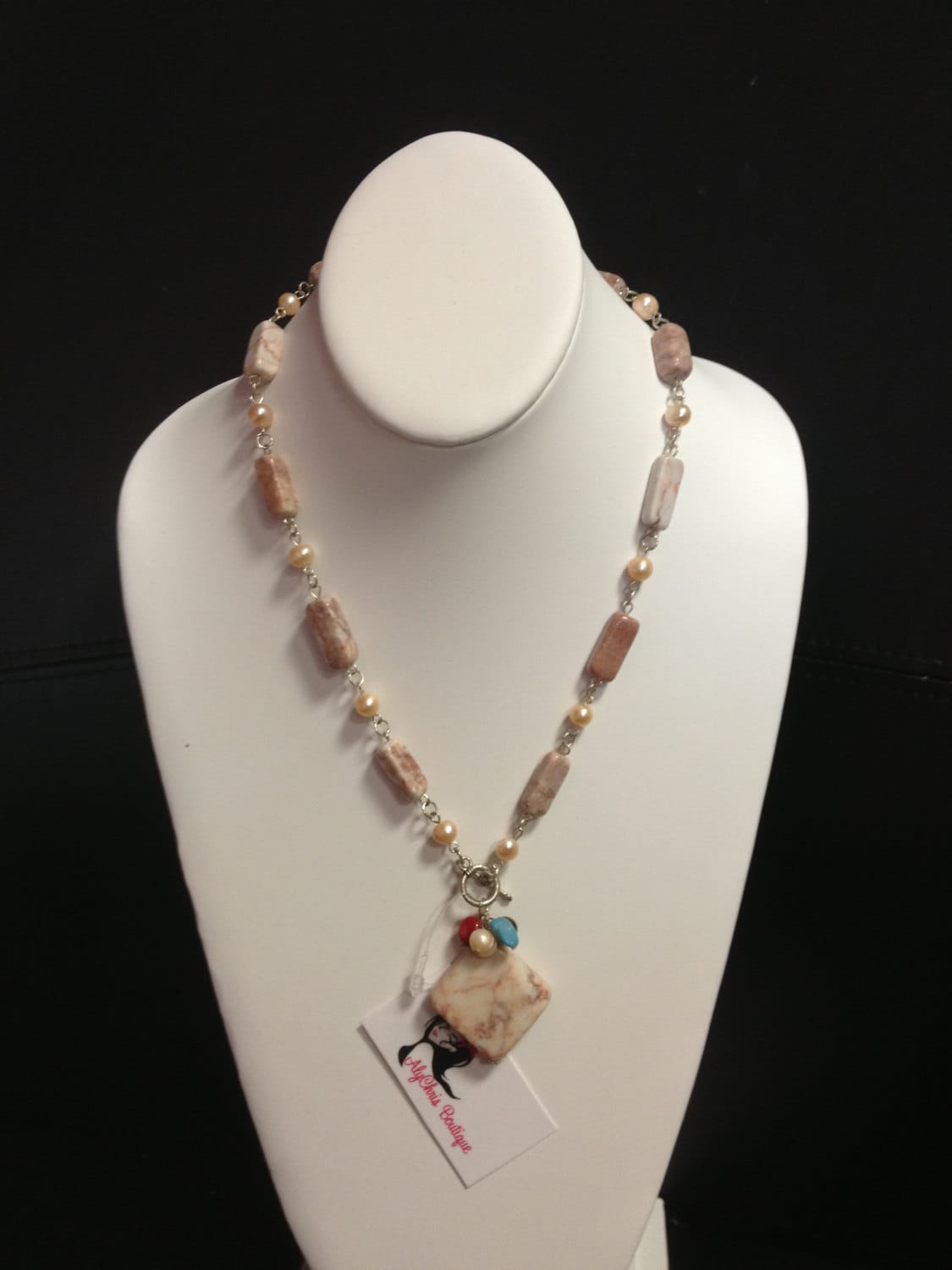 C.Freshwater Pearl & Jasper Necklace, Beaded necklace, Boho Jewelry, Jasper Pendant Necklace, Earthy Jewelry, Stone Necklace, Reiki,