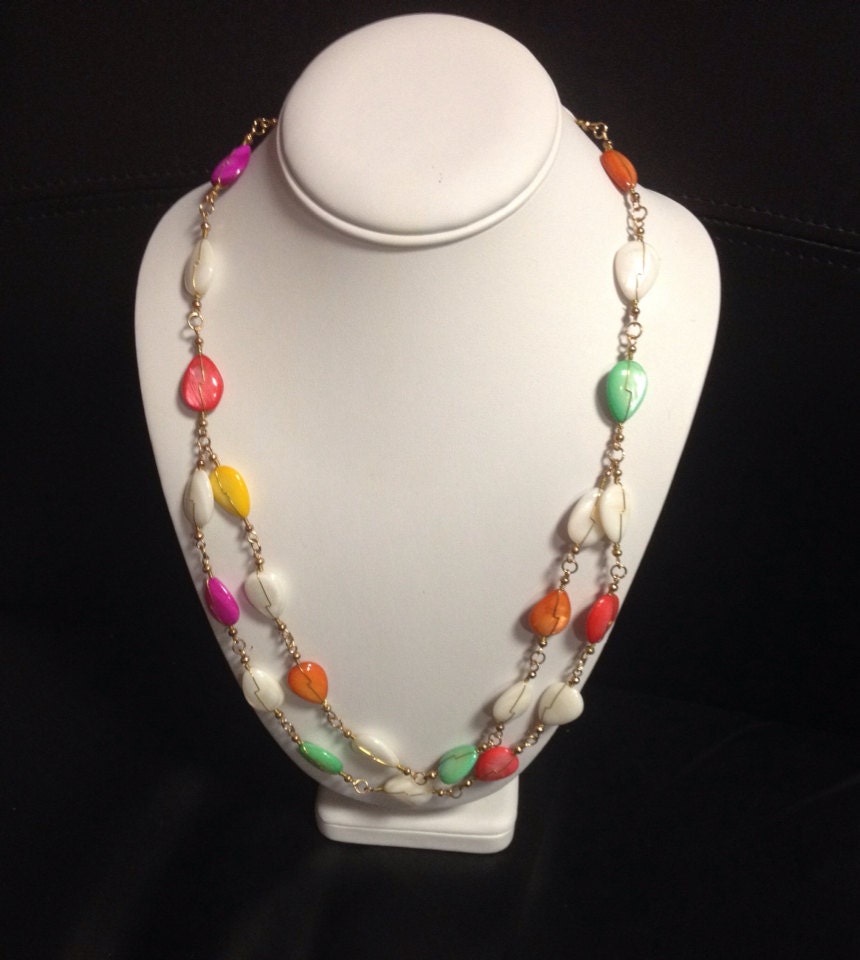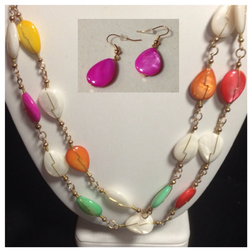 Multi Color Mother of Pearl Shell Tear Drop Beads Layered Necklace & Earring Set