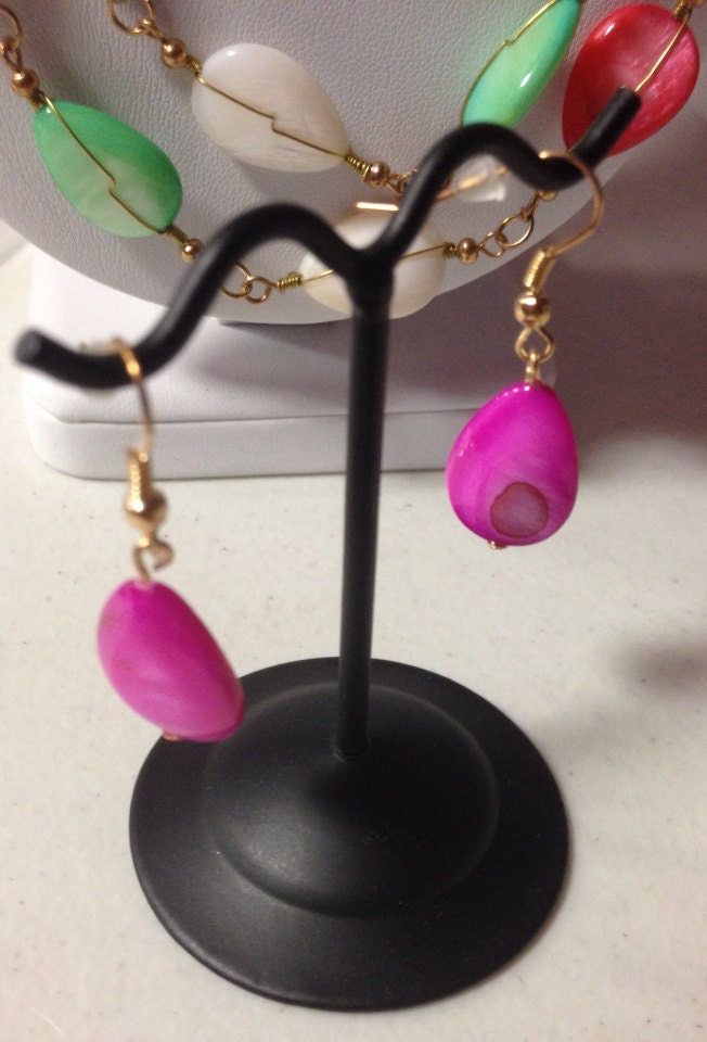 Shell Necklace, Multi Color Mother of Pearl Shell Layered Necklace & Earring Set, Shell jewelry, Beach Necklace, Layered Necklace