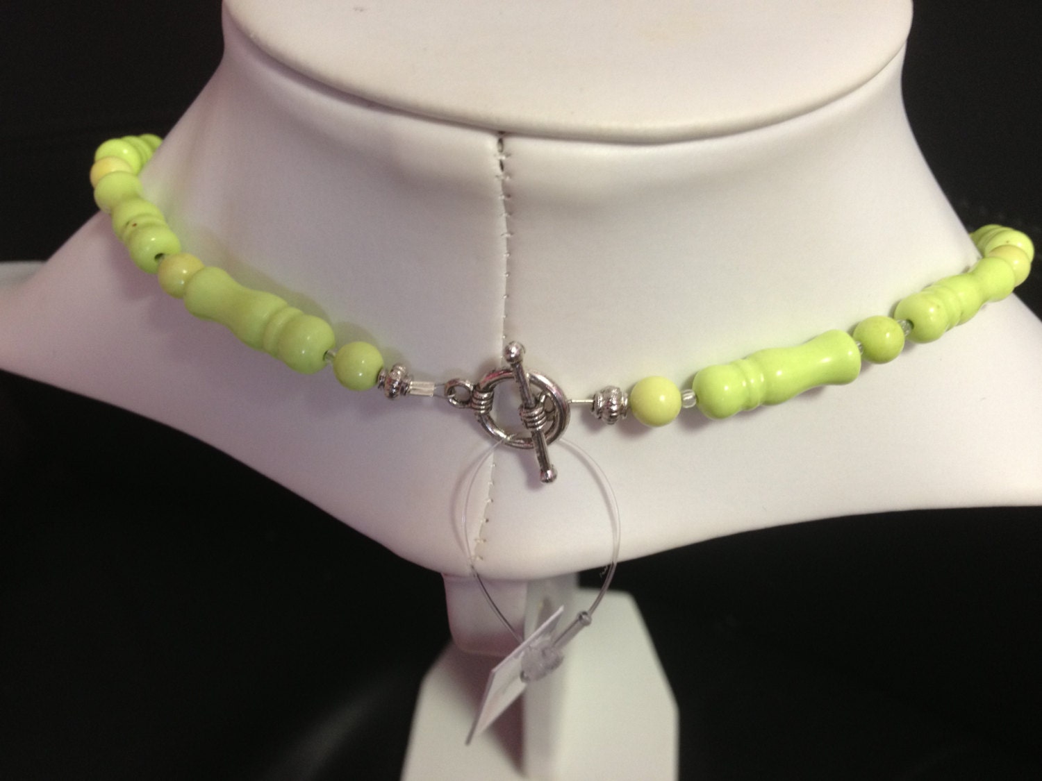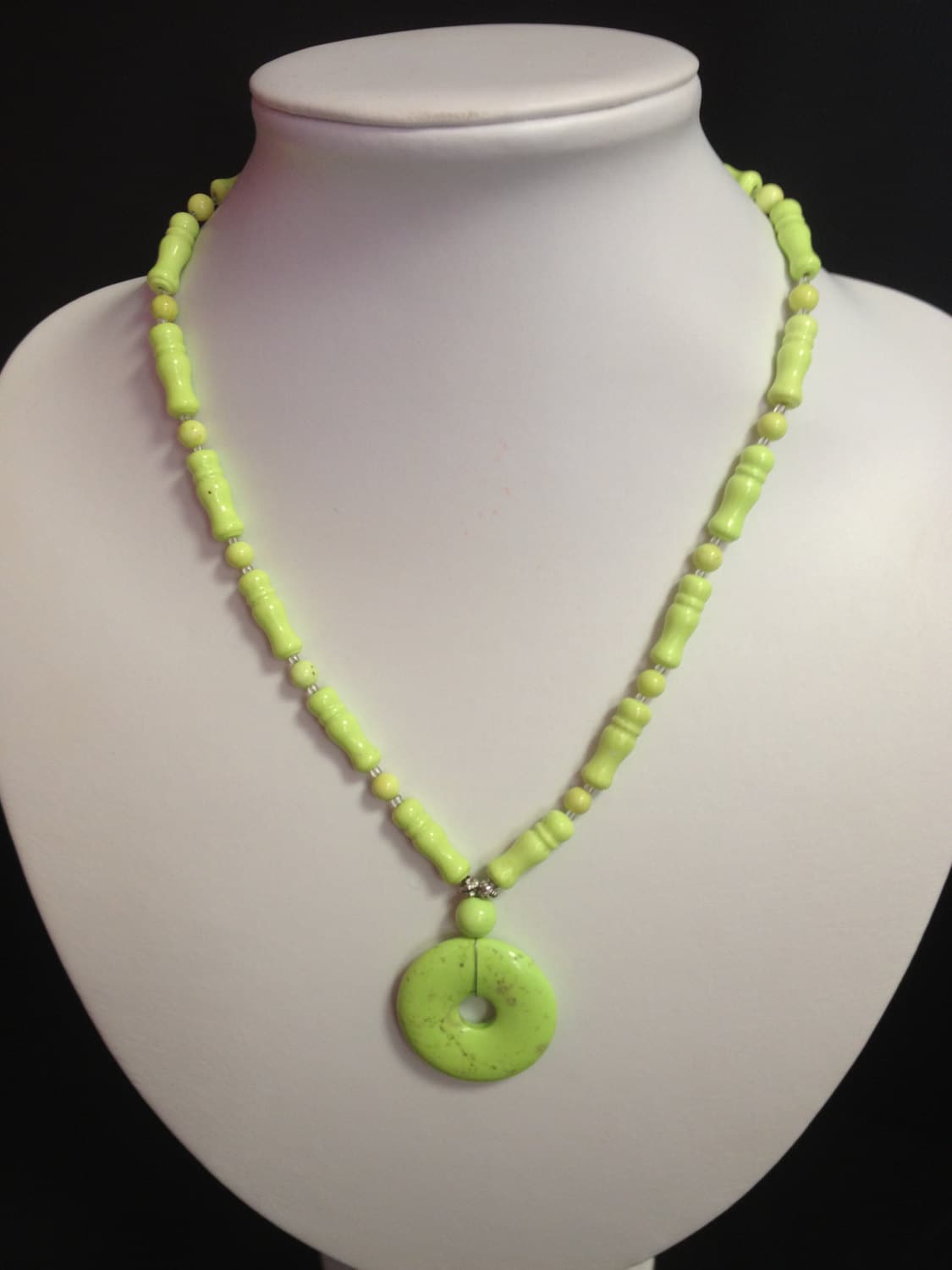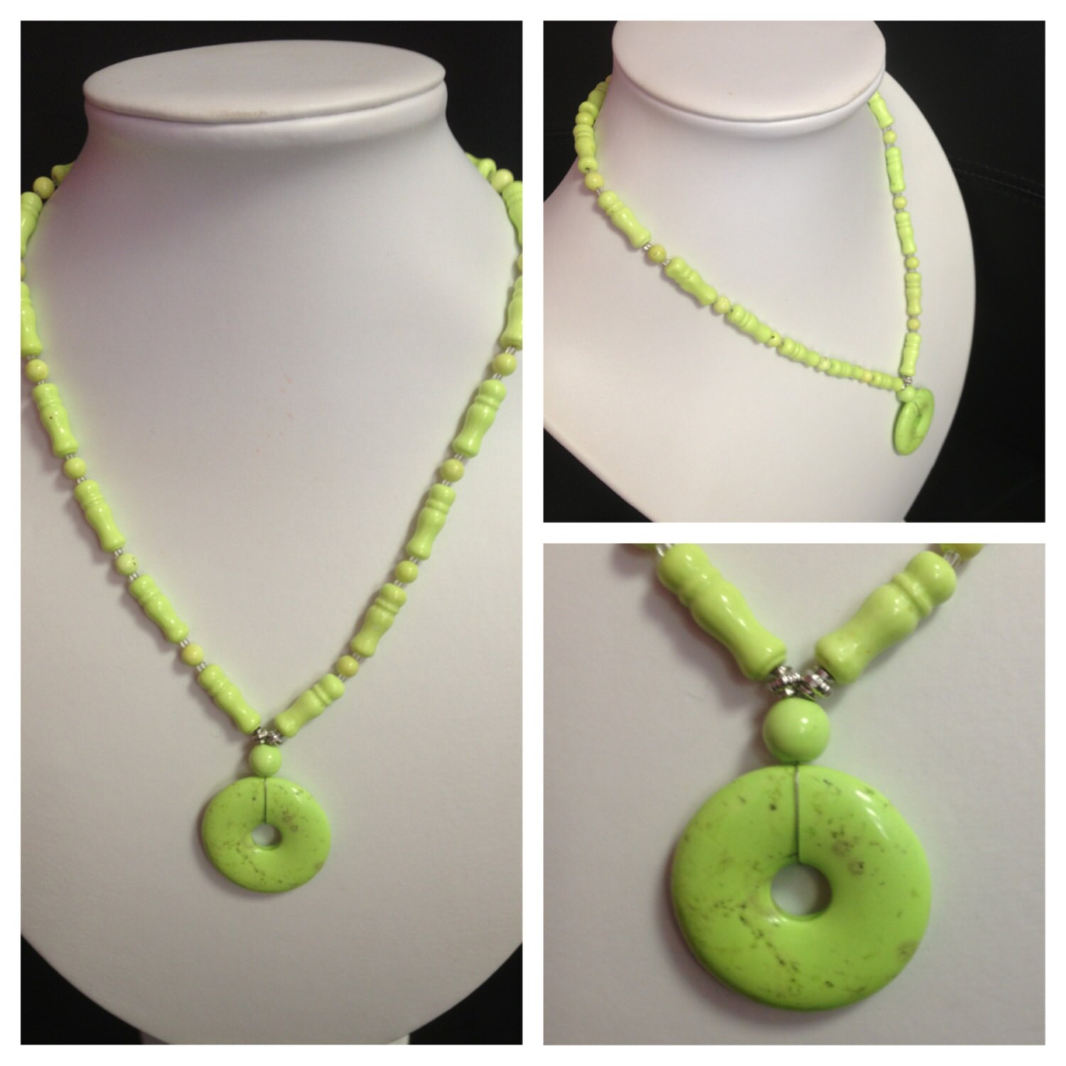 Dyed Magnesite Gemstone Pendant Necklace; sale, gifts, lime green necklace, Beaded necklace