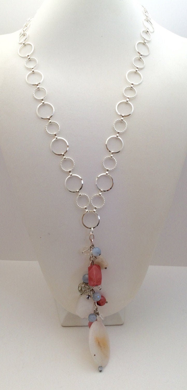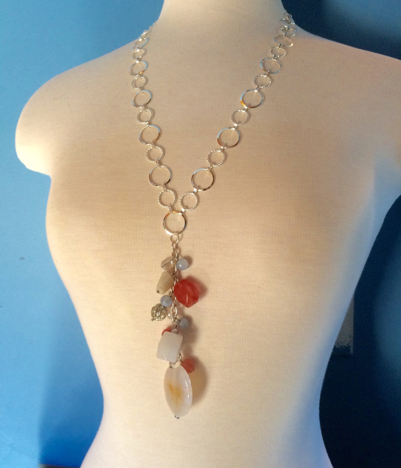 Mixed Gemstone Necklace, Long Necklace, Moonstone Pendant, Agate Pendant, Moonstone Necklace, Moonstone Jewelry, Gemstone Beaded Necklace