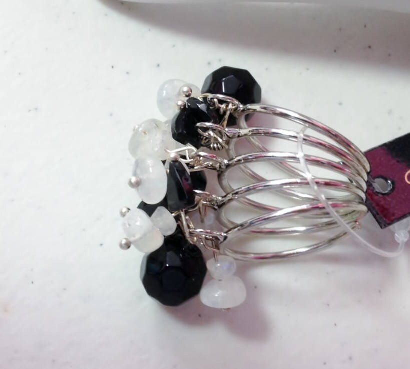 Moonstone and Black Onyx Gemstone Beaded Dangle Ring
