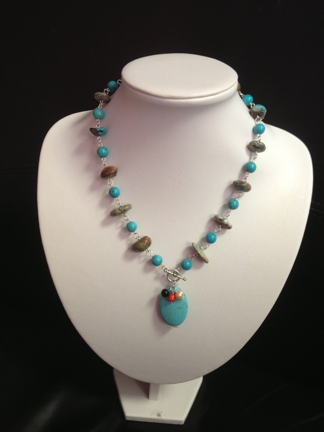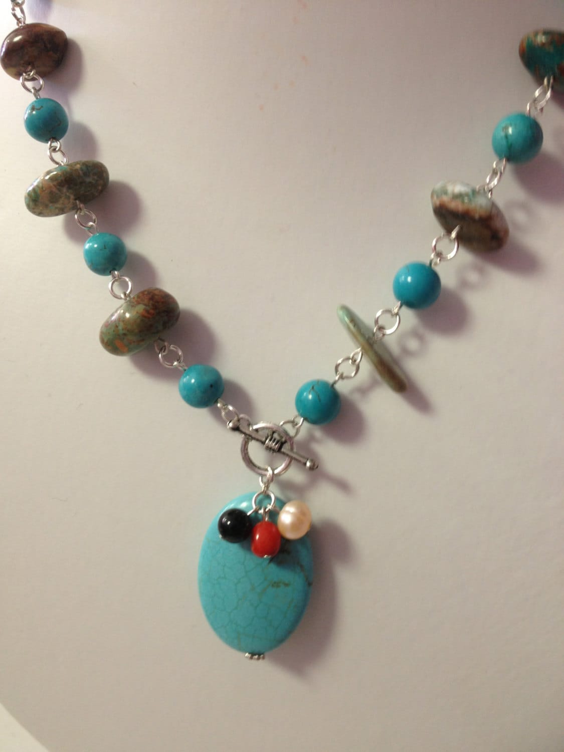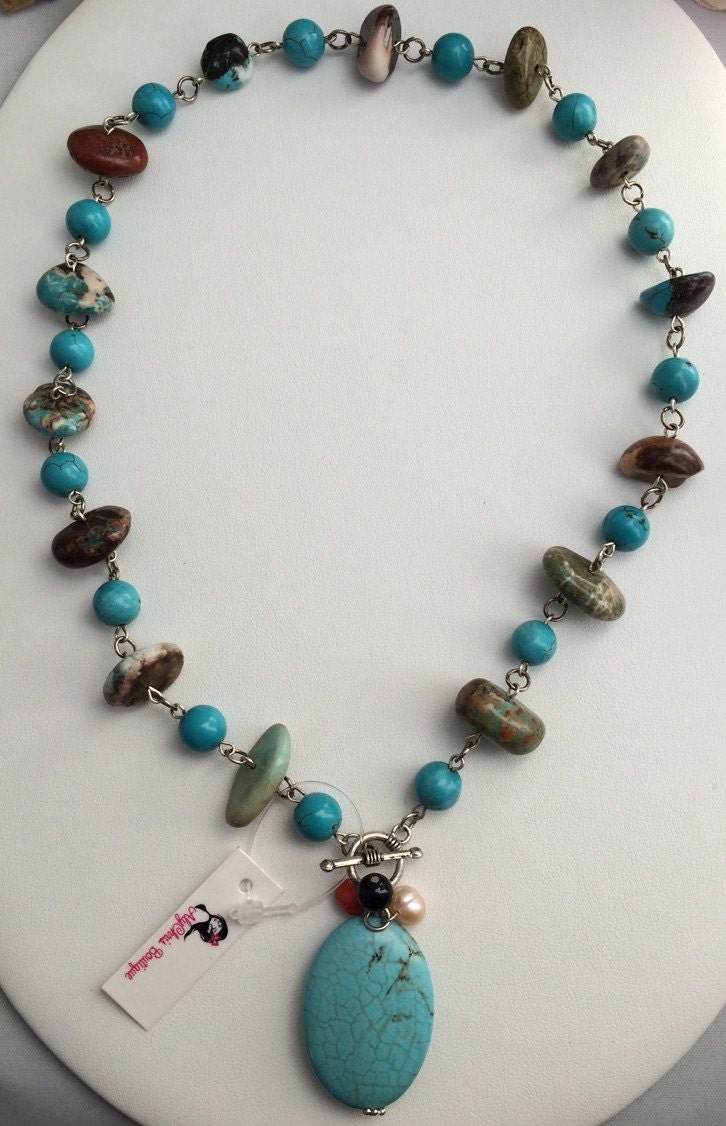 Turquenite Nugget Pendant Necklace; turquoise necklace, turquoise pendant, stone jewelry, blue stone jewelry, mixed gemstone necklace