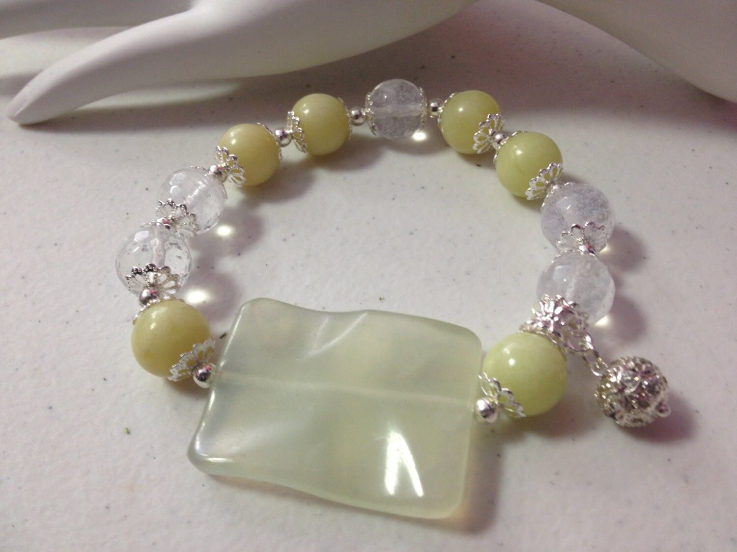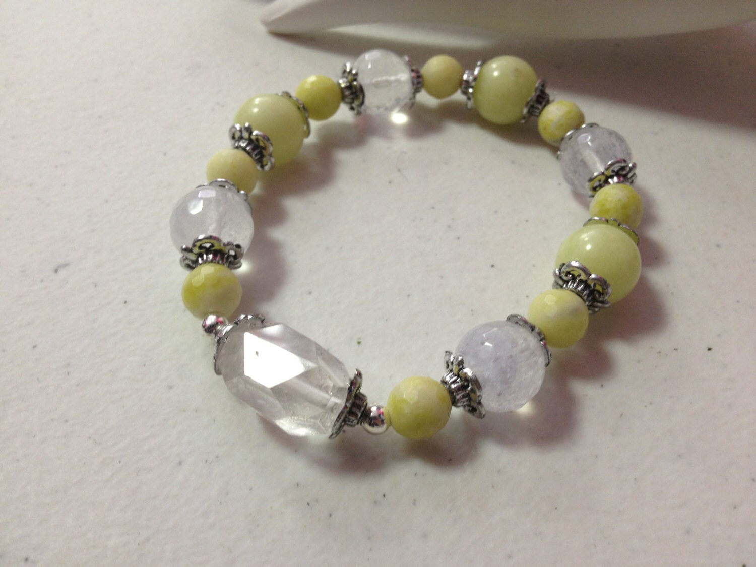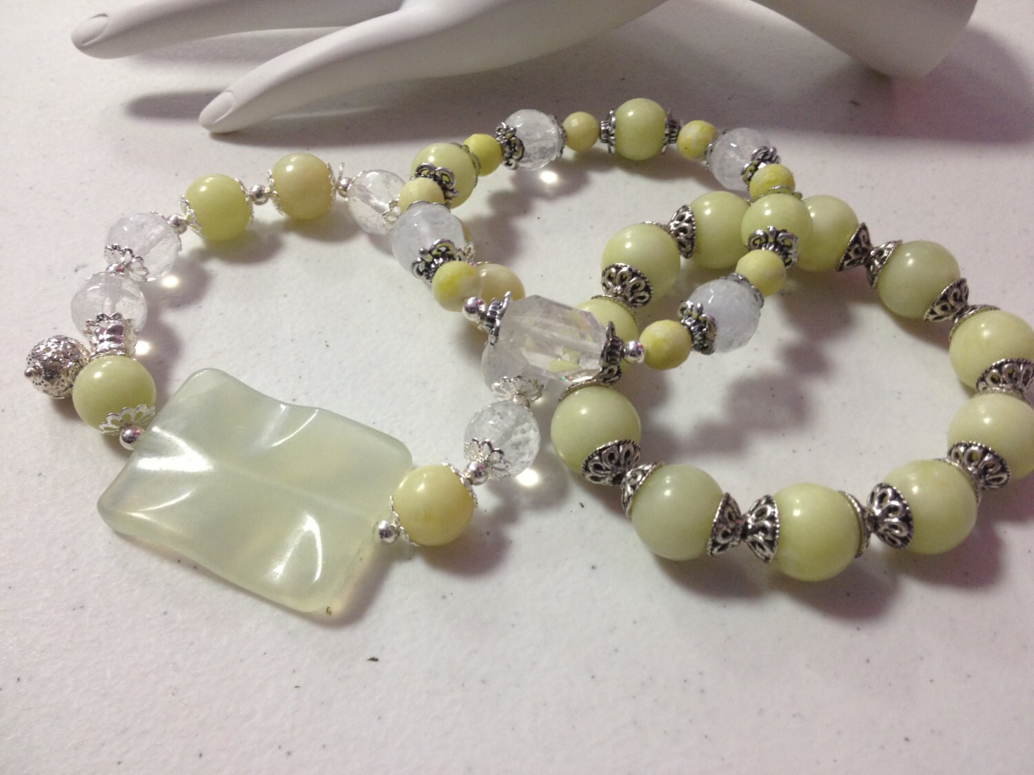 Lemon Jade, New Jade & Crystal Gemstone Bead Bracelet; jade jewelry, gifts, stack bracelet, bracelet set
