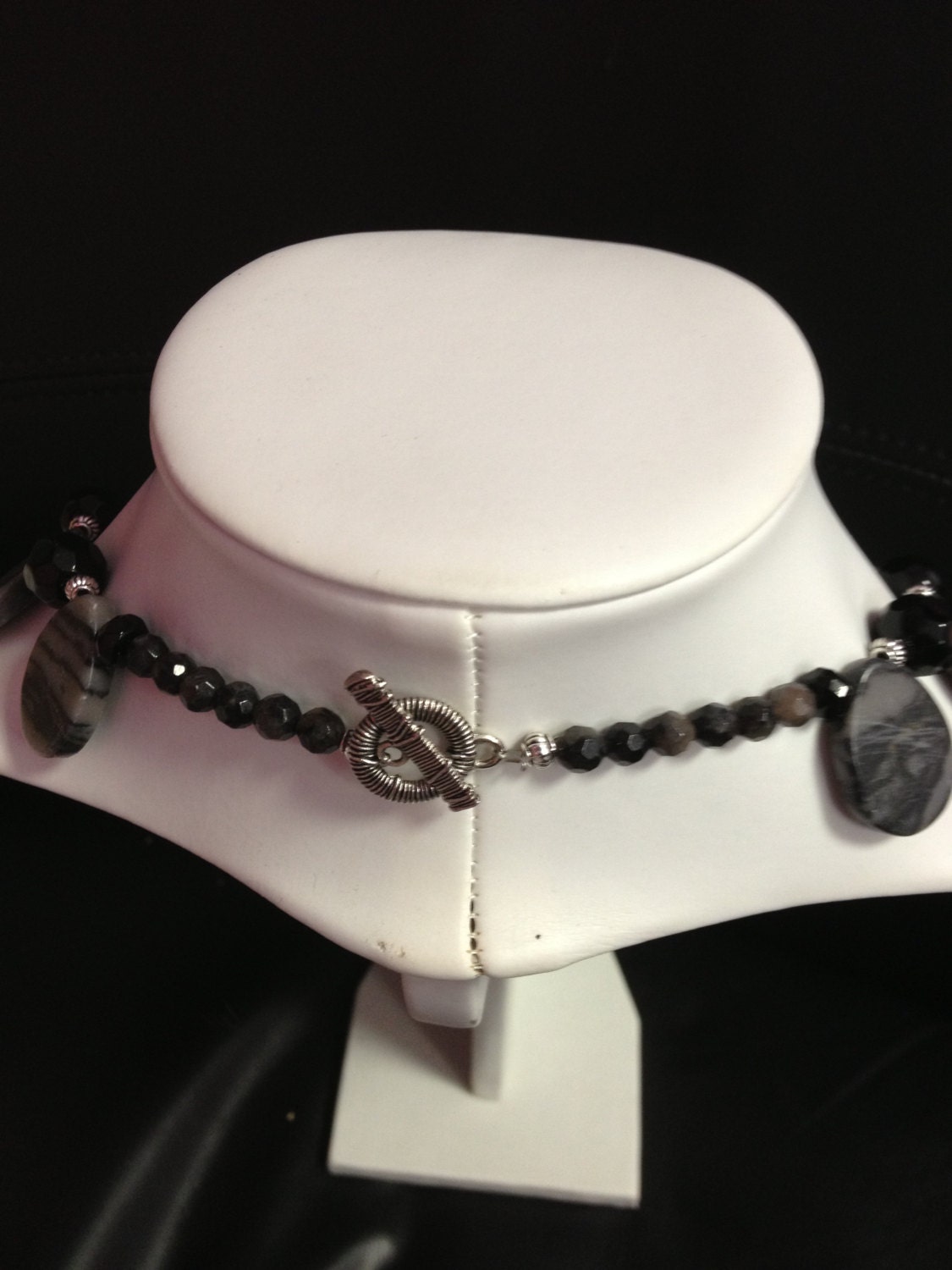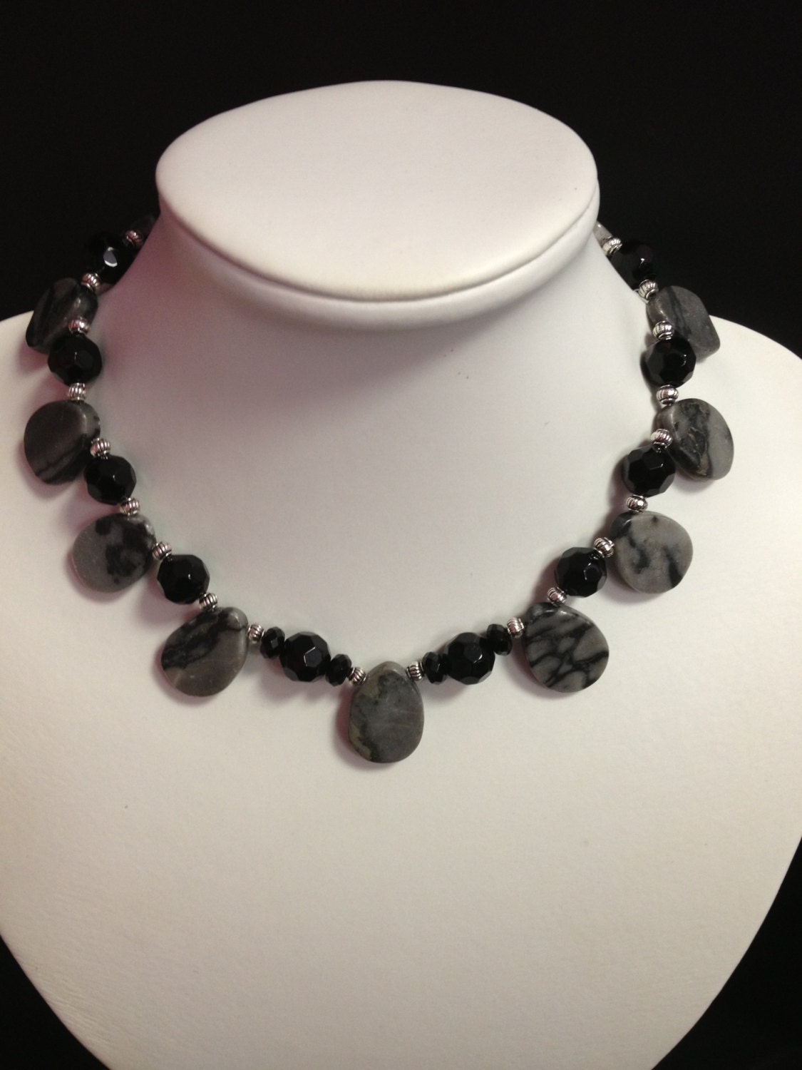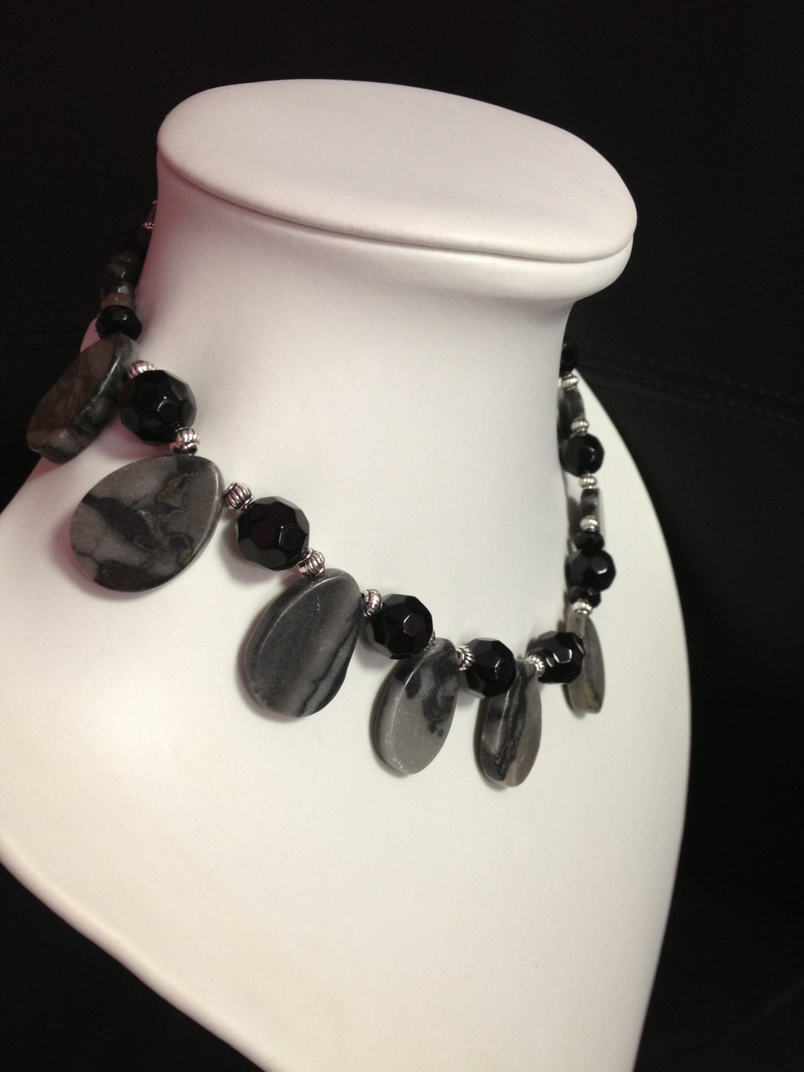 Jasper Tear Drop & Faceted Black Onyx Gemstone Necklace, Choker Necklace, Stone Jewelry, Stone Choker Necklace, Jasper Necklace