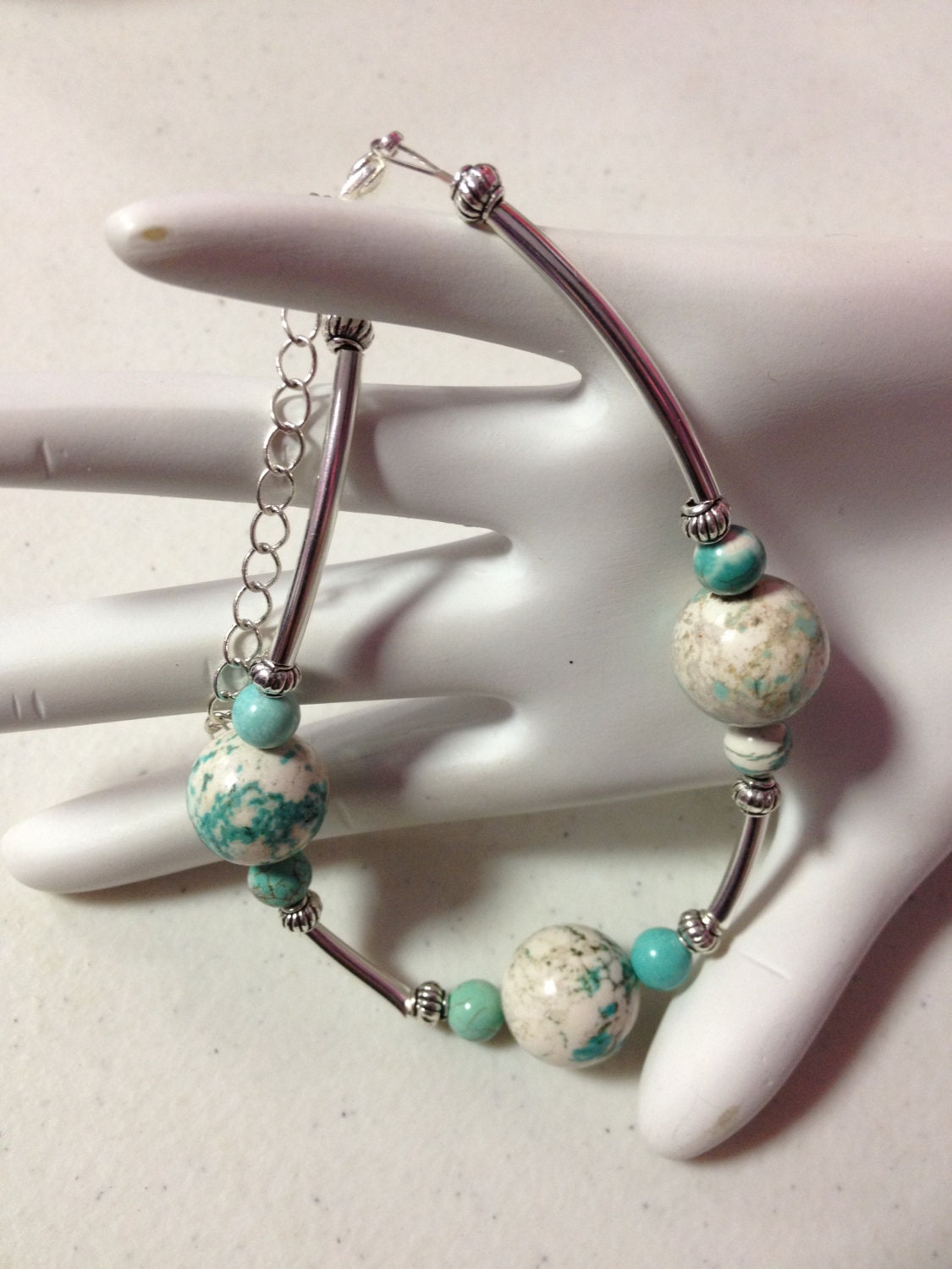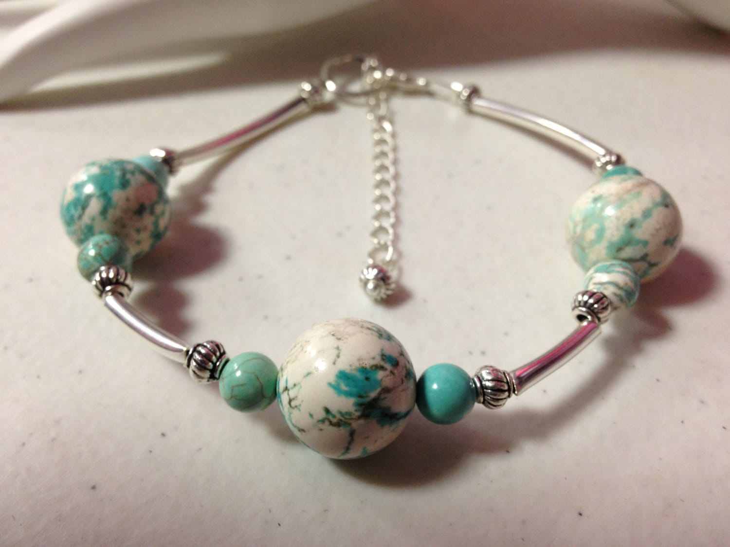 Turquenite Gemstone Bead Bracelet, Southwestern Style Jewelry, Beaded Bracelet
