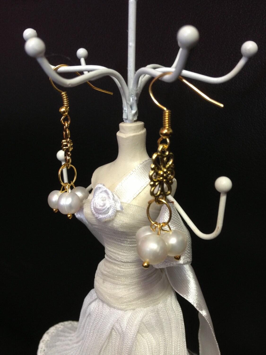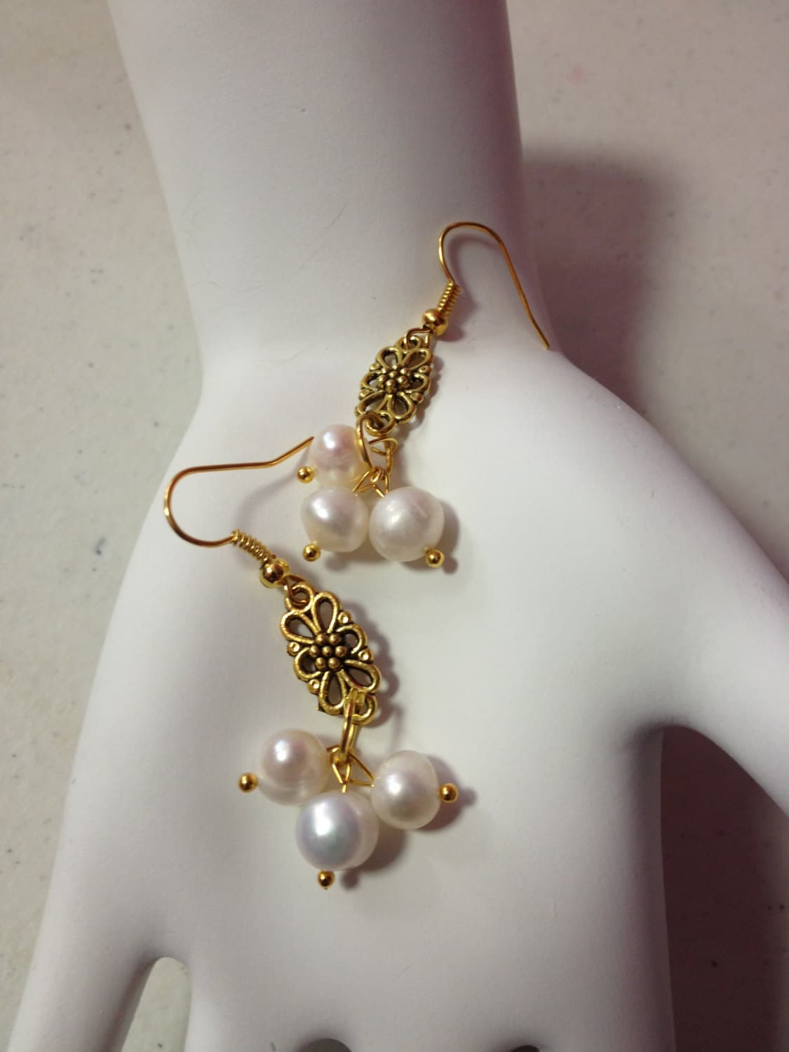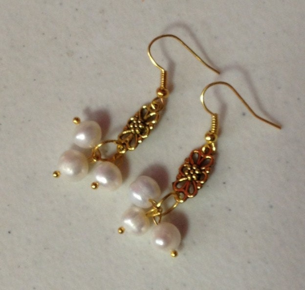 Pearl Dangle Earrings, Vintage Style, White and Gold Earrings, 7-8mm CFWP Earrings, Beaded Earrings, Pearl Earrings, Bridal Jewelry, Dainty