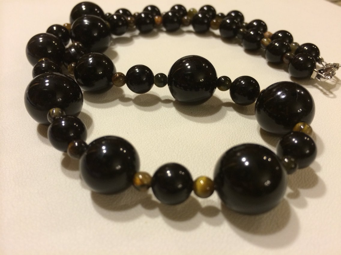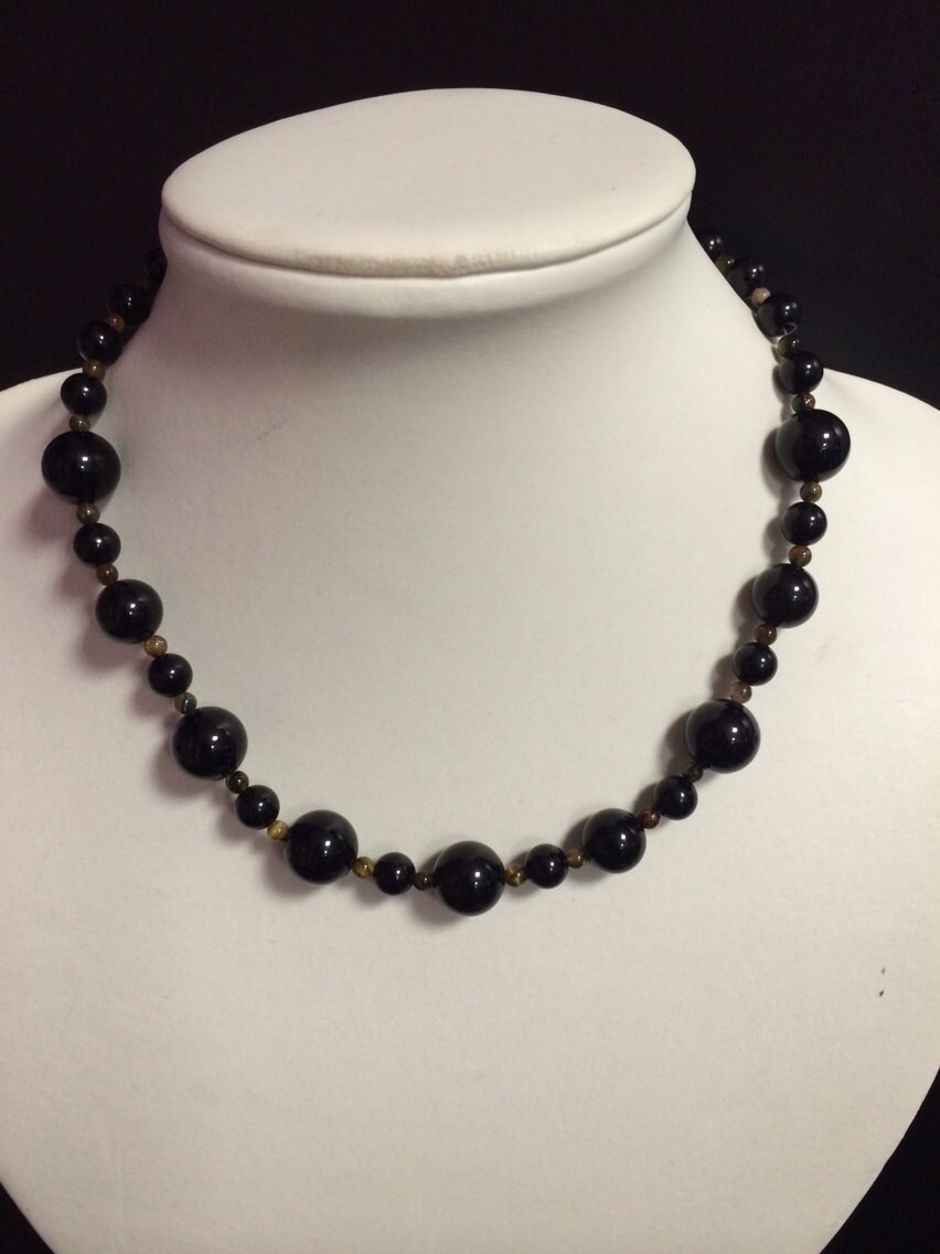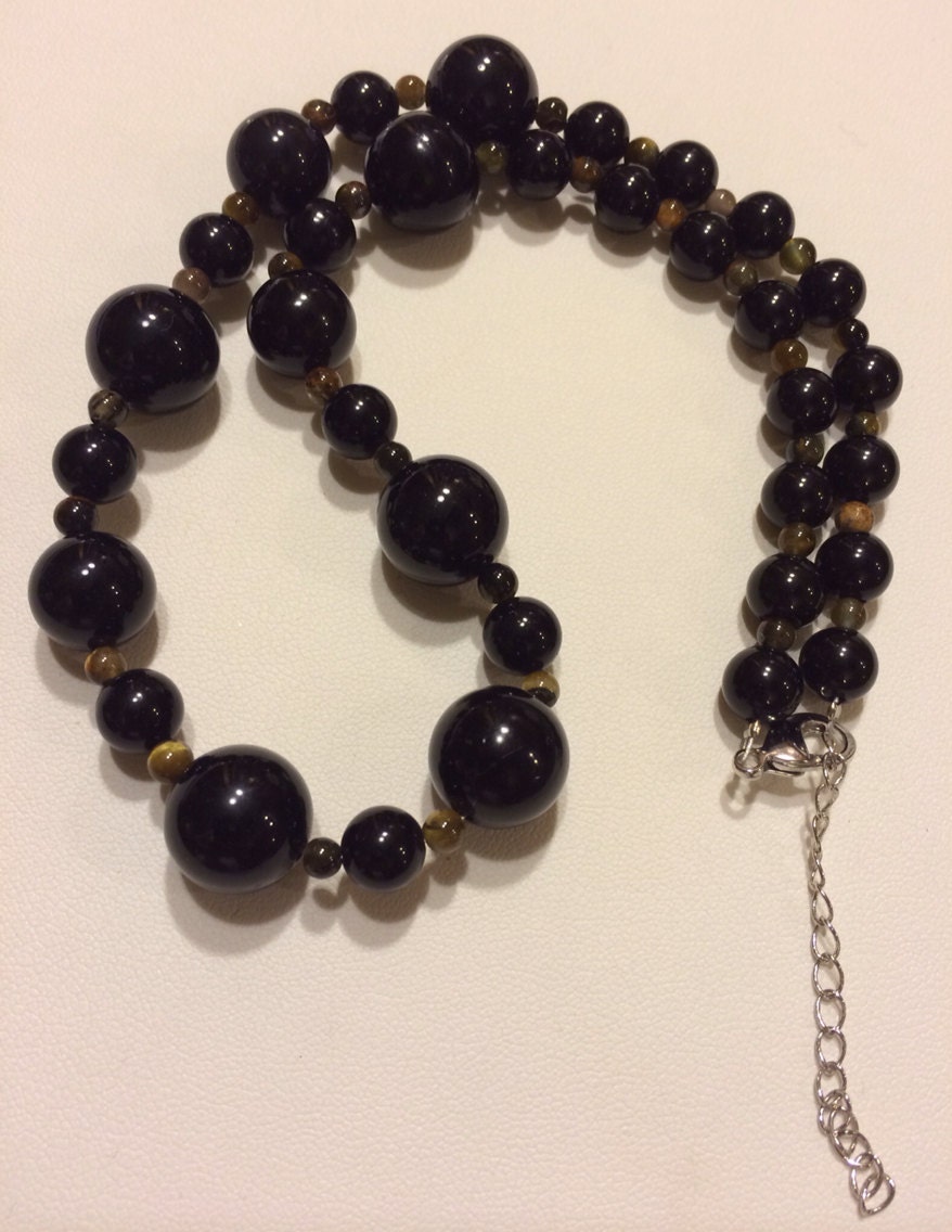 Black Onyx & Tiger Eye Gemstone Necklace; Reiki, Tiger eye necklace, Gifts for her, chakra, Onyx necklace