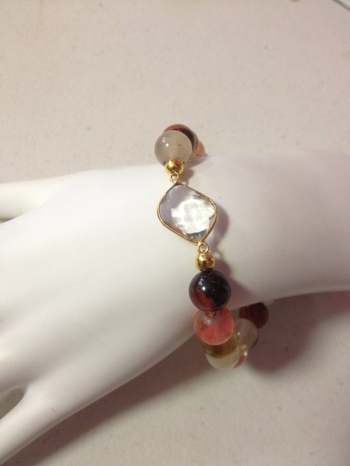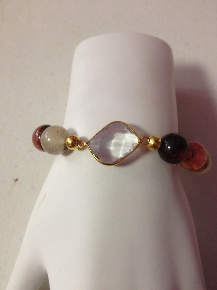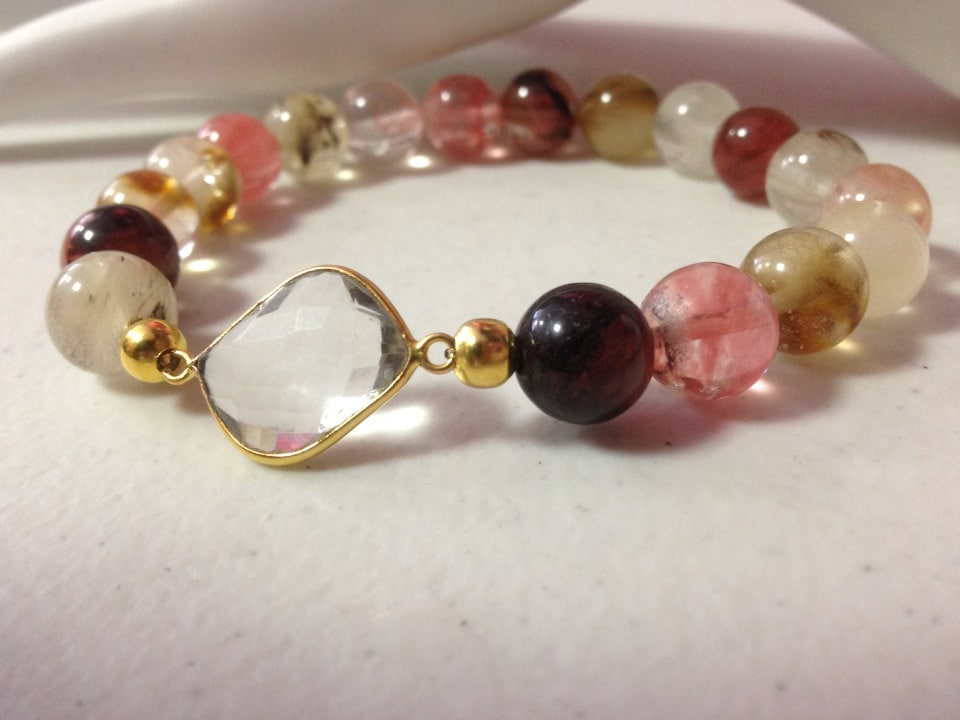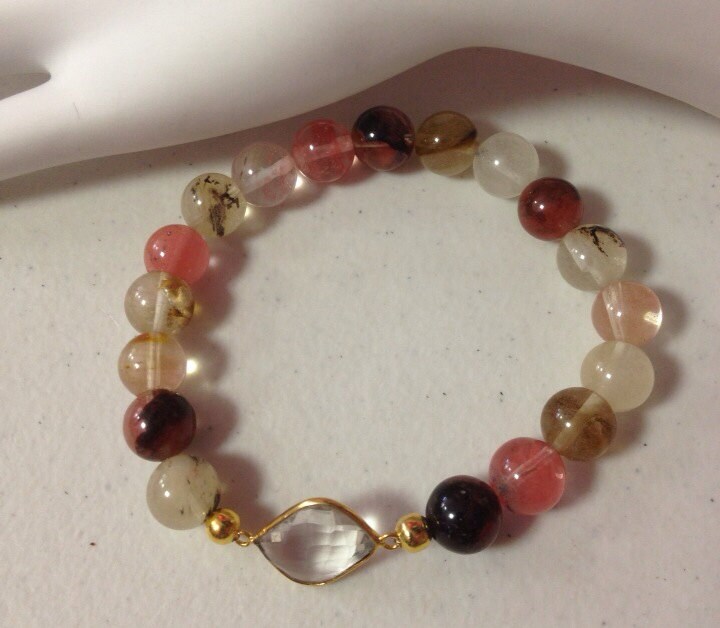 Faceted Crystal Charm Watermelon Tourmaline Gemstone Bead Stretch Bracelet, Gemstone Bracelet, Tourmaline Bracelets, Beaded Bracelet