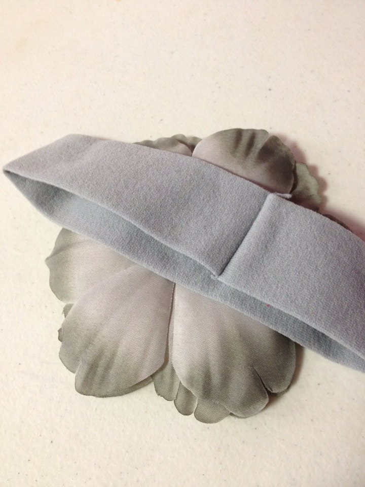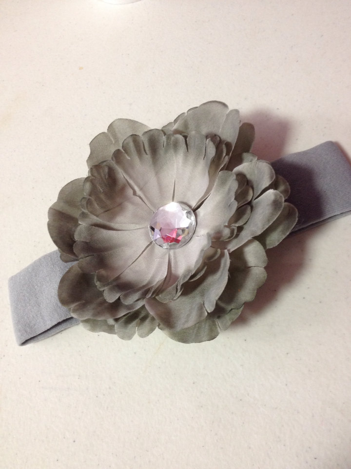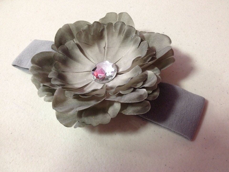 Grey Crystal Peony Nylon Stretch Headband