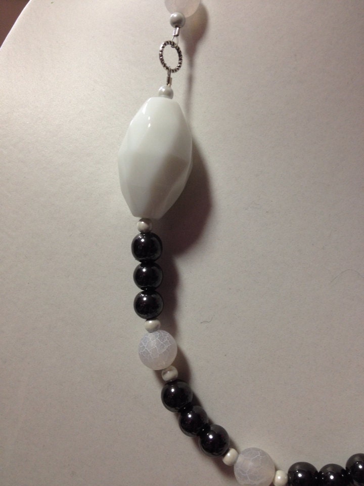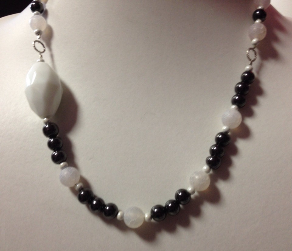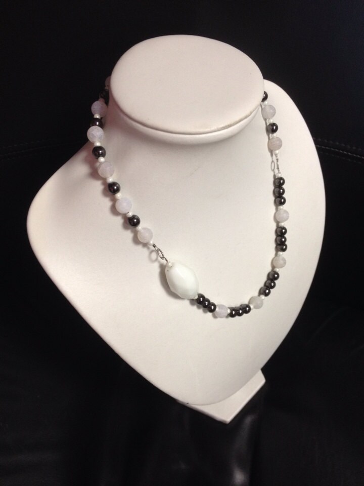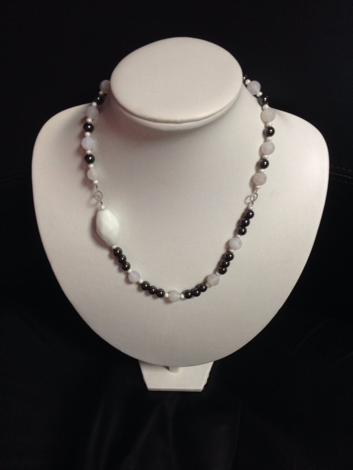 20"L White Frost Agate & Magnetic Hematite Bead Necklace