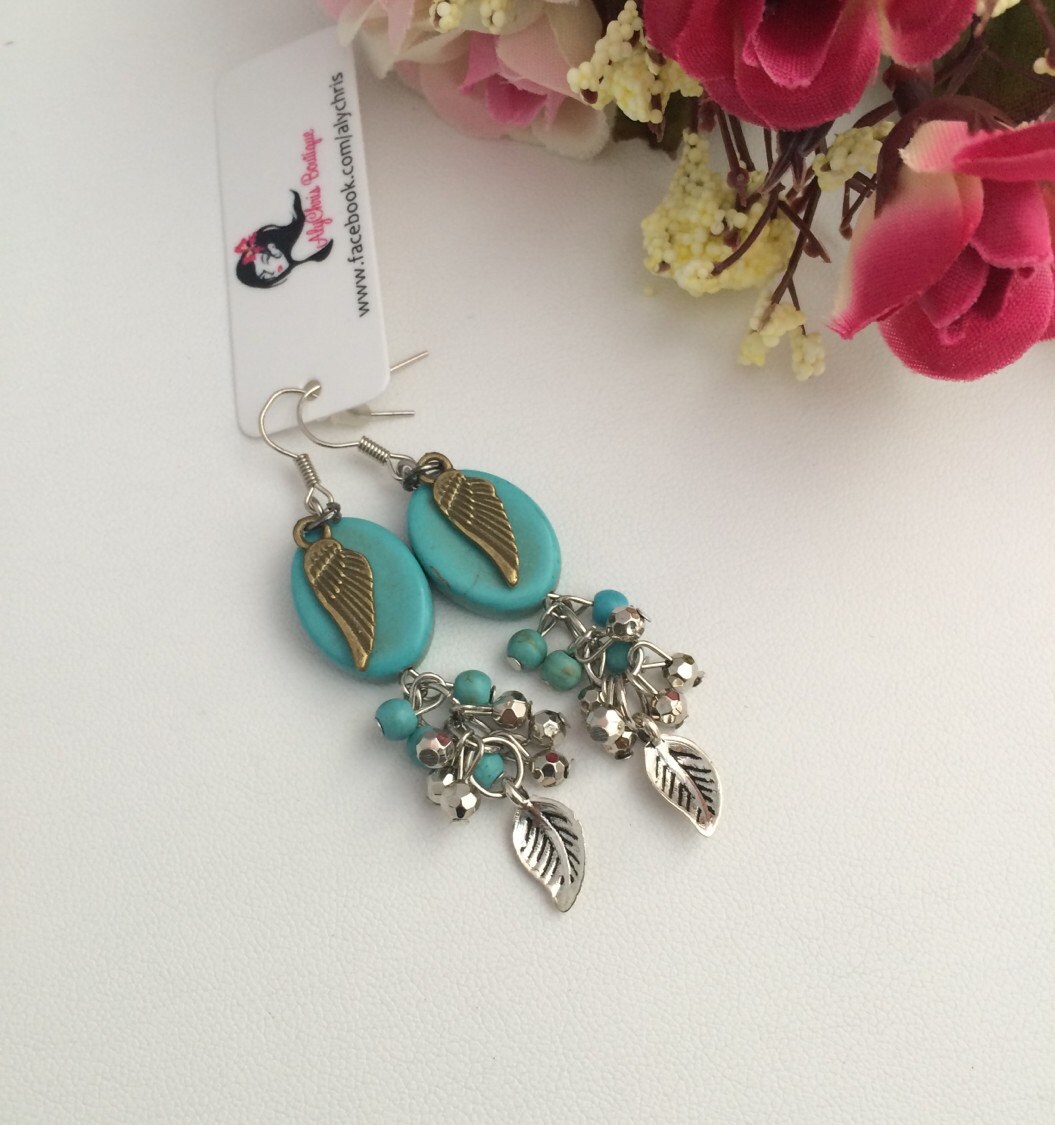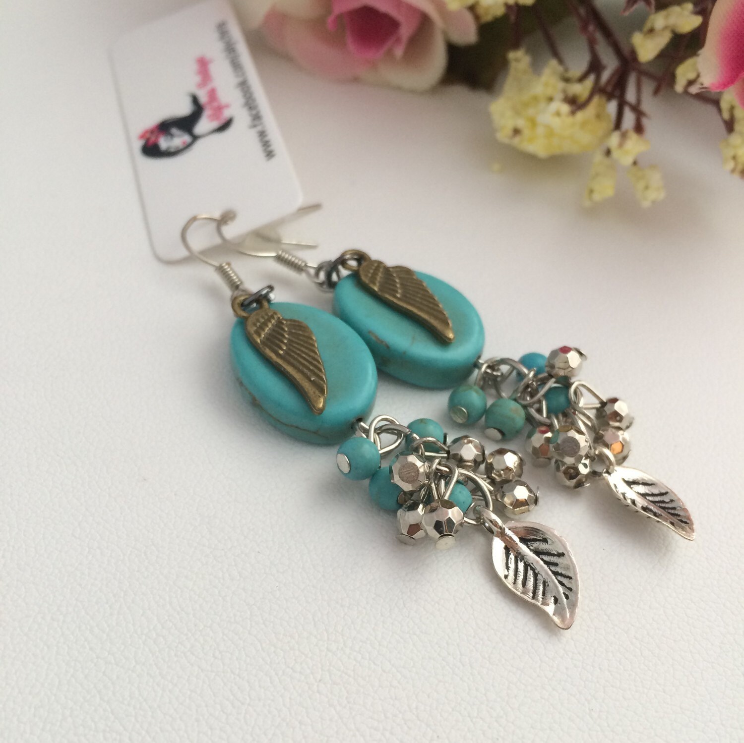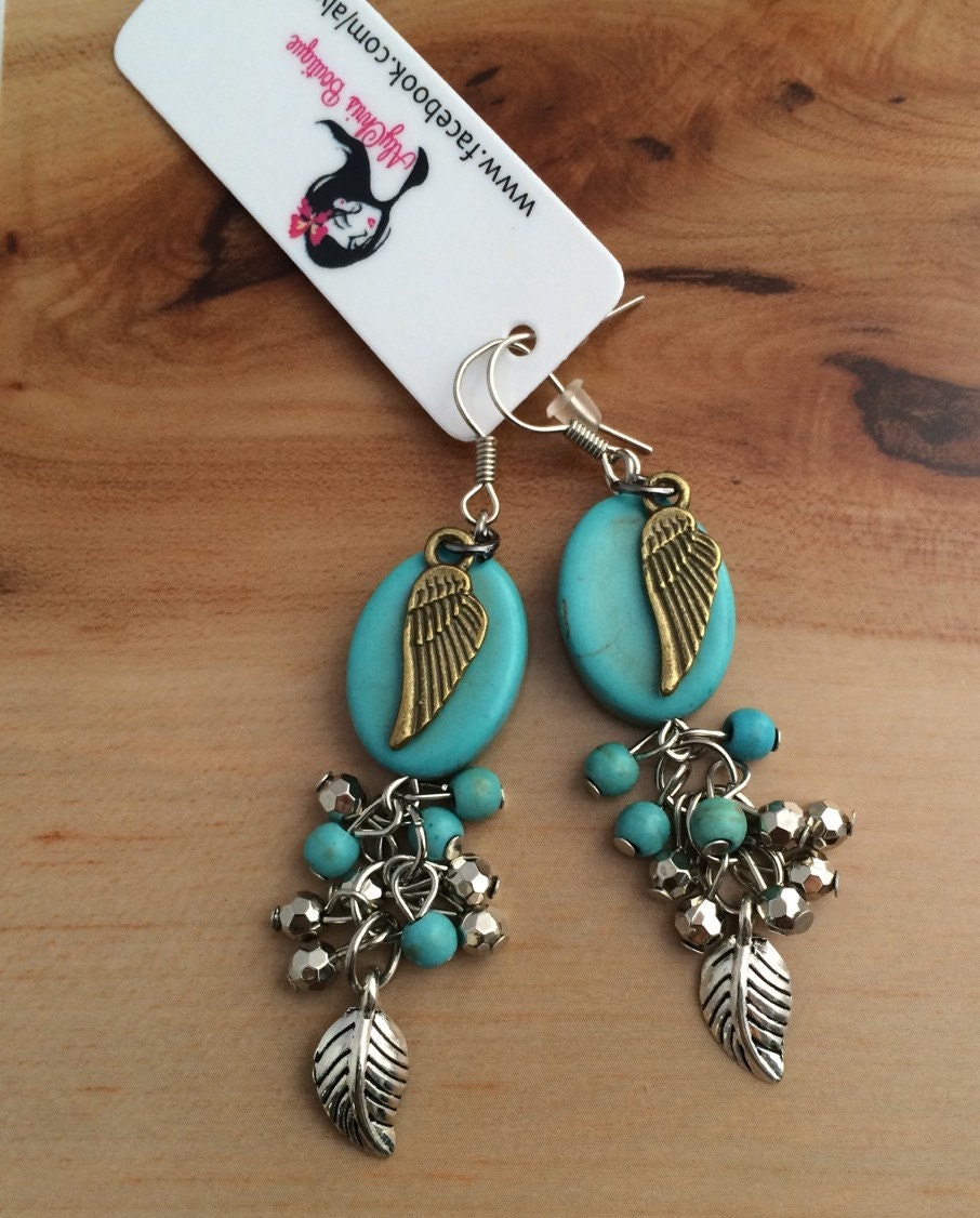 Angel Wing Turquenite Gemstone dangle earrings, Bohemian earrings, Southwestern jewelry, Boho jewelry