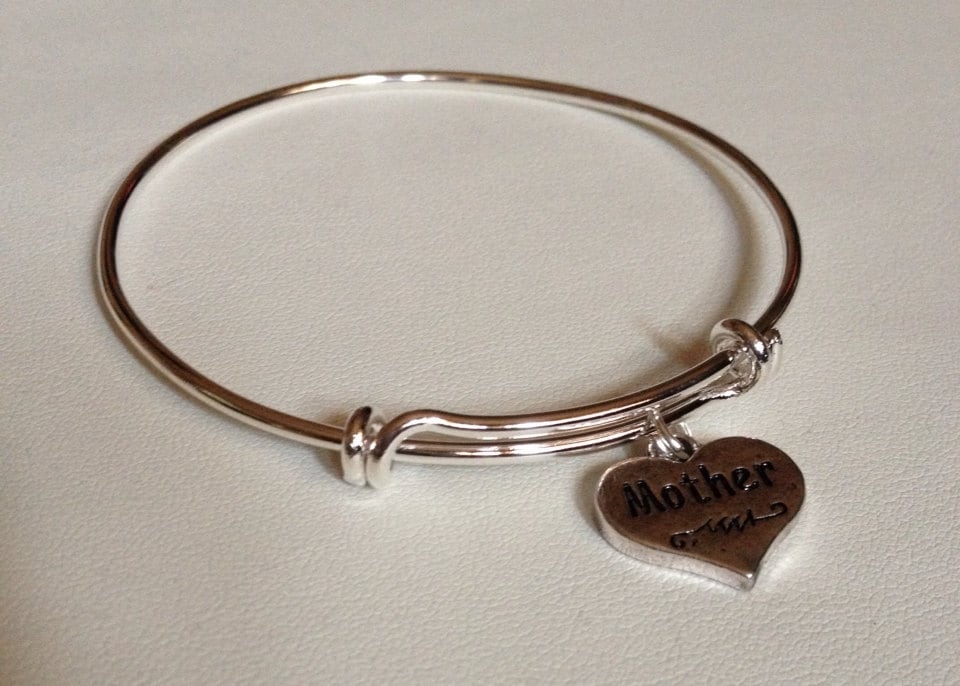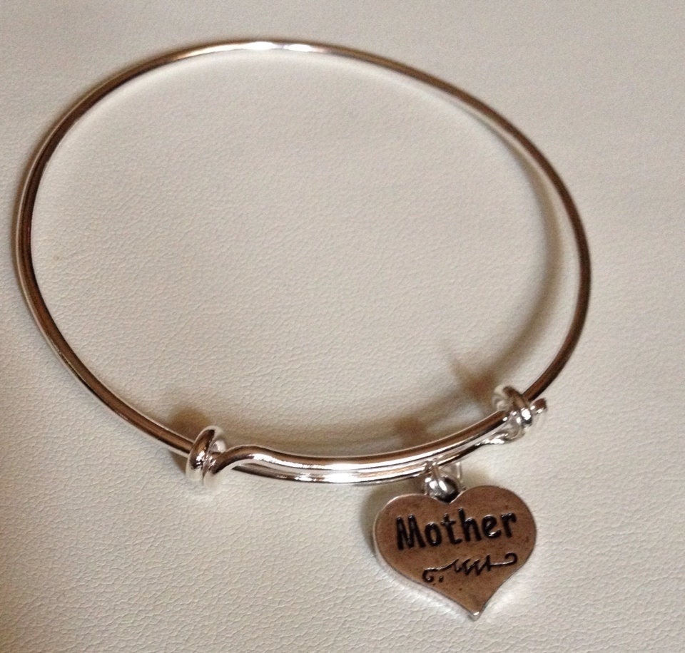 Mother Heart Charm Bangle, mothers day gifts, mom jewelry, mom bracelet, Stamped bracelet
