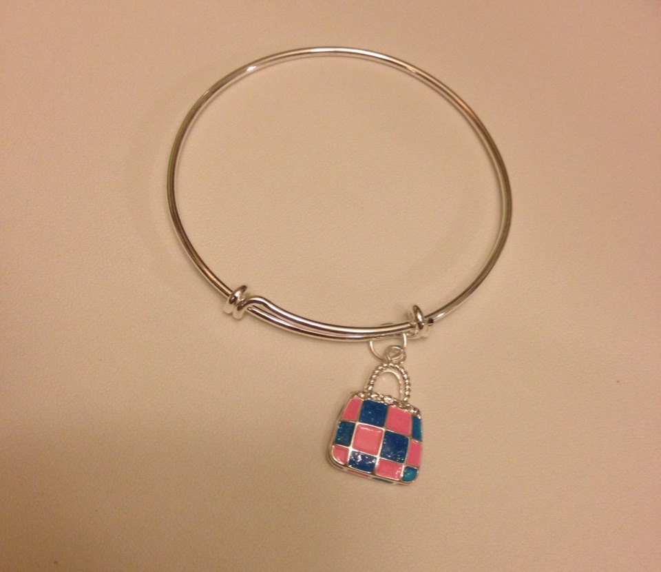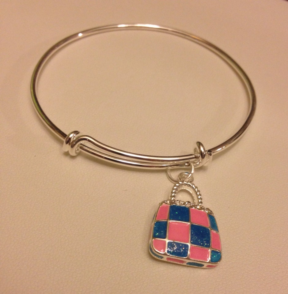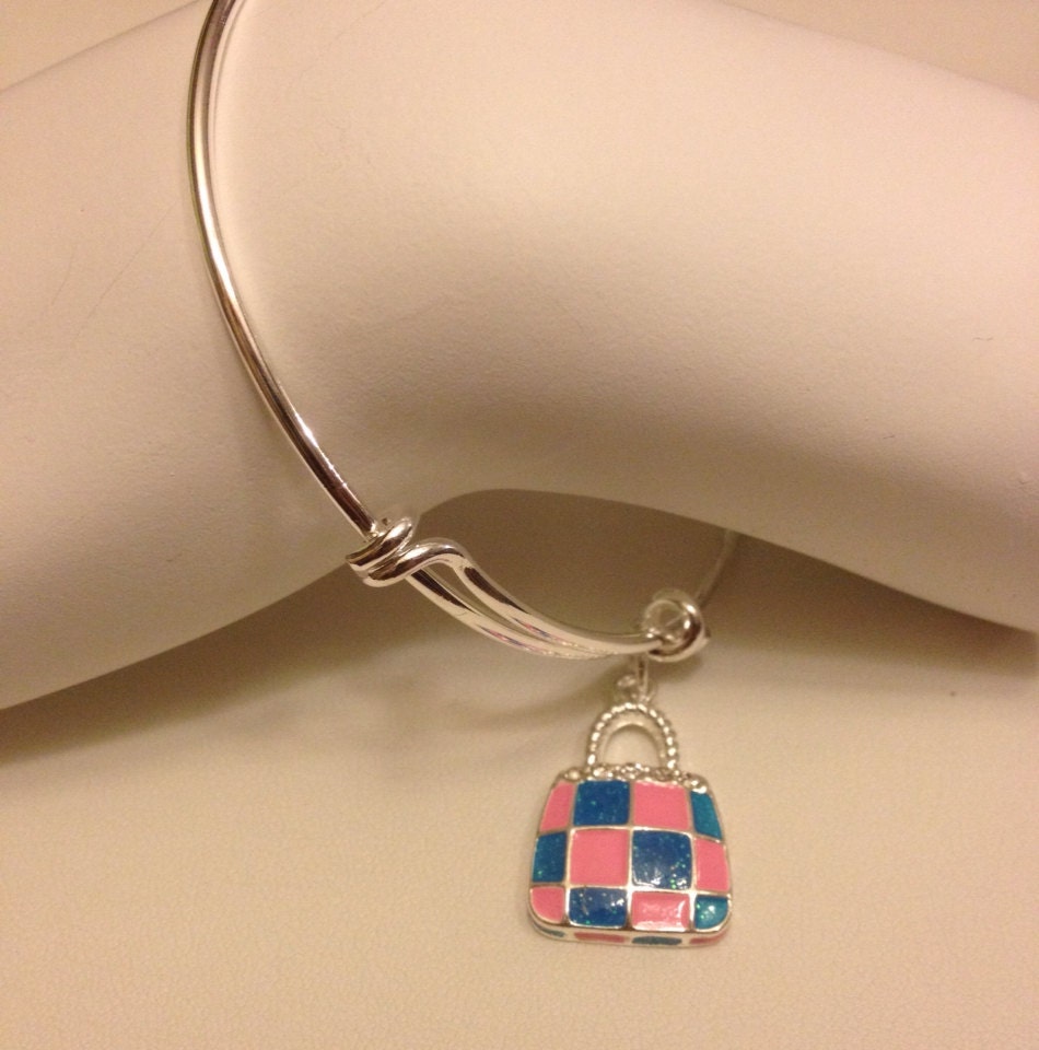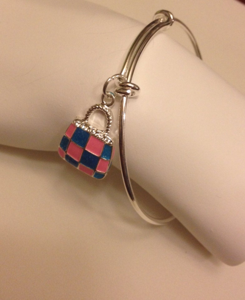 Pink & Blue Enamel Handbag Charm Bangle