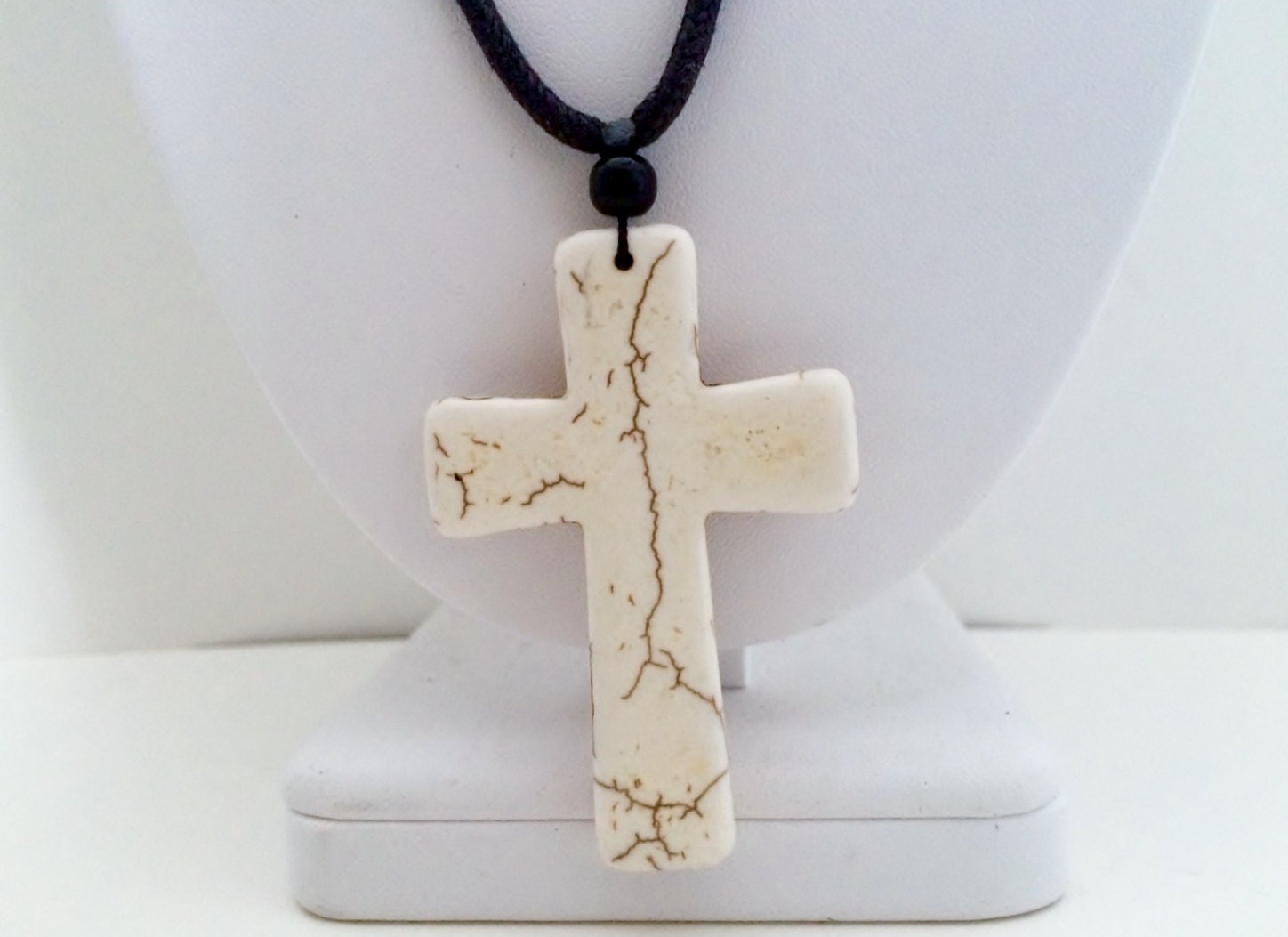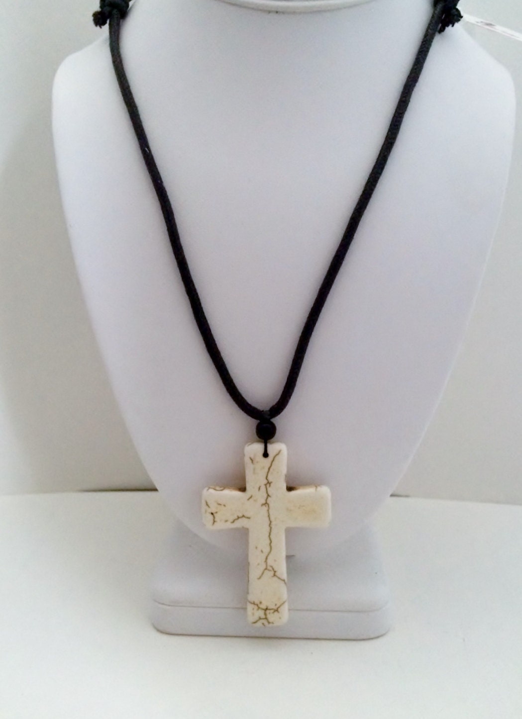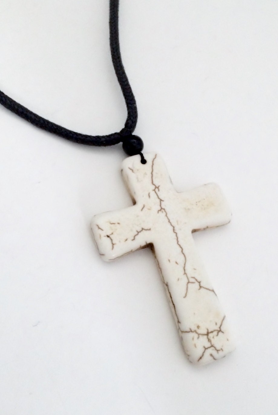 Mens Necklace, Magnesite Cross Pendant, Cross Jewelry, Southwestern Necklace, Cord Necklace, Adjustable Necklace