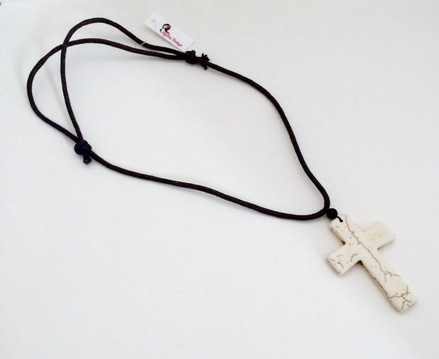 Magnesite (Faux Turquoise) Cross knotted on a adjustable cord necklace