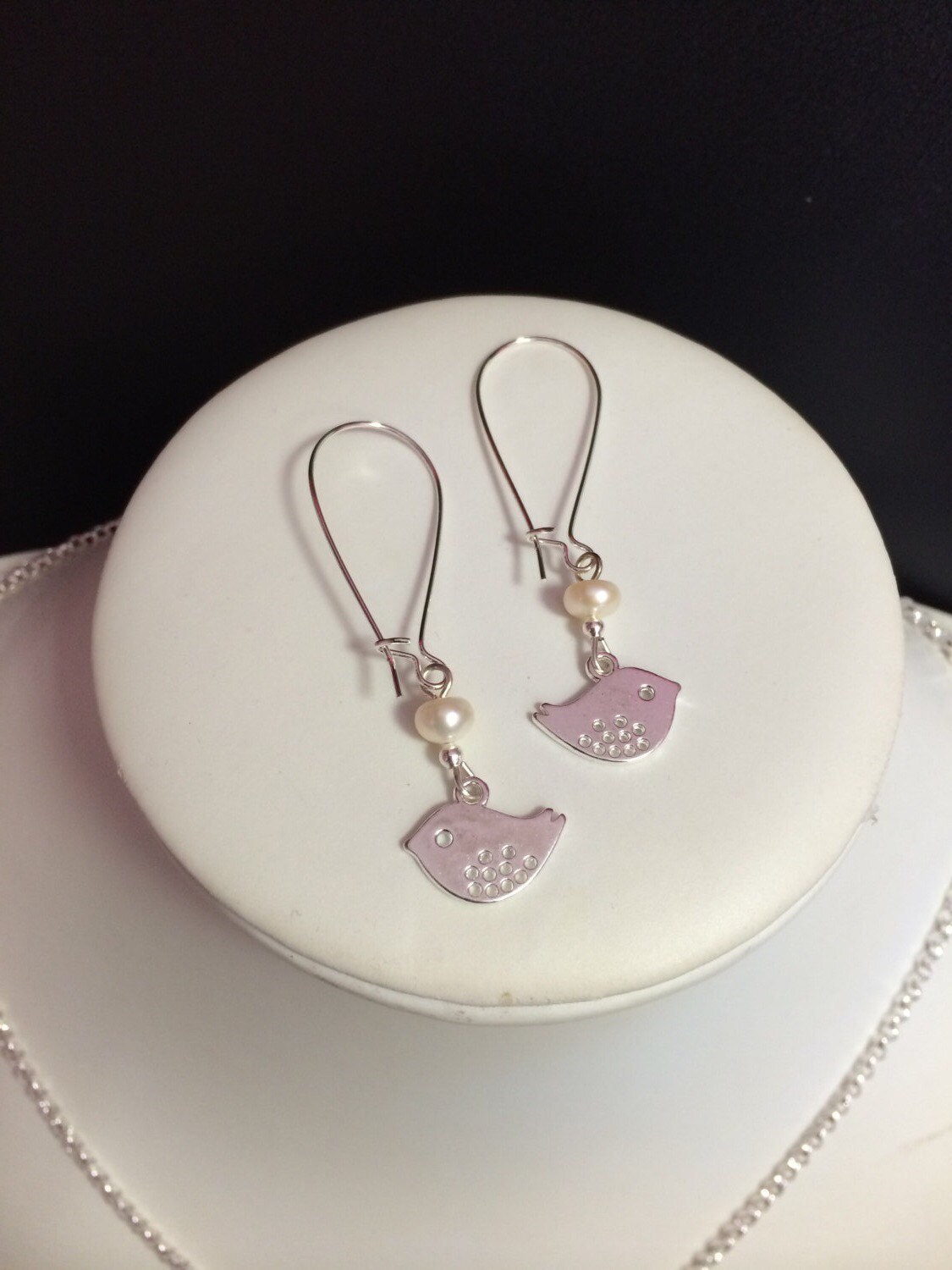 Birds and Branch Charm Bracelet with White CFW Pearl Bead Earring Set; Dainty, Bridal Gifts, Bridal jewelry, Bridesmaids Gifts, Bird Jewelry