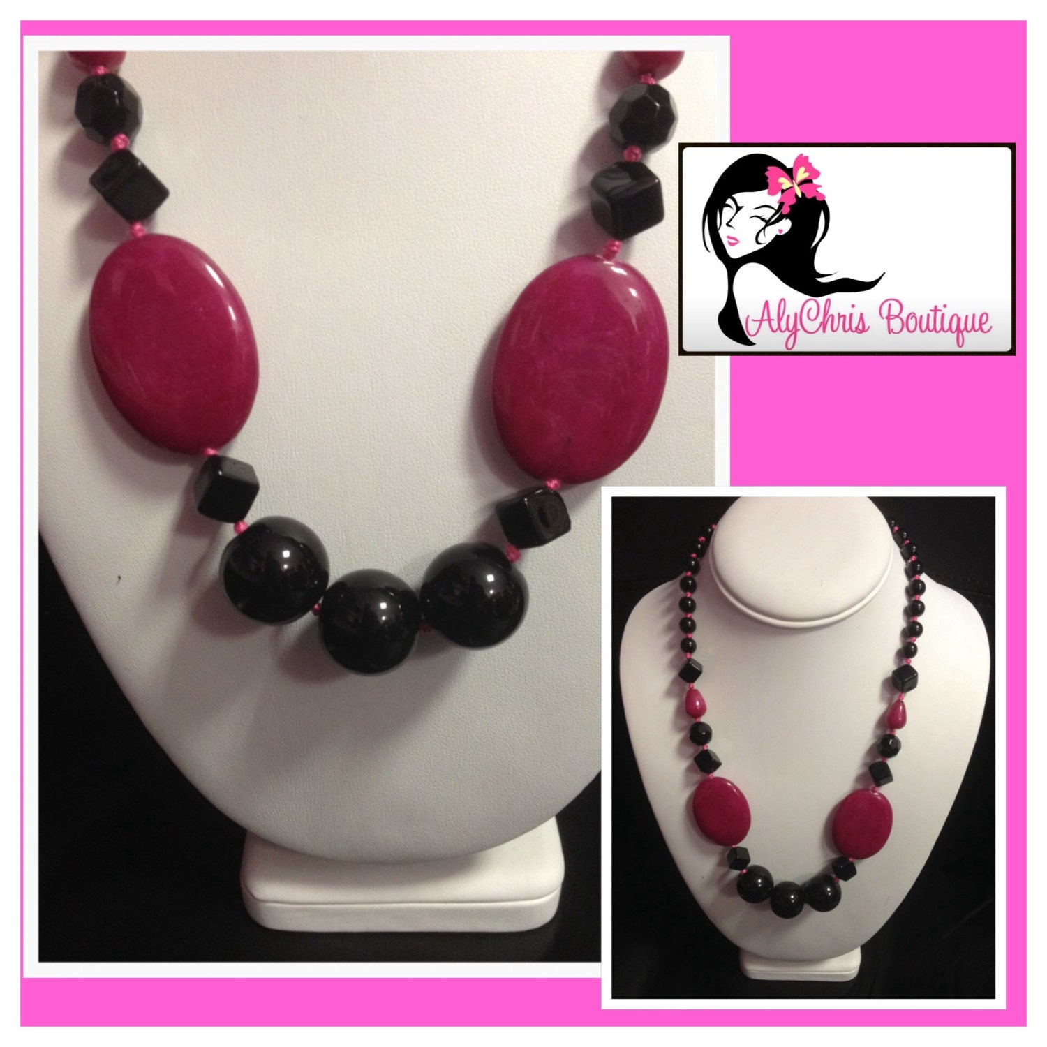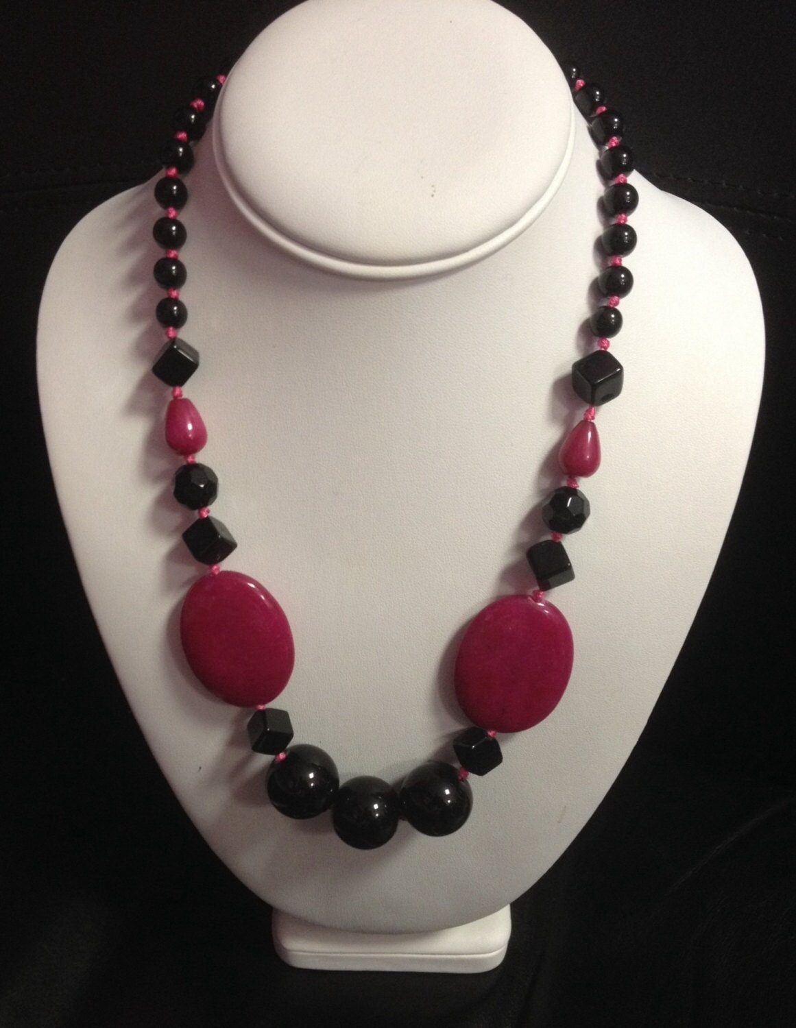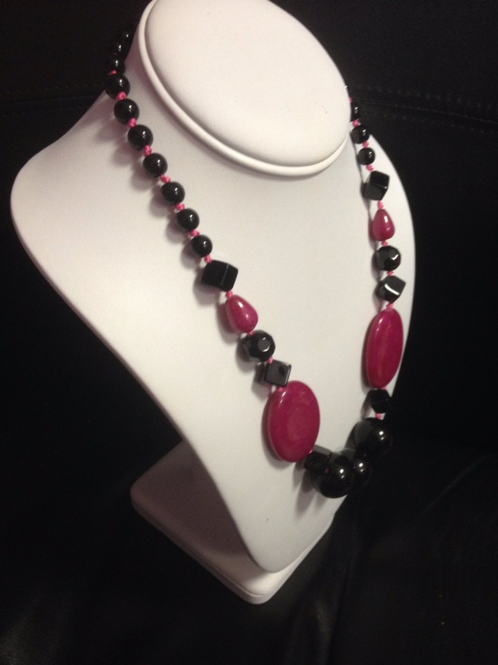 18" Black Onyx & Purple Jade Gemstone Necklace, Black Stone Beaded Necklace, Big Bold Necklace, Big Bead Necklace, Onyx stone Necklace