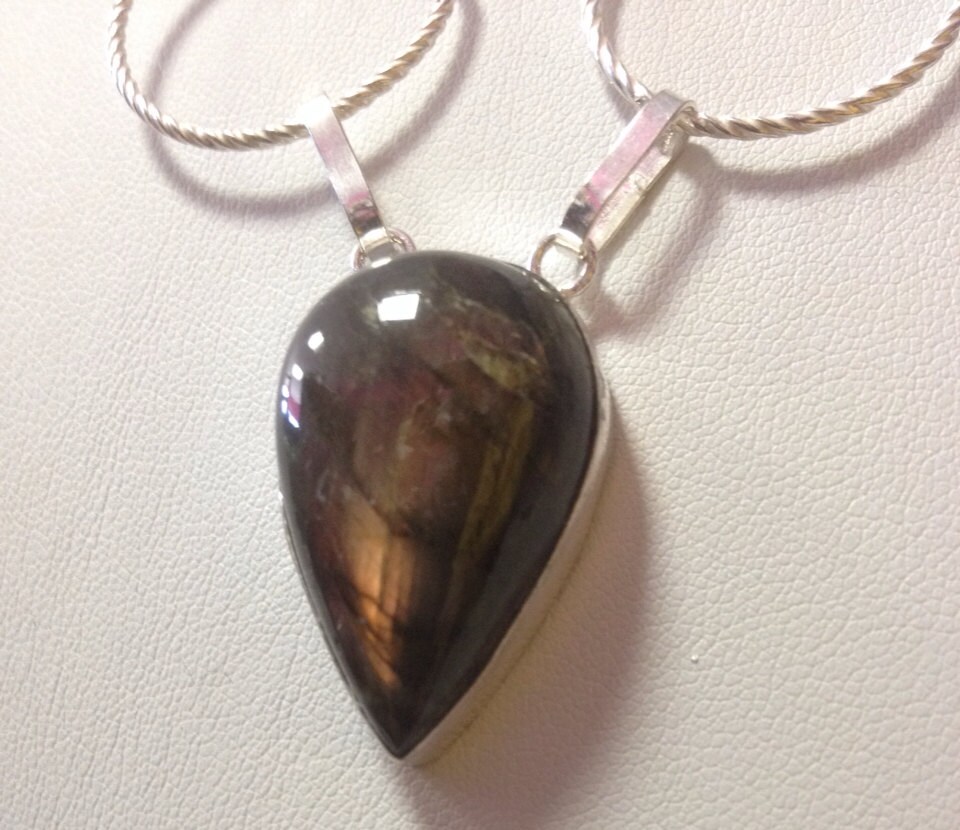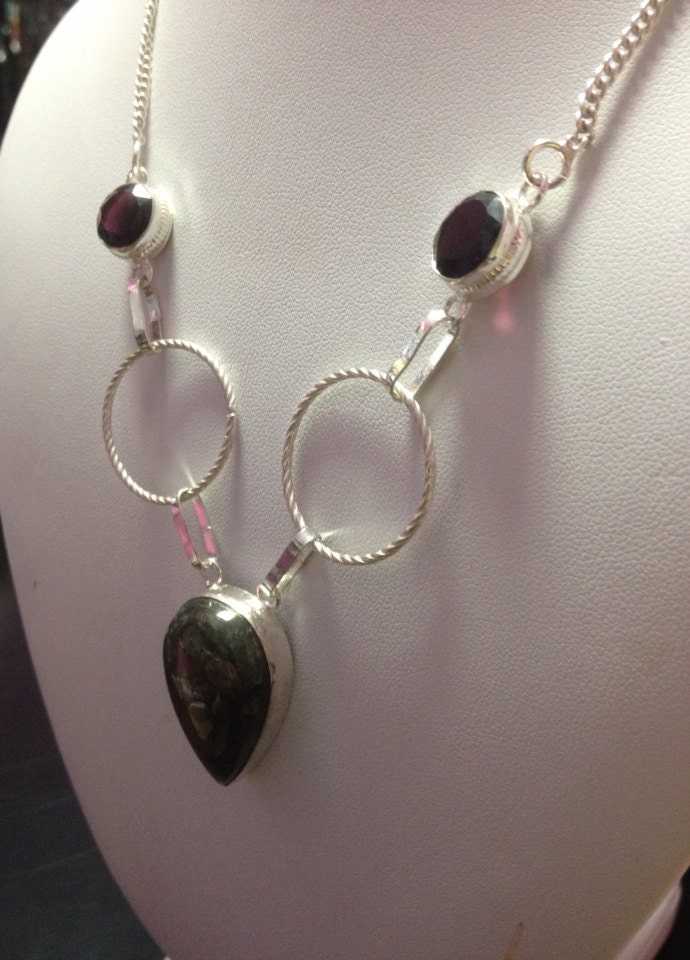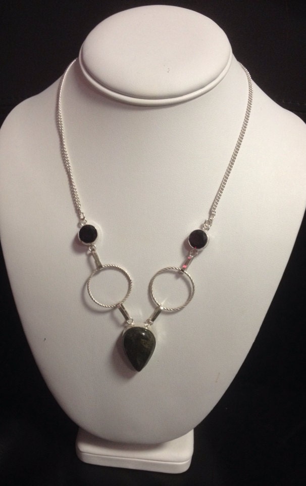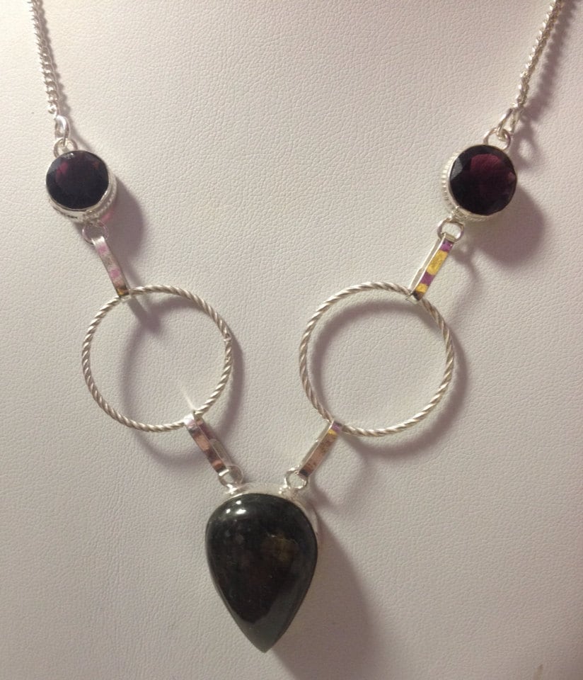 Labradorite & Faceted Deep Purple Glass Gemstone Link Necklace