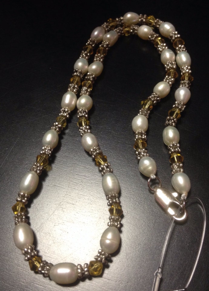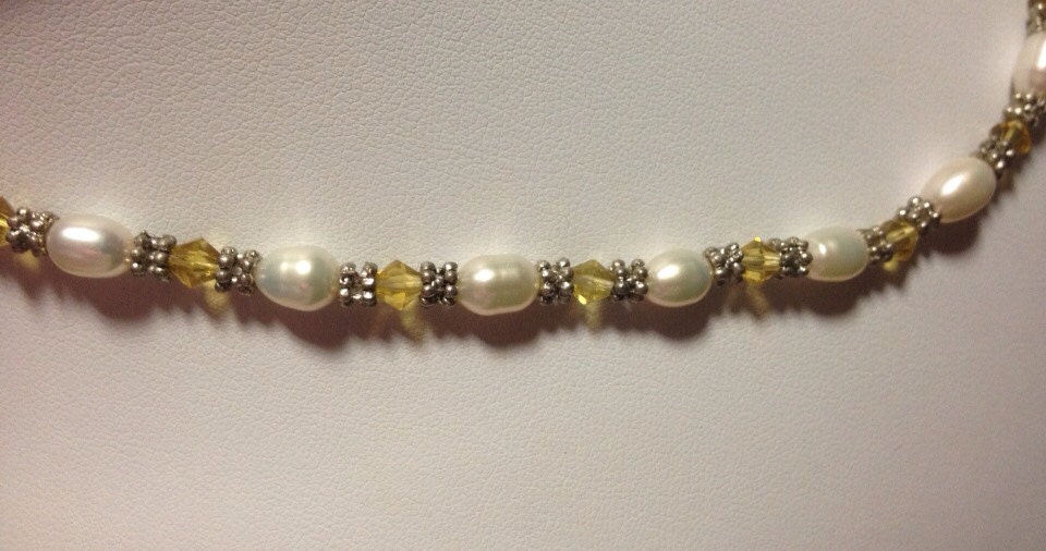 Pearl Necklace, White CFW Pearl & Yellow Faceted Crystal Necklace, gifts for her, Dainty necklace, Pearl jewelry, Pearl choker necklace