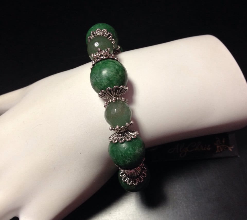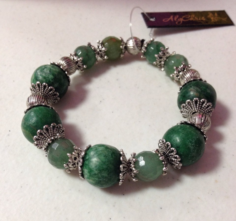 Green Jasper & Faceted Adventurine beaded Bracelet, bohemian bracelet, beaded bracelet