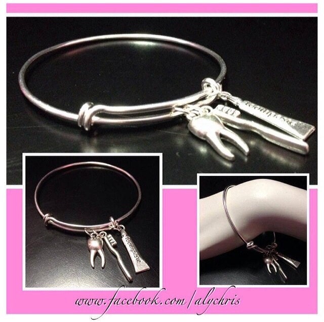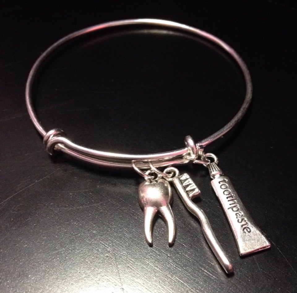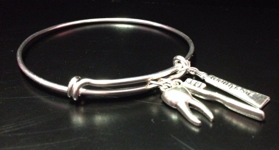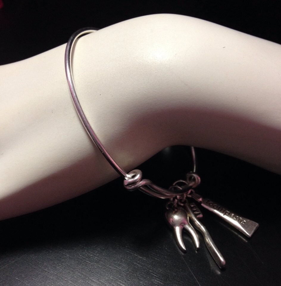Dental Hygienist Charm Bangle; dental jewelry, gifts under 20, tooth charm jewelry, toothbrush charm, large wrist bangles, Dental bracelet