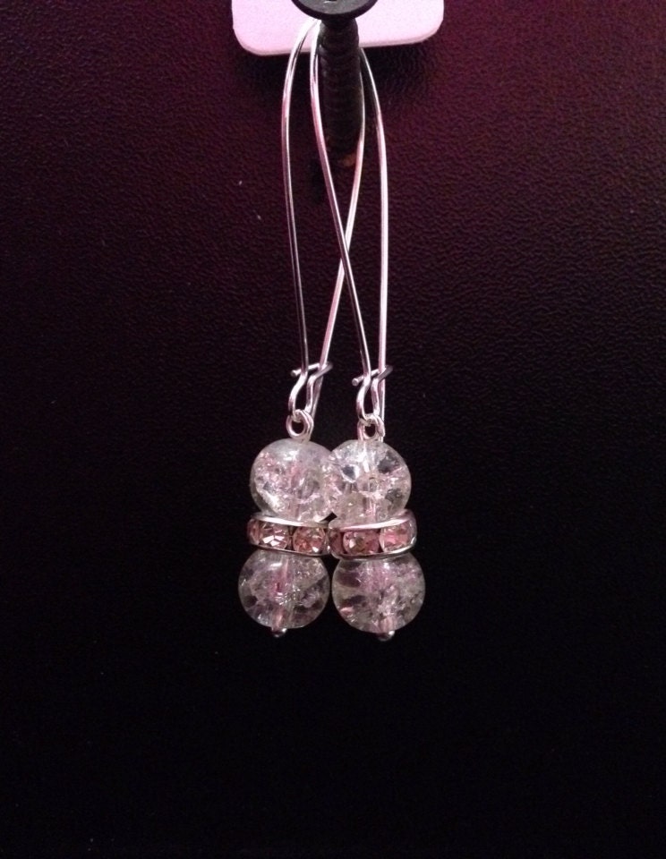 Clear Crackle Glass Bead on Kidney Earwire, dangle earrings