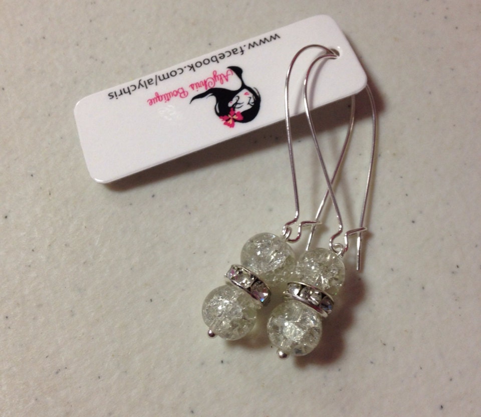 Clear Crackle Glass Bead on Kidney Earwire, dangle earrings, Beaded Earrings, Glass Earrings, Bridesmaid Earrings, Crystal Earrings
