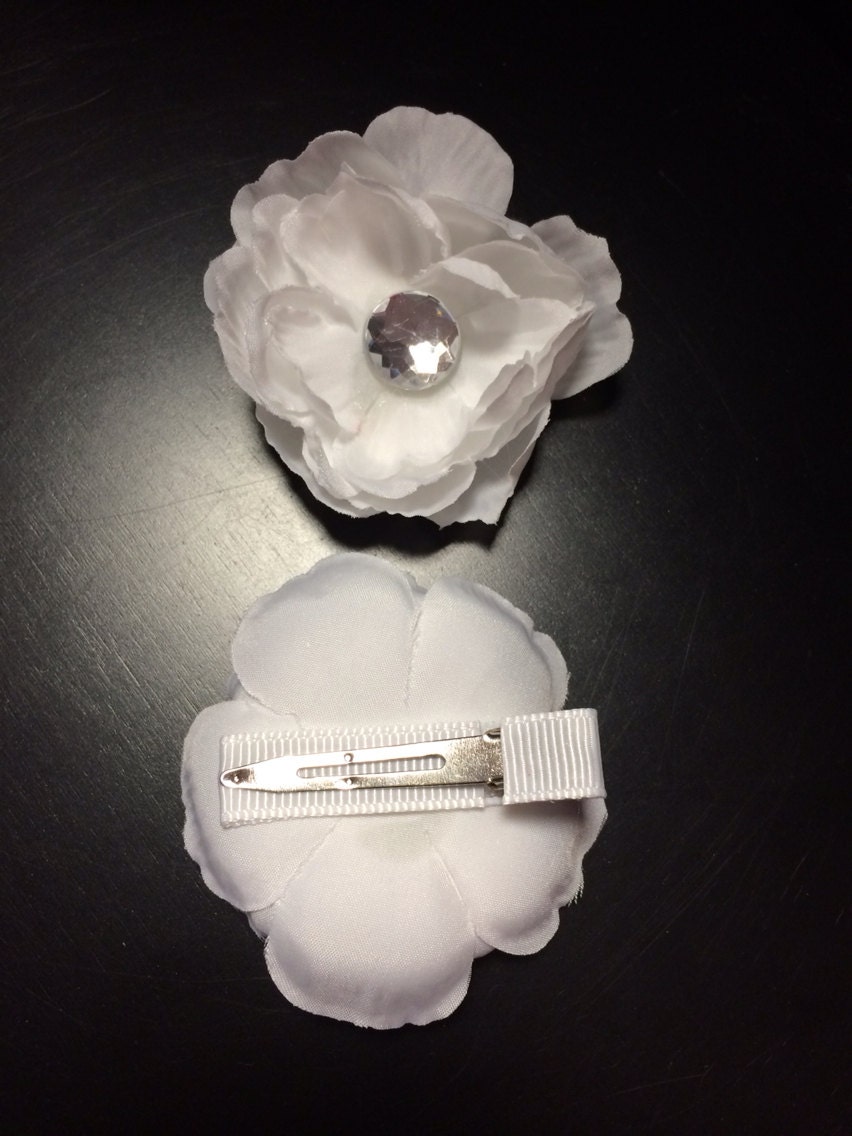Mini White Peony Flower Hair Clip Set of 2- FREE SHIPPING