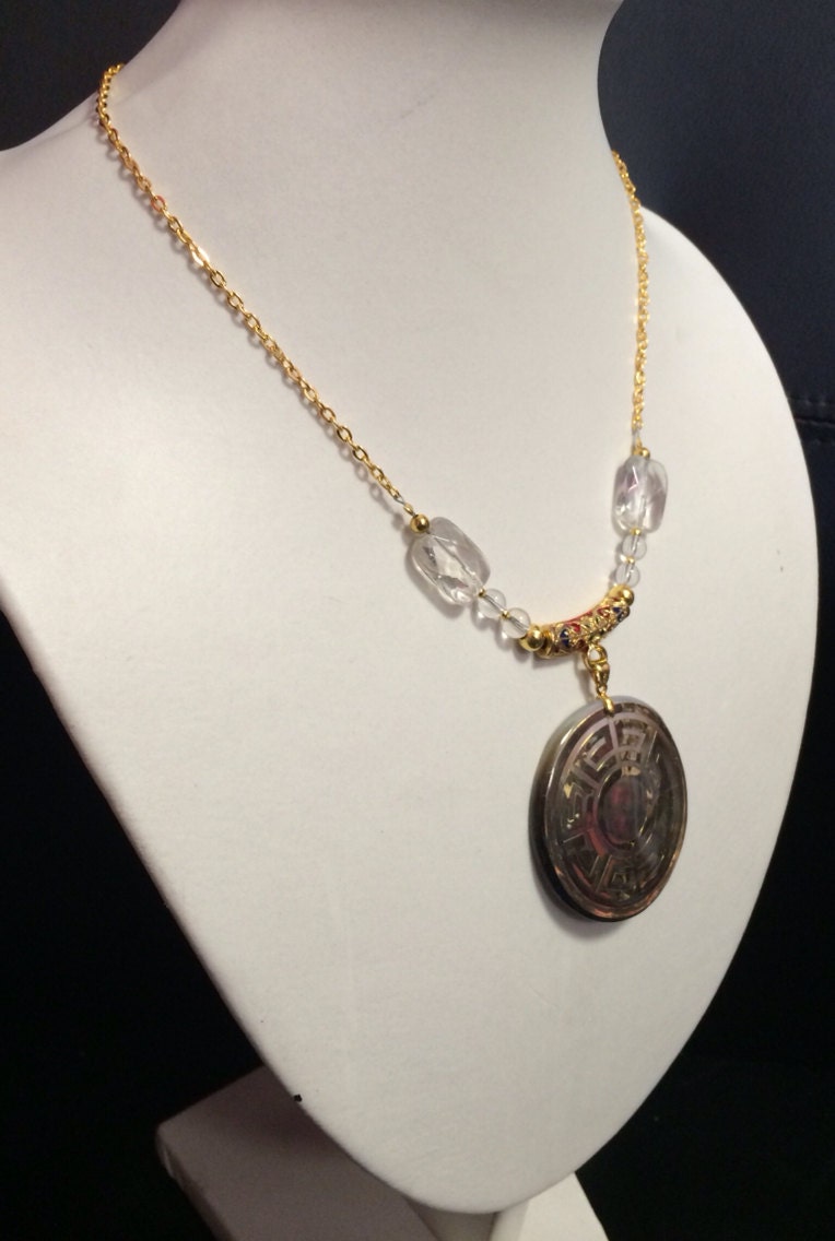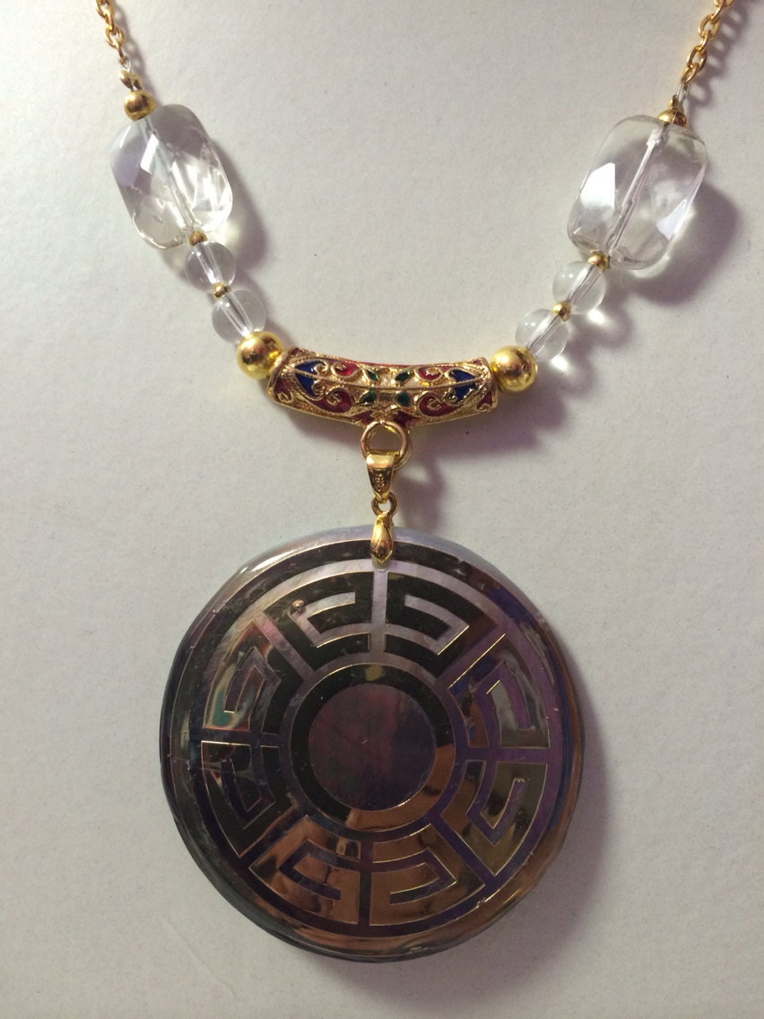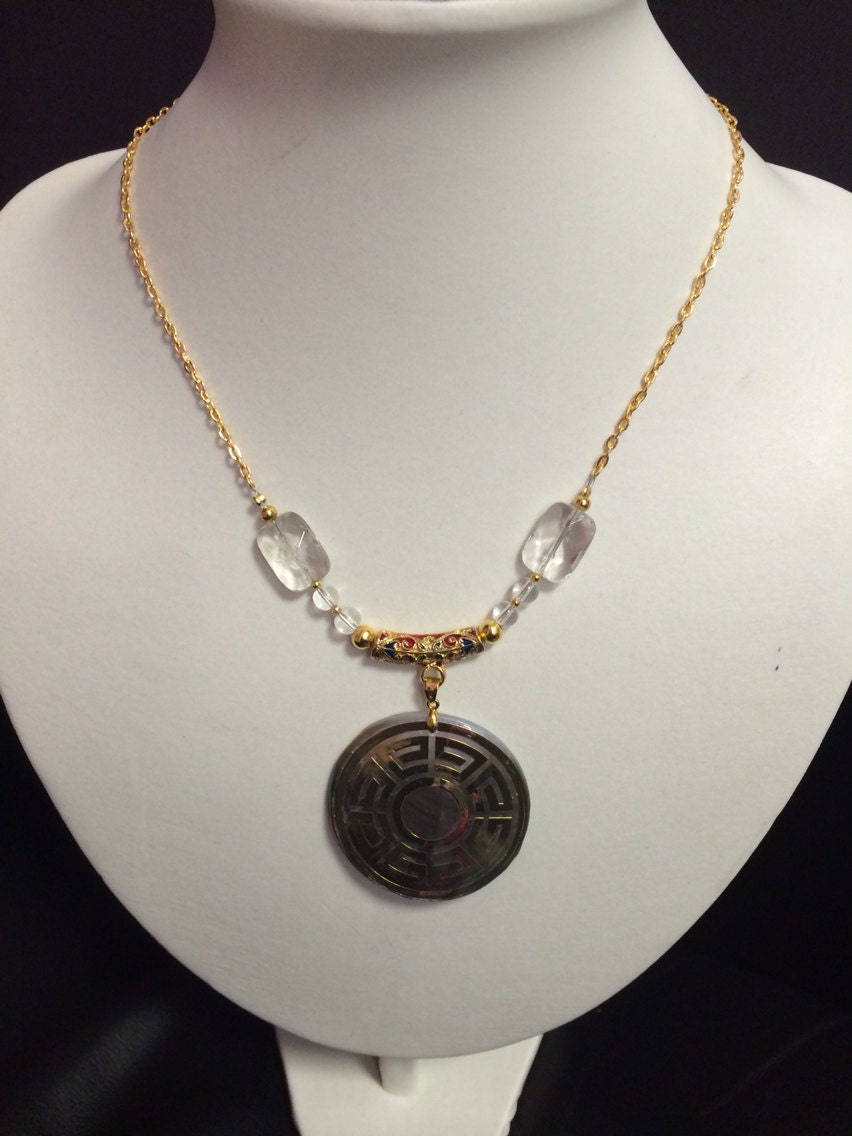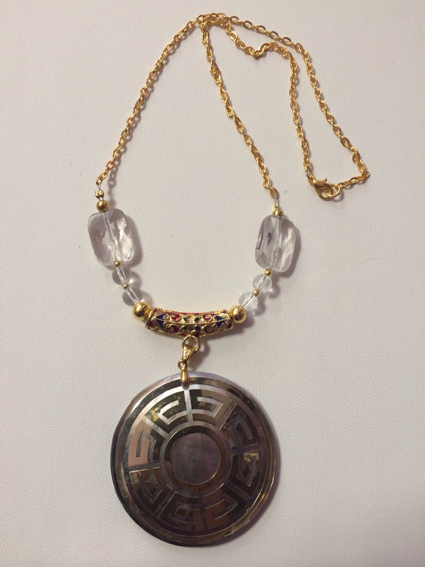 Gold Foiled Mother of Pearl Pendant Crystal Bead Gold Plated Necklace, Shell Jewelry, Shell Pendant, Boho Jewelry